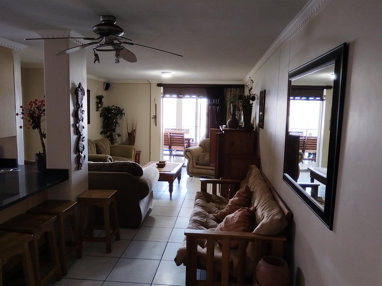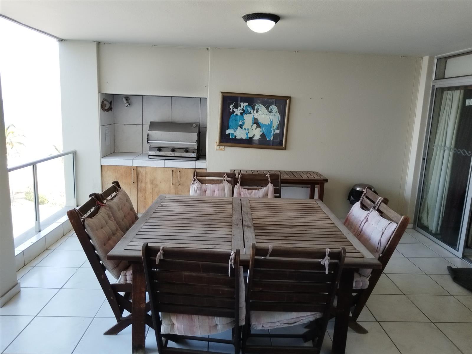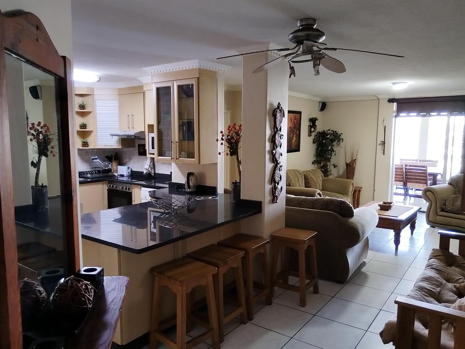 This complex is right on the beachfront and is part of the upper levels of the small mall consisting of retail stores and restaurants. As you enter the property the well-planned open plan living area is spacious and interaction from all angles throughout the living space. The central lounge overlooks the kitchen and combines the balcony dining room area through a sliding door. The main bedroom is accessible from the lounge and the balcony through another sliding door. All three bedrooms are spacious with build in cupboards and ceiling fans. The main bedroom spoils you with an on-suite bathroom with a soaker tub and the guest bathroom with a spa shower. This property offers a lot of small extra feature easily to be missed with a viewing. Curtain rails with wood finishes, kitchen with granite tops and stainless-steel finishes just to mention a few.