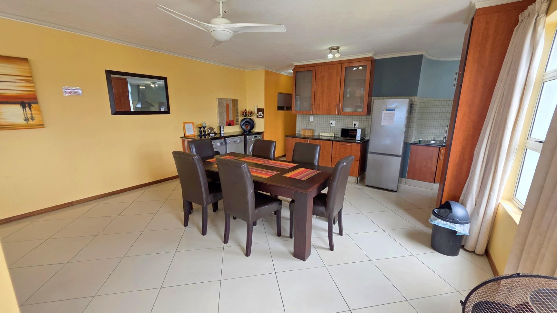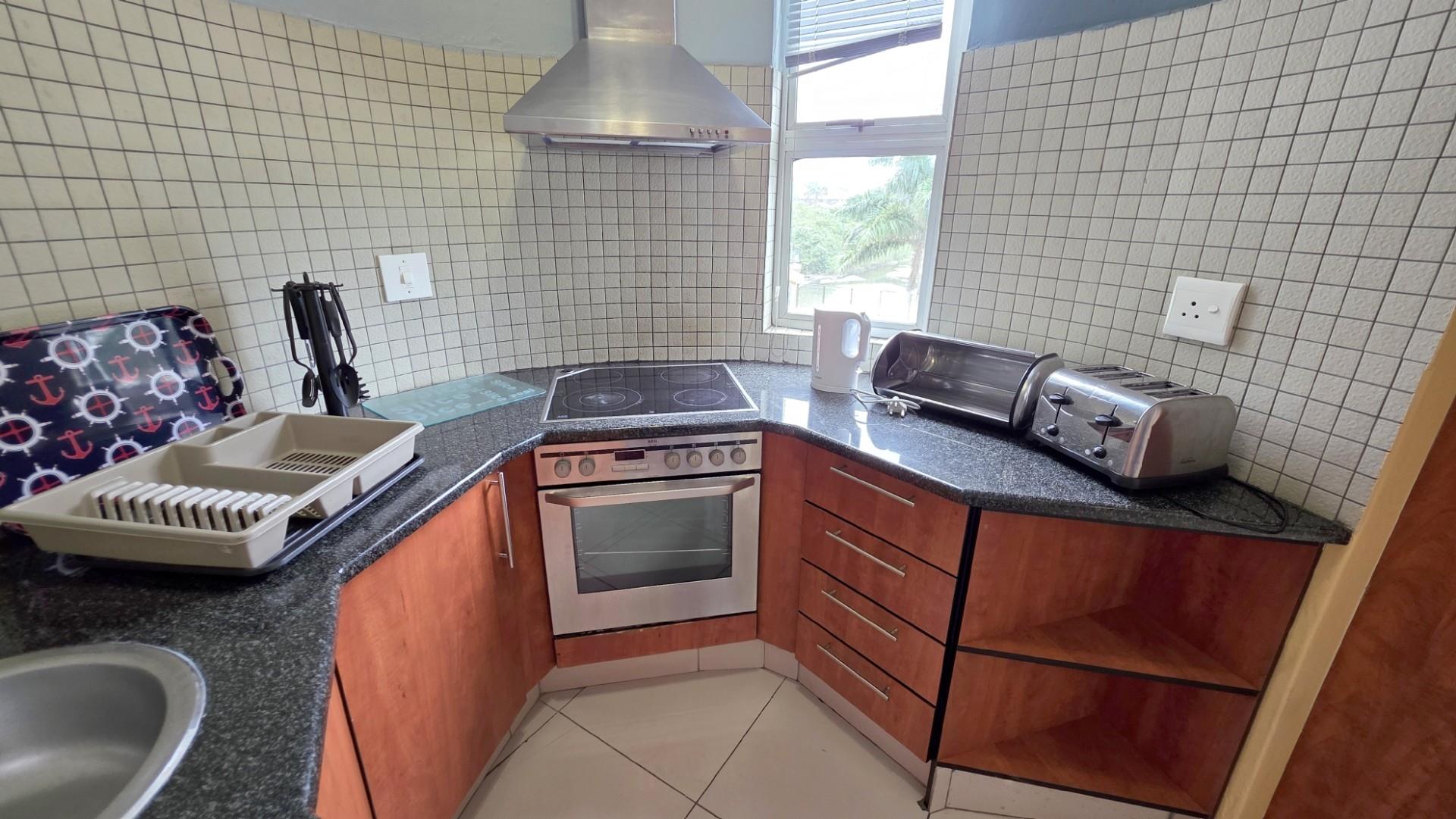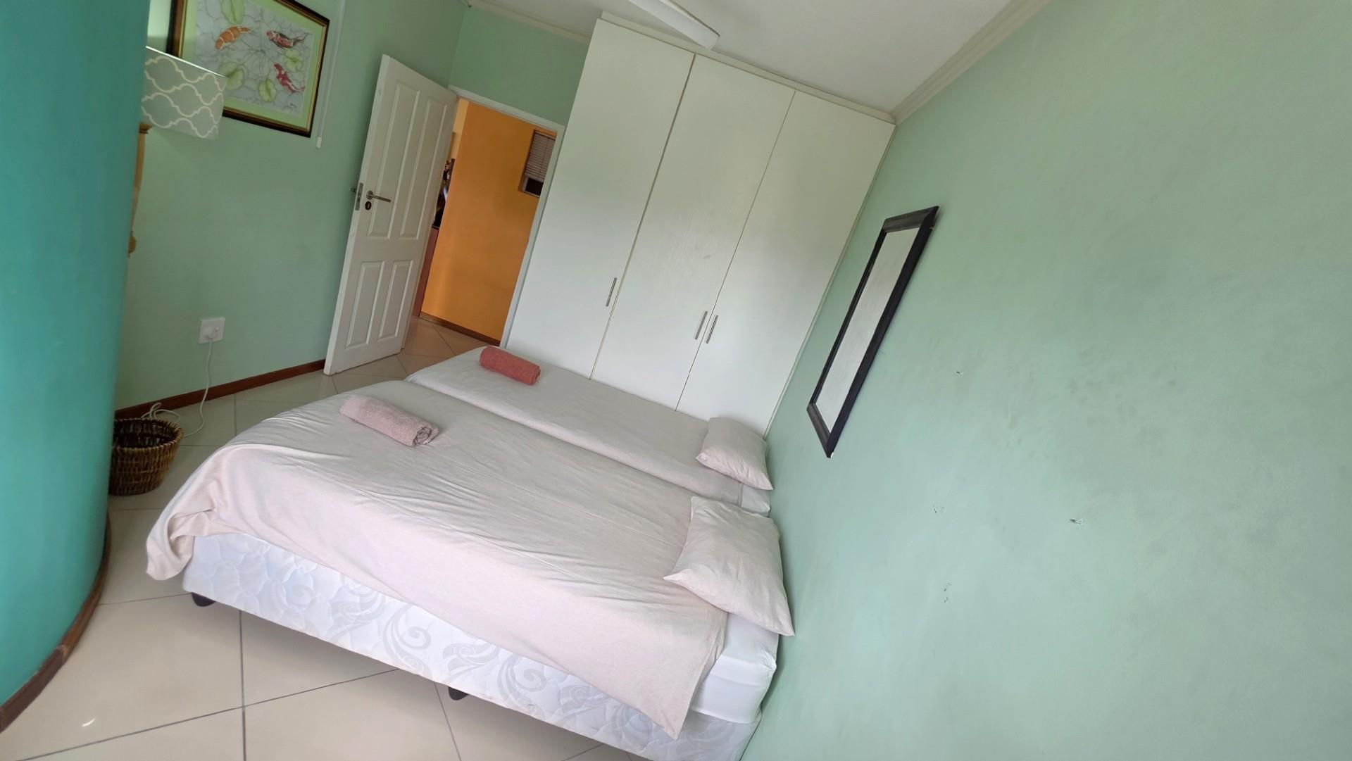 The open-plan lounge and dining area create a welcoming space for entertaining or unwinding after a day at the beach, while the sleek kitchen, complete with granite tops, extractor fan, stove and oven, makes cooking a pleasure. Designed for easy living, the apartment includes a washing machine, space for a tumble dryer and fridge, and is fully tiled while also being fitted with ceiling fans throughout for a cool, low-maintenance finish. Step out onto the spacious balcony and enjoy views of the sparkling pool, communal braai area, and glimpses of the ocean, the perfect setting for sundowners or relaxed family meals. The complex itself enhances the holiday vibe with a communal swimming pool, braai facilities and reserve water tanks, all within a secure environment featuring remote gate access and electric fencing.
