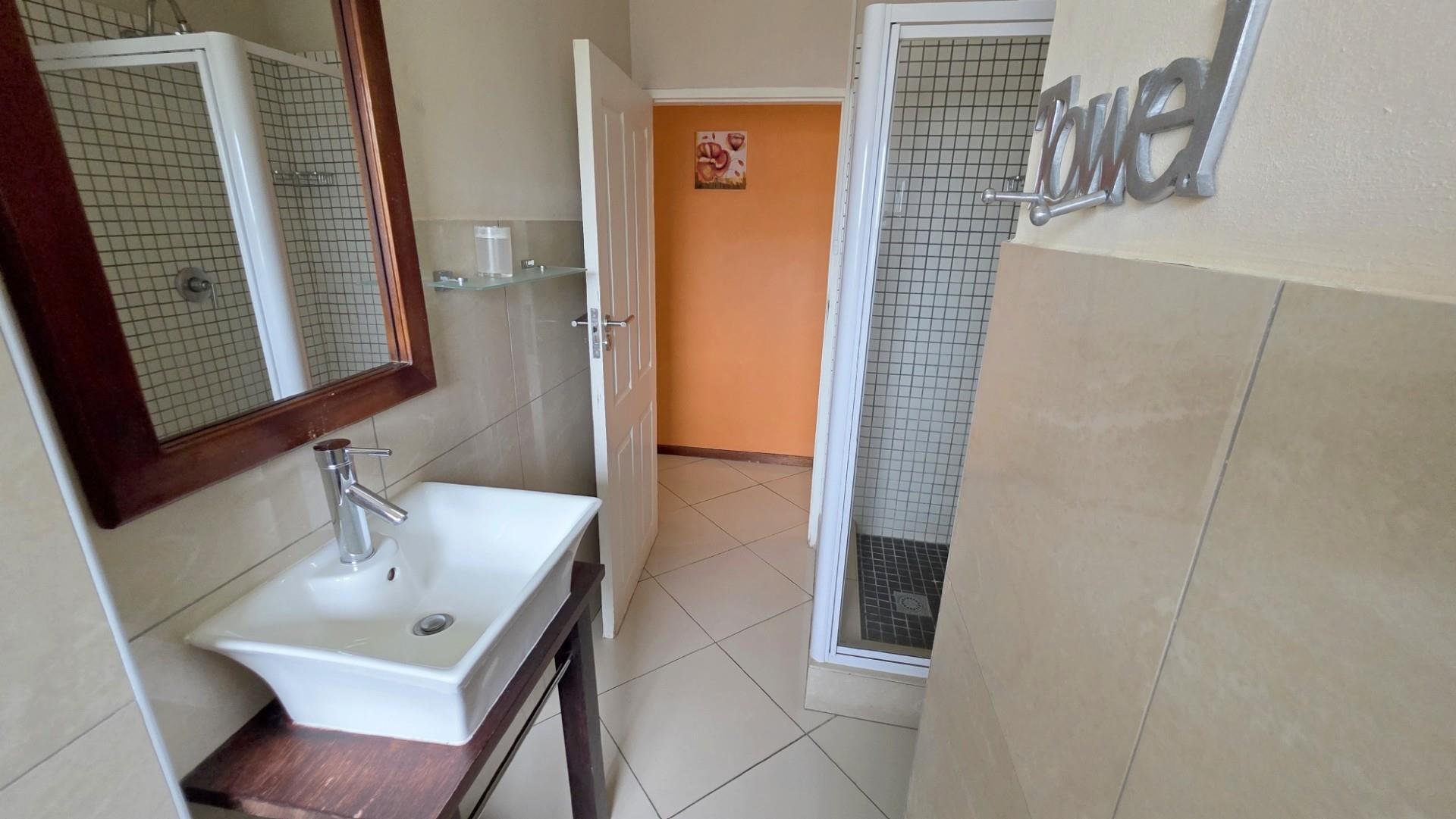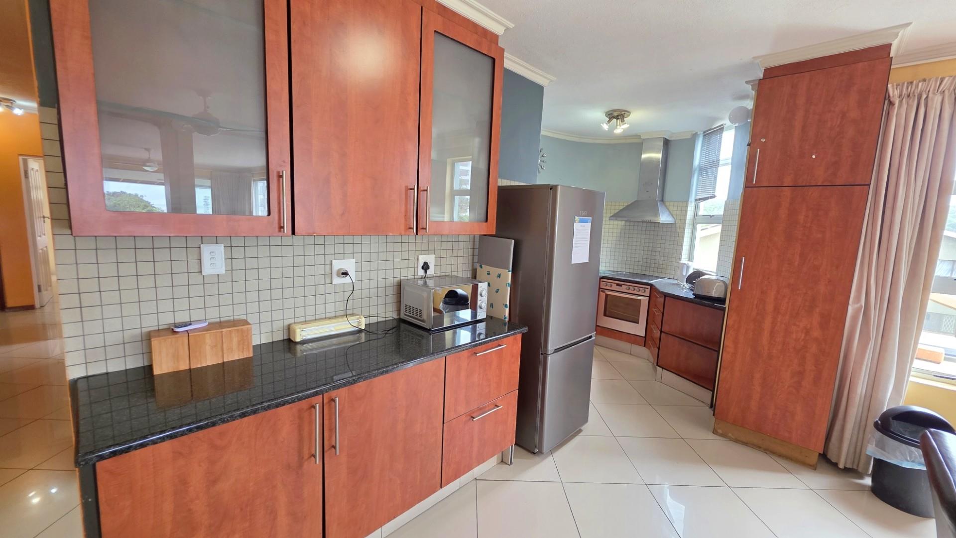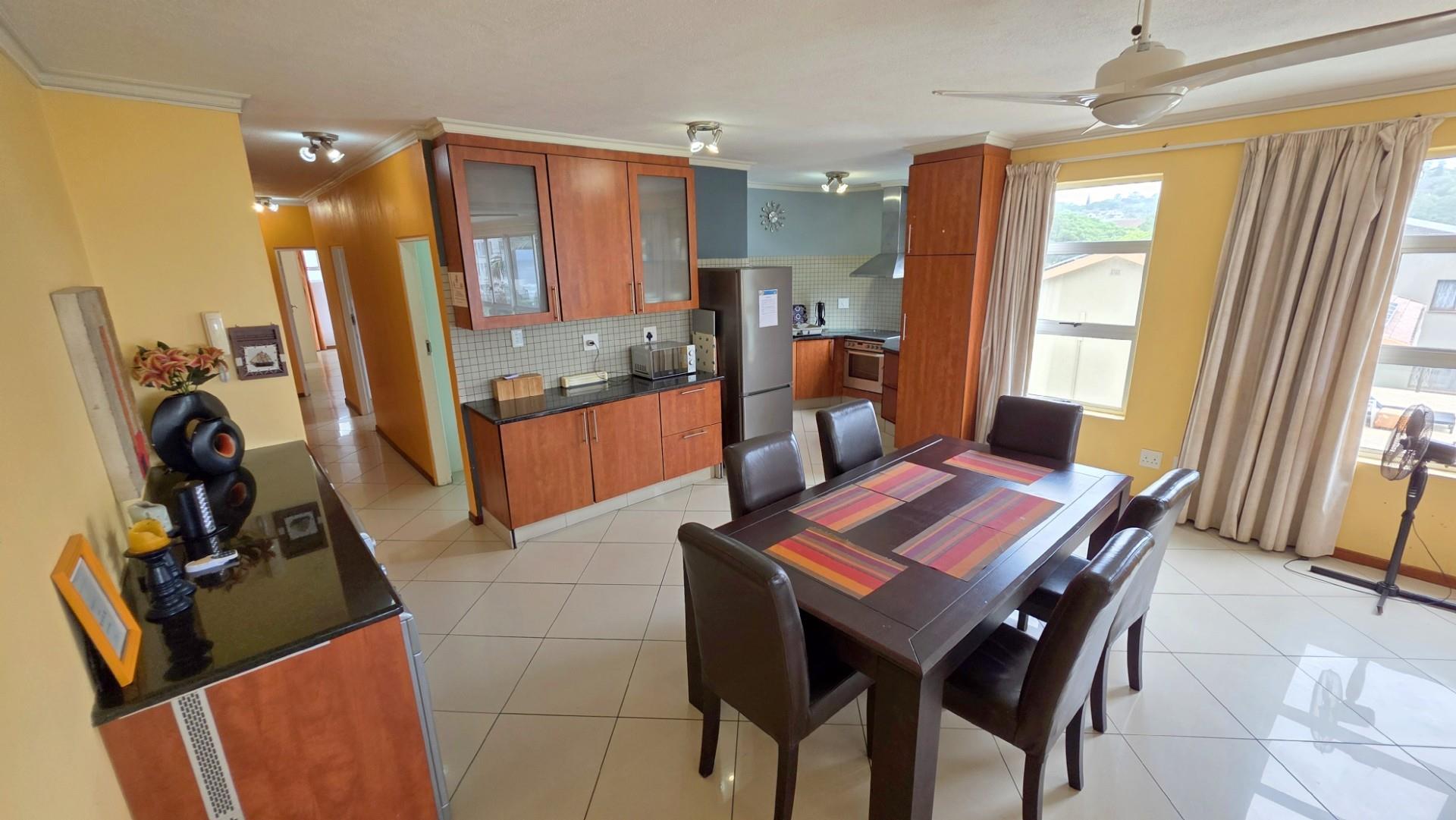 The open-plan lounge and dining area create a welcoming space for entertaining or unwinding after a day at the beach, while the sleek kitchen, complete with granite tops, extractor fan, stove and oven, makes cooking a pleasure. Designed for easy living, the apartment includes a washing machine, space for a tumble dryer and fridge, and is fully tiled while also being fitted with ceiling fans throughout for a cool, low-maintenance finish. Step out onto the spacious balcony and enjoy views of the sparkling pool, communal braai area, and glimpses of the ocean, the perfect setting for sundowners or relaxed family meals. The complex itself enhances the holiday vibe with a communal swimming pool, braai facilities and reserve water tanks, all within a secure environment featuring remote gate access and electric fencing.