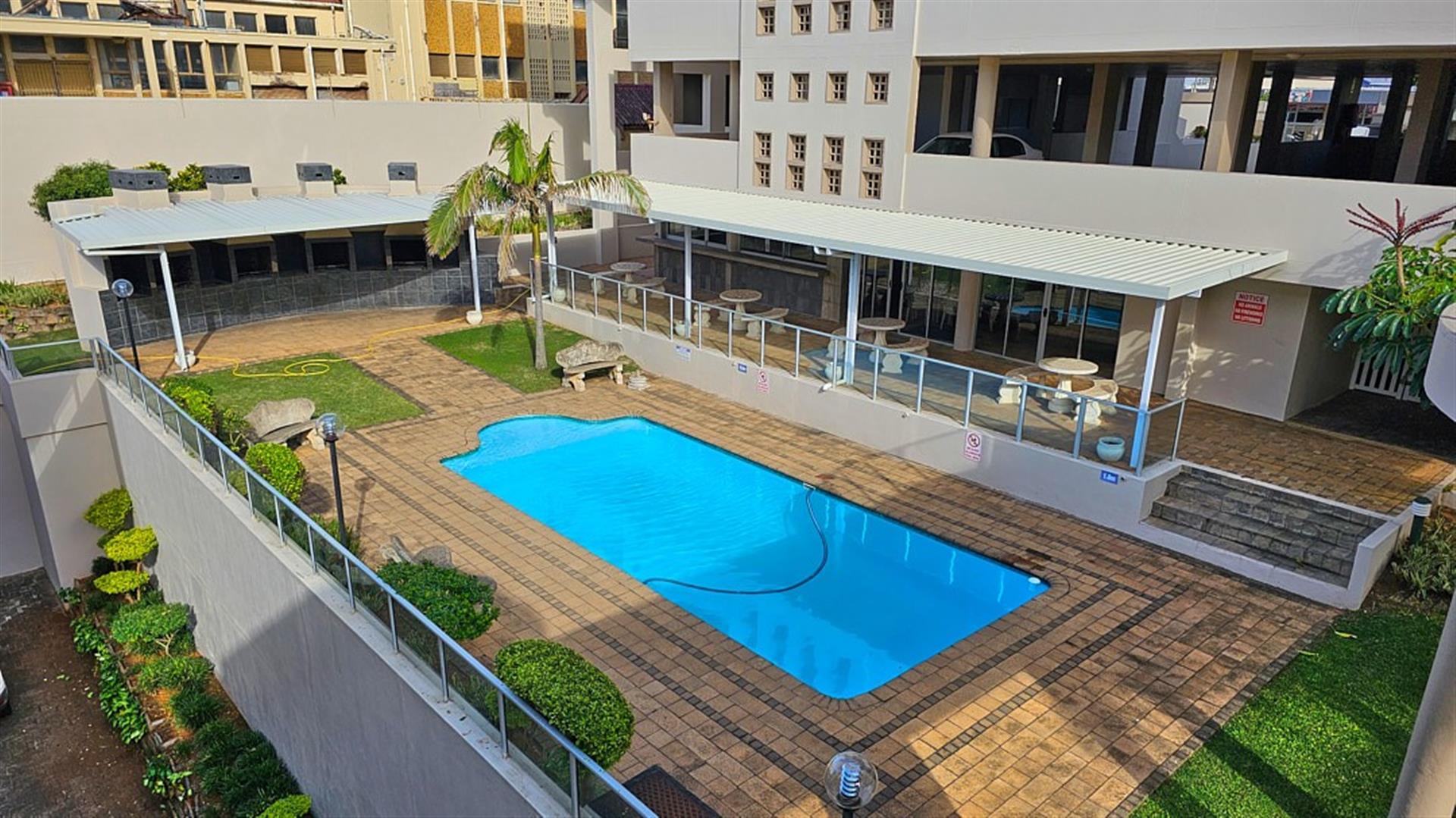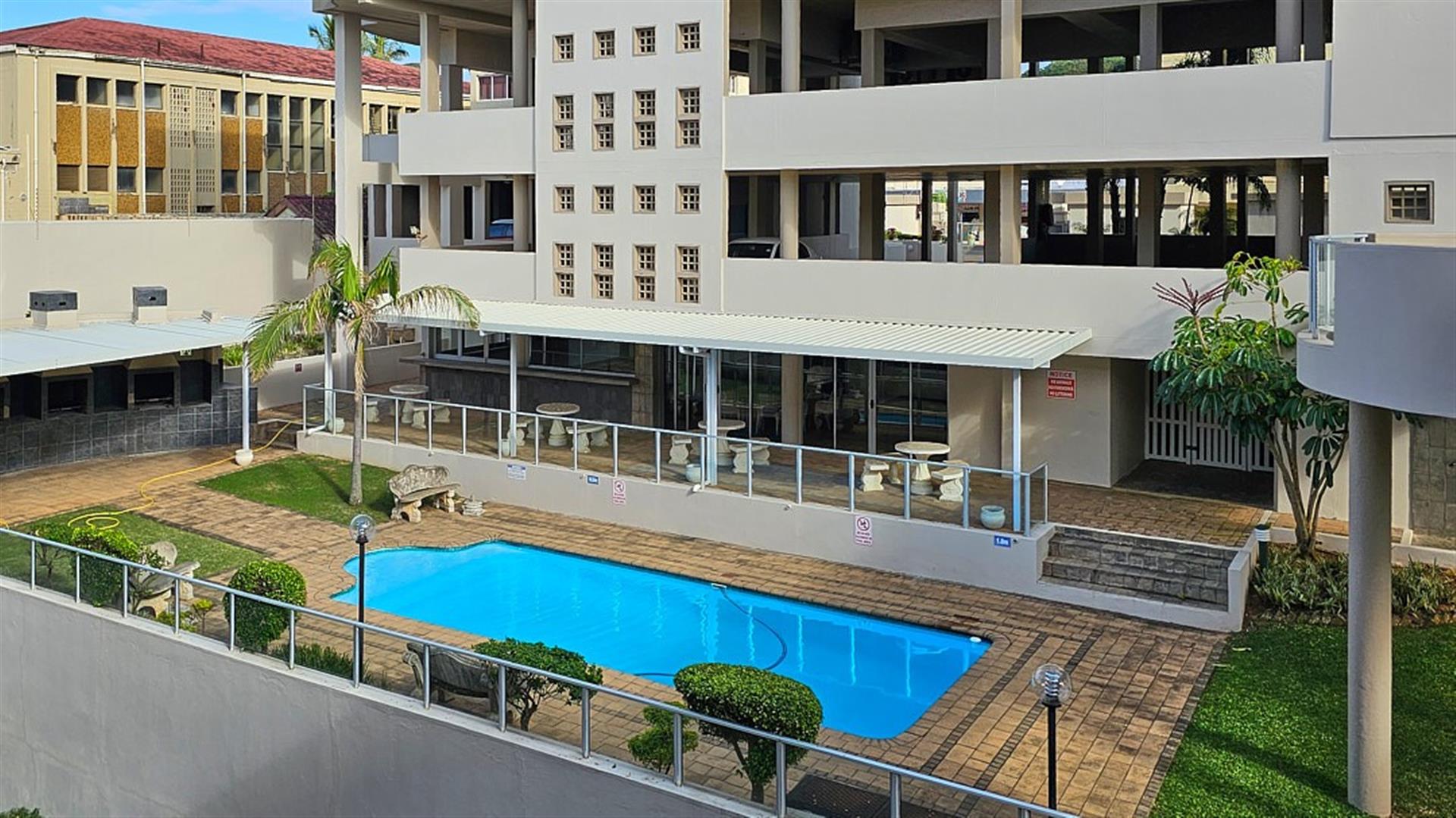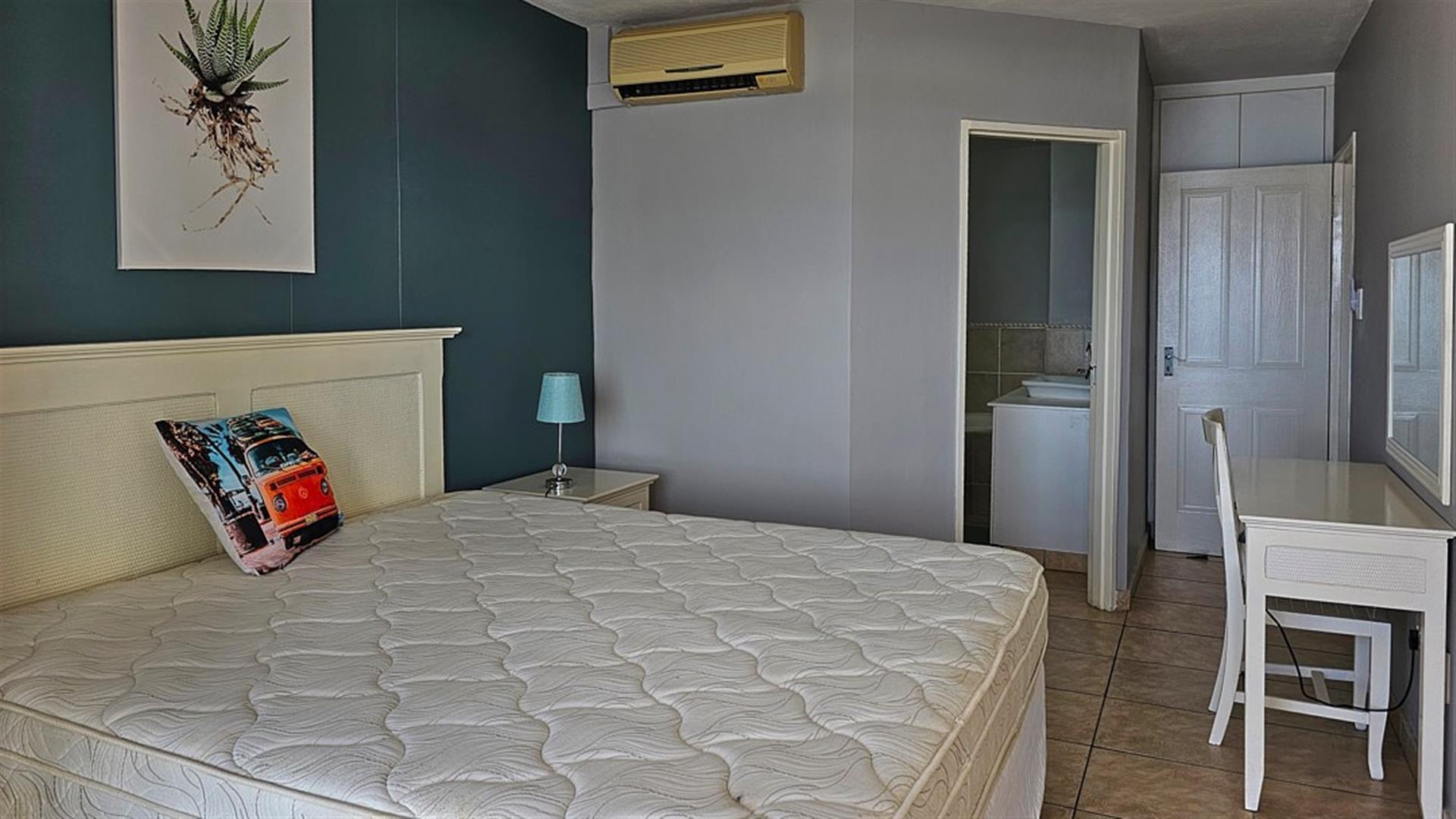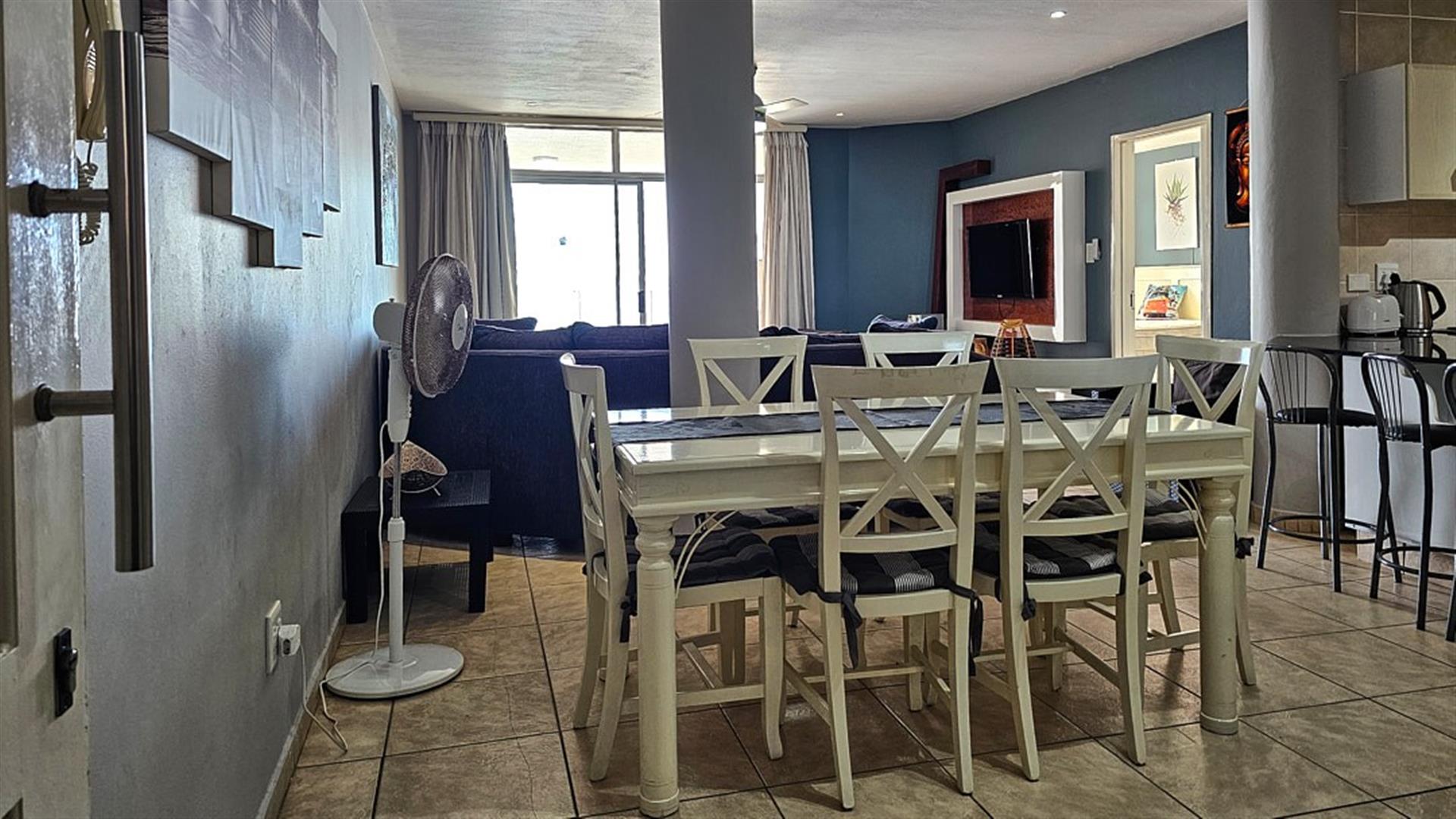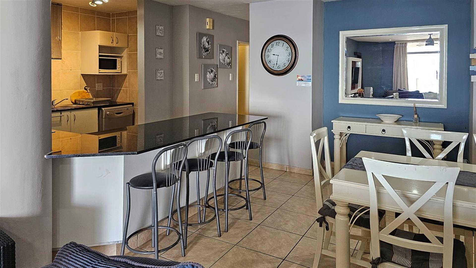 INVESTOR`S DREAM Investment!! Live the OCEAN...TRUST your agent! See the SEA, hear the SEA, smell the SEA...almost TOUCH THE OCEAN!! This apartment is pure beach BLISS! A brilliant buy for any investor: beachfront, wheelchair friendly because of an elevator, close to the beach and all other amenities like shops and restaurants. This complex is always fully booked right through the year as it is a great favorite of holidaymakers. Right ON the ocean! As you enter the apartment, the first thing you become aware of is the immense blue of the ocean. The apartment is infused with ocean vibes, sight, smell and hearing. The open plan dining room/ lounge// kitchen area is spacious and light ( with air-conditioning) with natural light streaming in through the glass sliding doors that opens to a spacious balcony. Here you can enjoy the ocean in all it`s glory to relax or entertain. The balcony is partially covered with stunning 180 degrees sea views... ocean bliss indeed! As you look out to the ocean, the fishing pier is to your left, whilst the main BLUE FLAG BEACH is to your left. Beautiful... The open plan kitchen is modern with glamorous granite counter tops and a dining nook. The whole apartment is in good condition with no sign of damp.