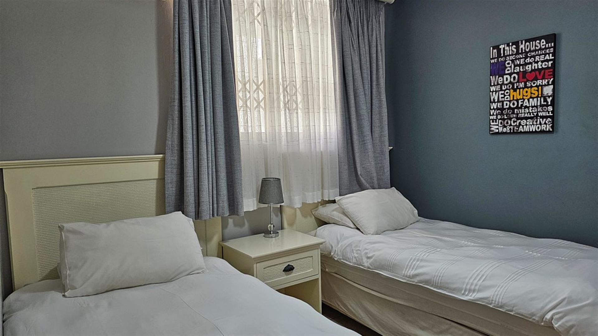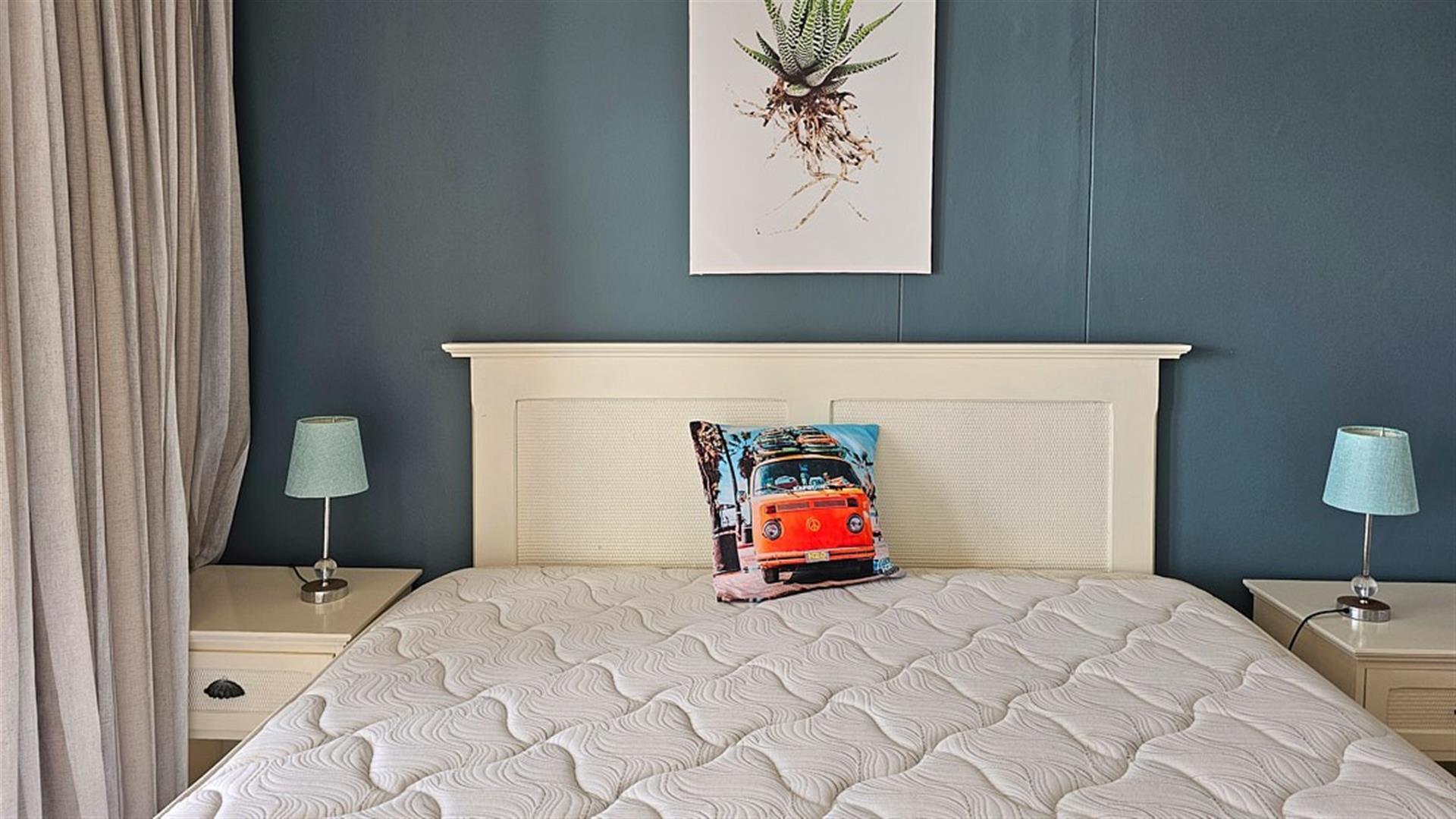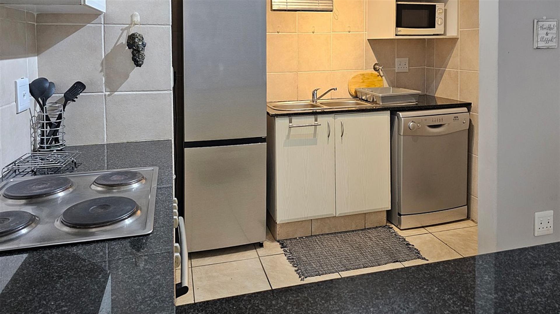 The main bedroom opens with sliding doors to said balcony and you can enjoy the florescent, white waves as the sound of the ocean lulls you to sleep.is. This bedroom is en-suite to a modern full bathroom with a shower and a bath. The 2nd and 3rd bedrooms are of good size and share the second bathroom wit a bath. The apartment comes with a double, tandem, lock-up garage with space for visitors to park. A huge bonus. The complex is beautifully maintained and has a sparkling blue, communal swimming pool with a welcoming braai area. This is a security complex with a 24/7 security guard at the automated gate and electric fencing. The apartment is sold fully furnished with quality furniture and appliances. Perfect as a lock-up and go or a money spinner when let out to holiday makers.... even more perfect if you are lucky enough to make this your permanent home!! Blessed INDEED! Give me a call..