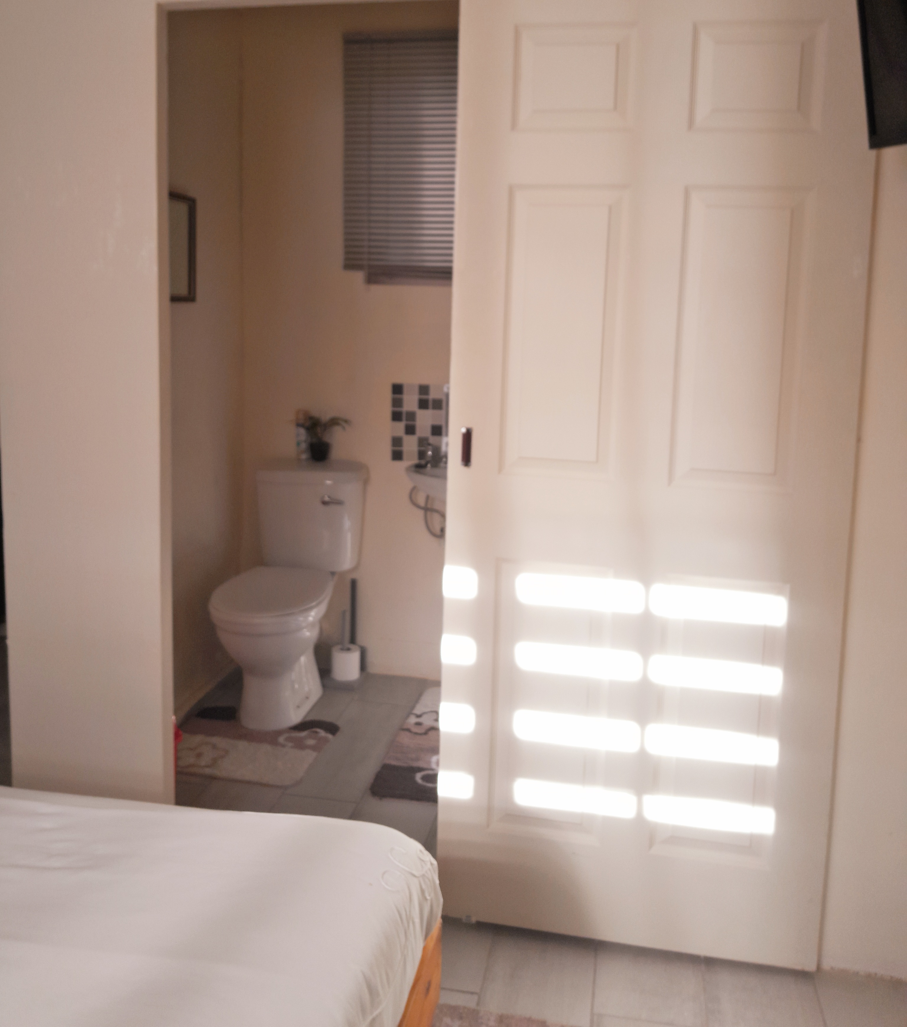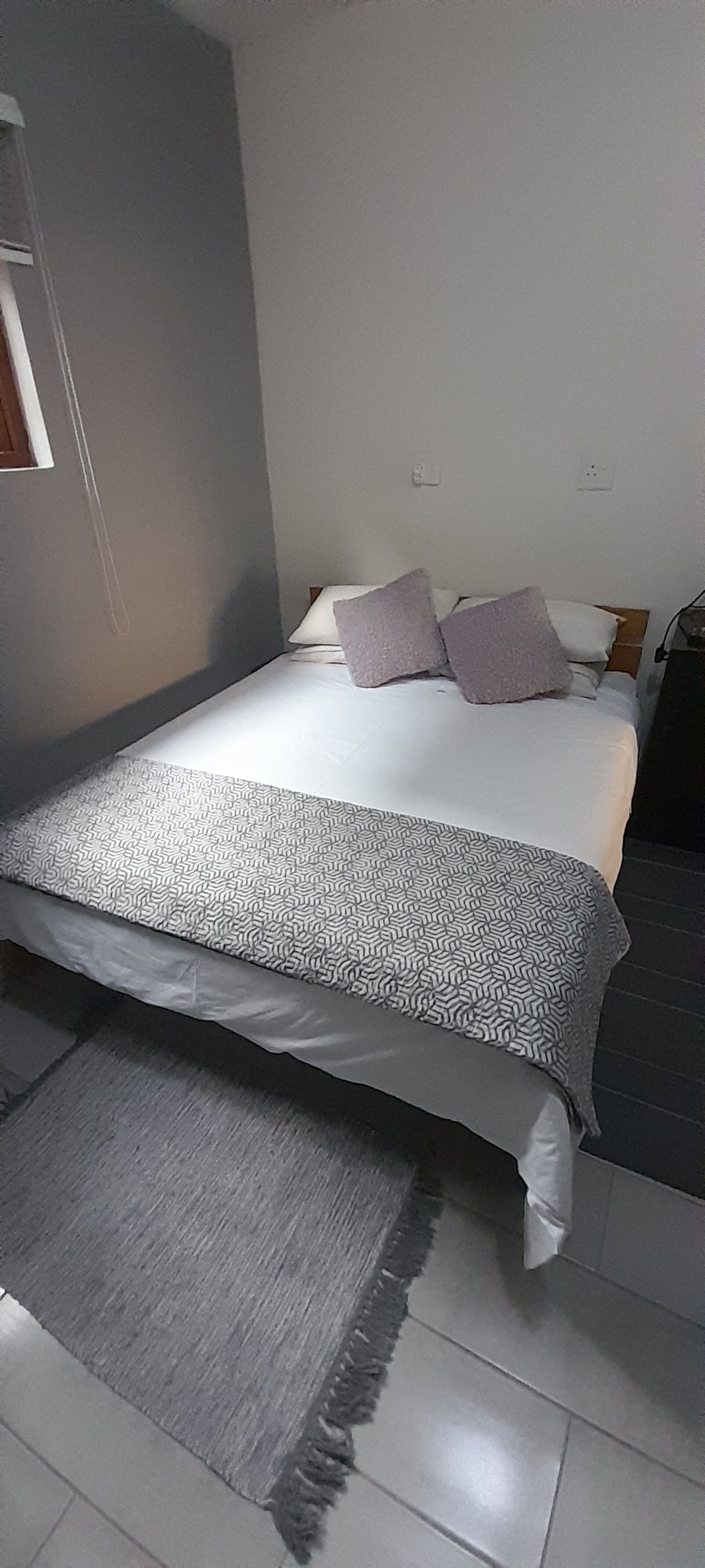 The furnished unit features a private shower and a spacious room where you can sleep comfortably, cook your meals, and relax while watching TV. Rent is R3,500 per month, which includes water, sanitation, and refuse removal. Electricity is prepaid, and the instant (speed-heat) shower is energy-efficient and easy to use.