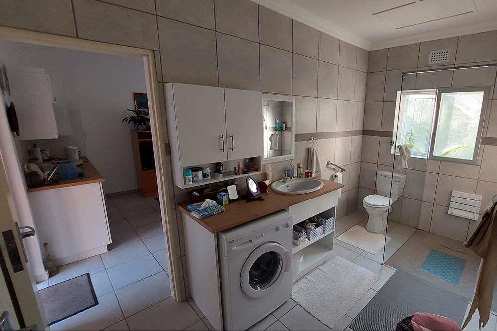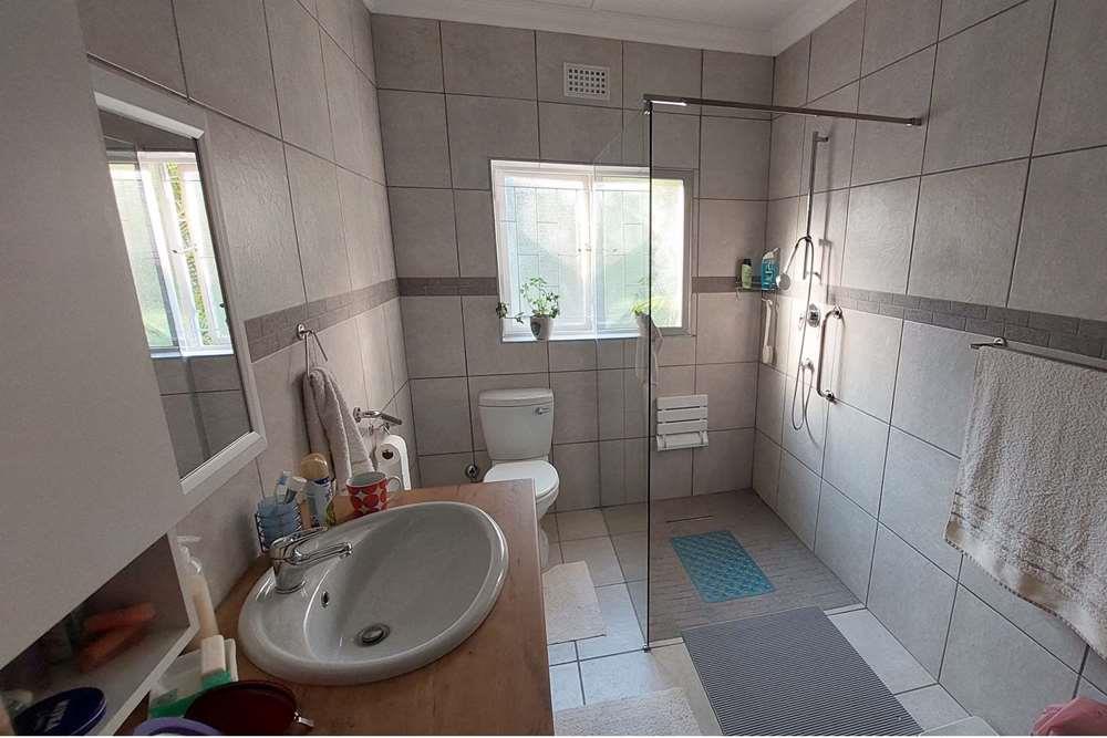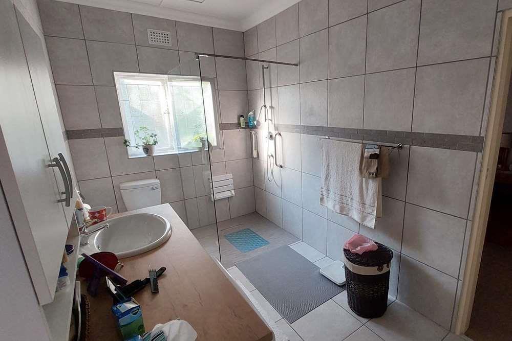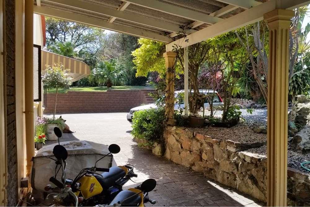 The house is set in such a way that there is an atrium or courtyard in the middle, surrounded by four walls thus affording the owners privacy and security. On the front is the spacious double garage. To the left are three living spaces made up of the entertianment area, TV room, dining room and kitchen - separate from the guest area which is on the opposite side. The guest area has a living room, big bedroom, kitchen and wheel chair friendly fully renovated bathroom.
