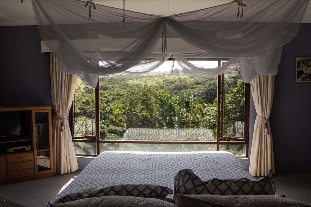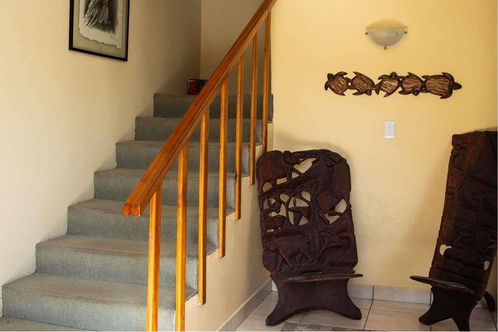 On the far end opposite the garage is the main entrance with a hallway and two bedrooms with their own living area, bathroom and patio. The big and spacious main bedroom is upstairs. It overlooks the courtyard downstairs and has the most beautiful open views of the indegenous hillside. Here you will find his and hers walk-in closets, full bathroom and gym/study area.