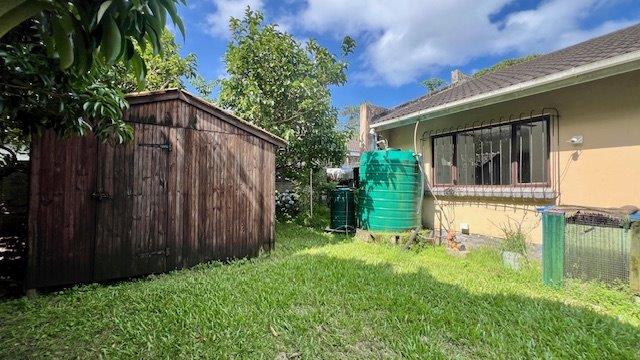 Additional features include a backup water tank and pump, a double garage, and a small courtyard off the kitchen. The property is conveniently located within walking distance to Hibiscus Mall and Margate Private Hospital. It’s also equipped with an alarm system and security beams, and is partly fenced and walled on three sides.