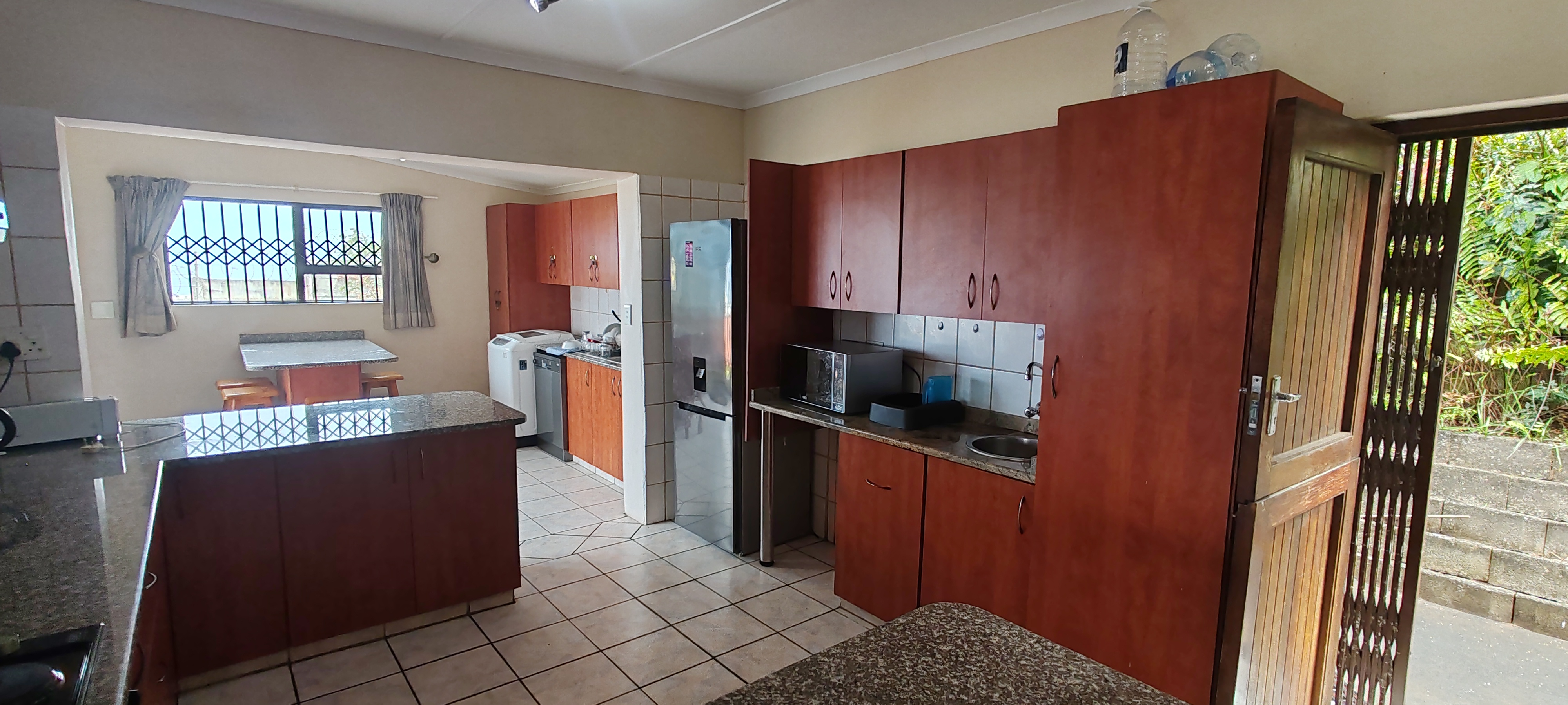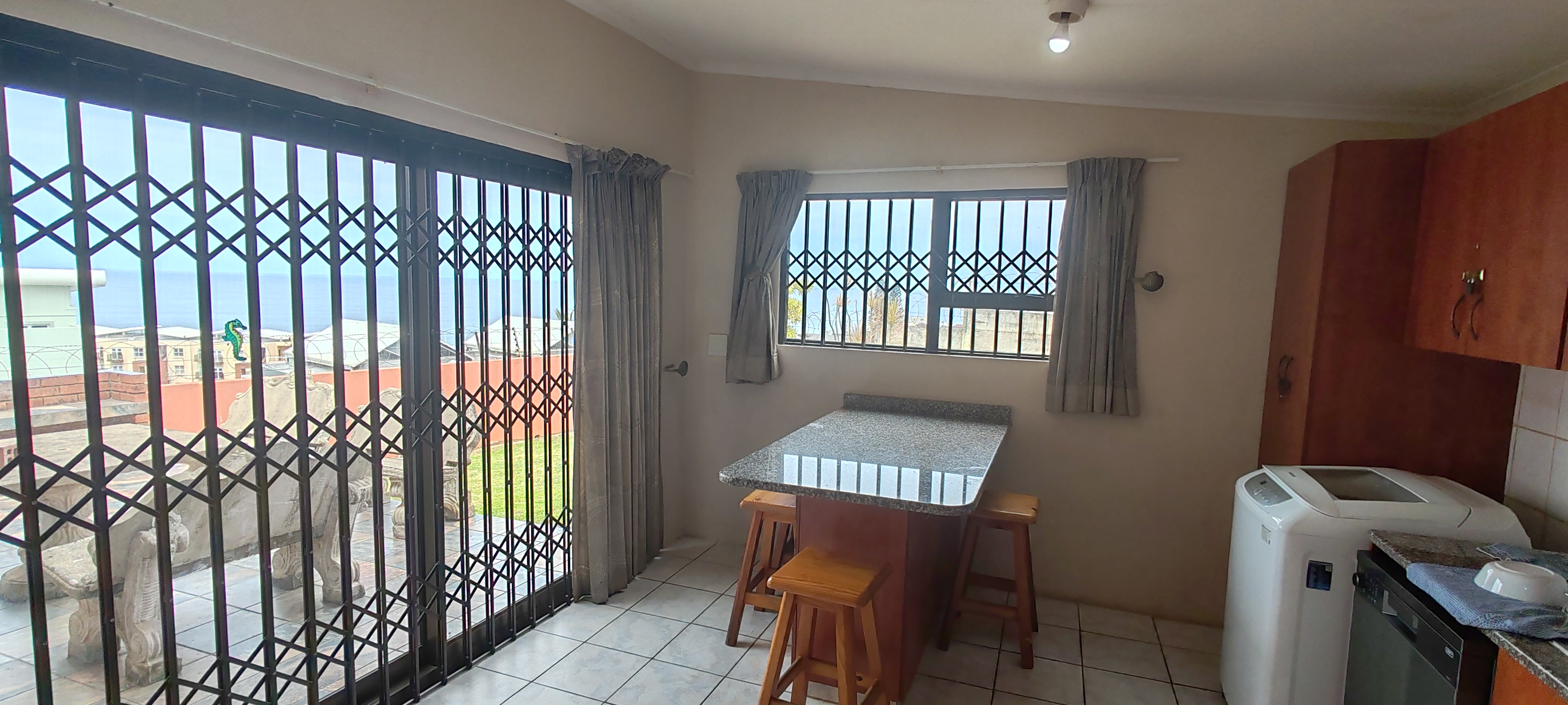 The modern kitchen shines with granite countertops and a separate scullery, while the main bedroom offers an en-suite bathroom and direct patio access for those peaceful ocean breezes. Every window and sliding door is fitted with Trellidor security gates, so you can relax knowing your coastal retreat is safe and secure.