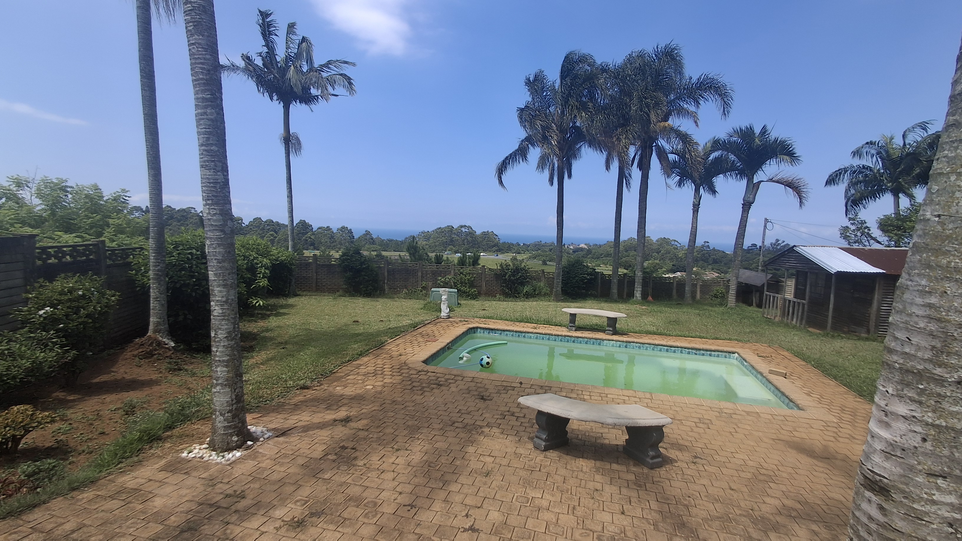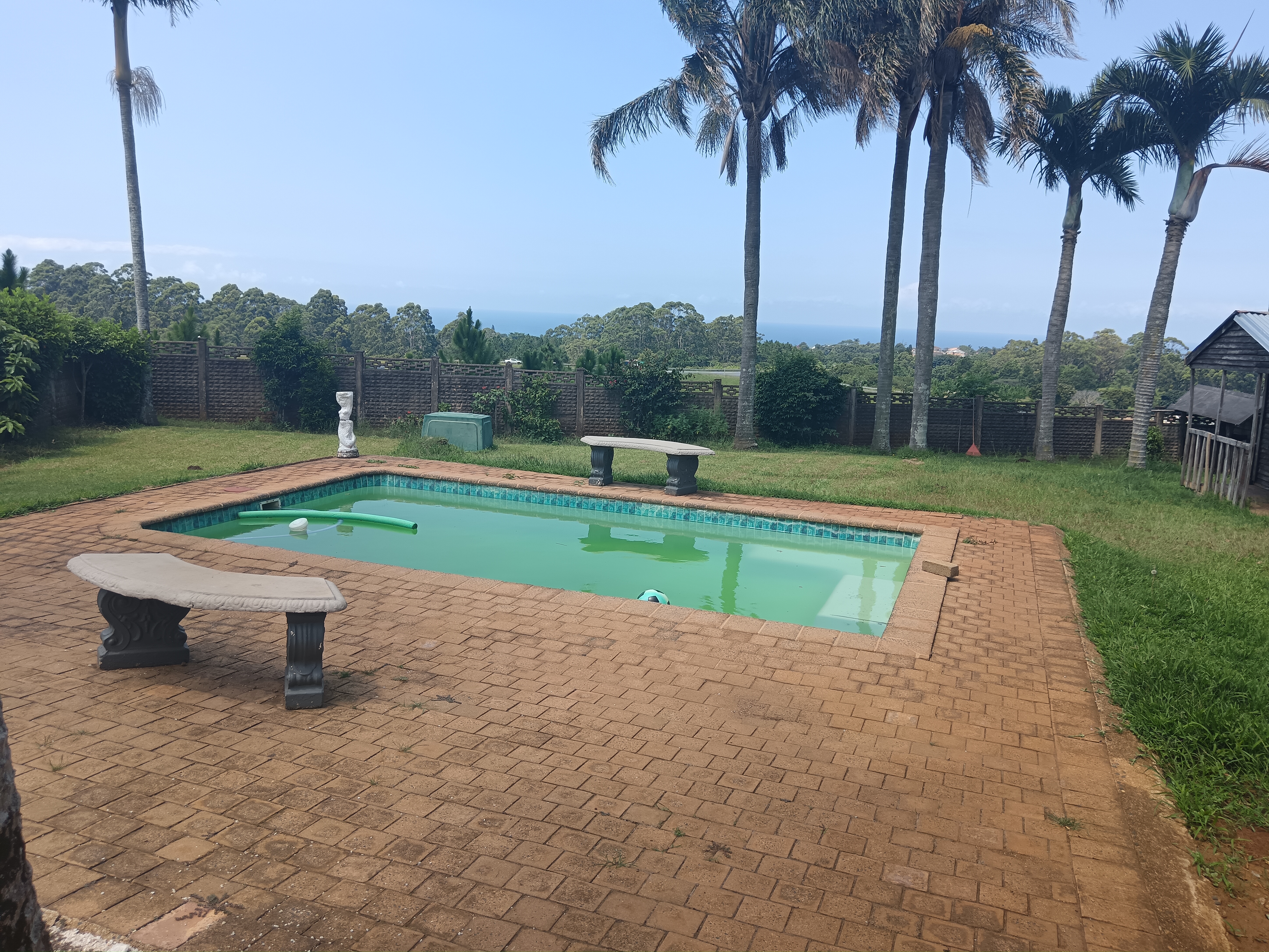 Step outside and the home continues to impress. A paved driveway leads to a secure single lock up garage, while the fully fenced property with precast walls, sliding gate, burglar bars and safety gates ensures privacy and peace of mind. The wraparound low maintenance garden is neat and well kept, opening up to a sparkling swimming pool and built in braai area, perfect for entertaining friends and family on warm summer days. An additional outside bathroom adds convenience for poolside gatherings. There is also a Wendy house on the property which, with a little TLC, could easily be converted into a rental unit or additional accommodation. The property includes a backup water system for added reassurance during outages. All of this is set against breathtaking panoramic ocean views, giving this home that special coastal touch. Whether you are looking for a permanent family residence, a holiday retreat or an entertainer’s dream, this property truly delivers on every level.