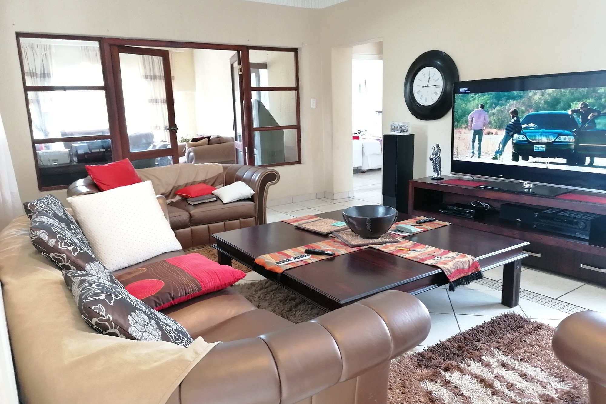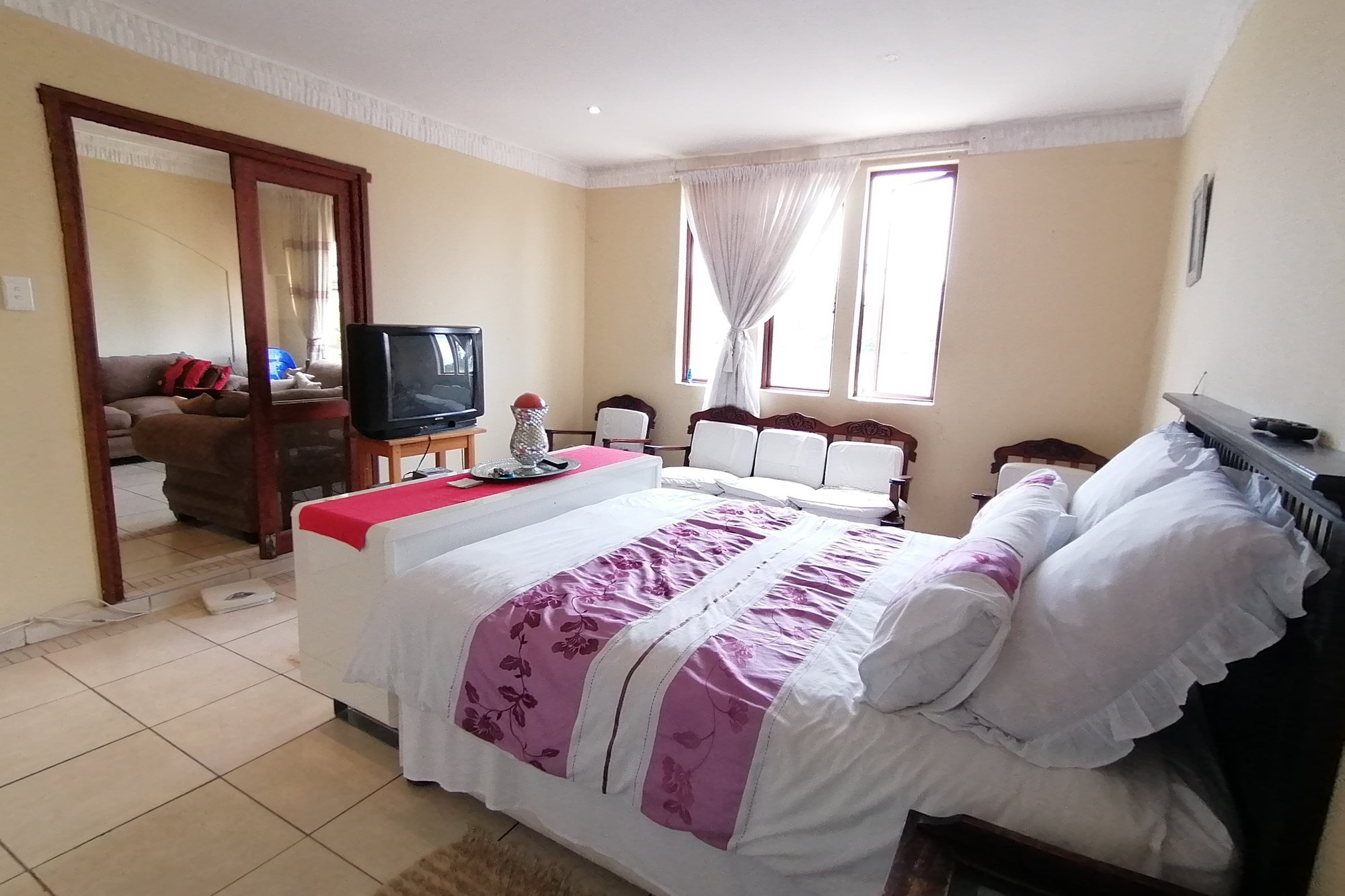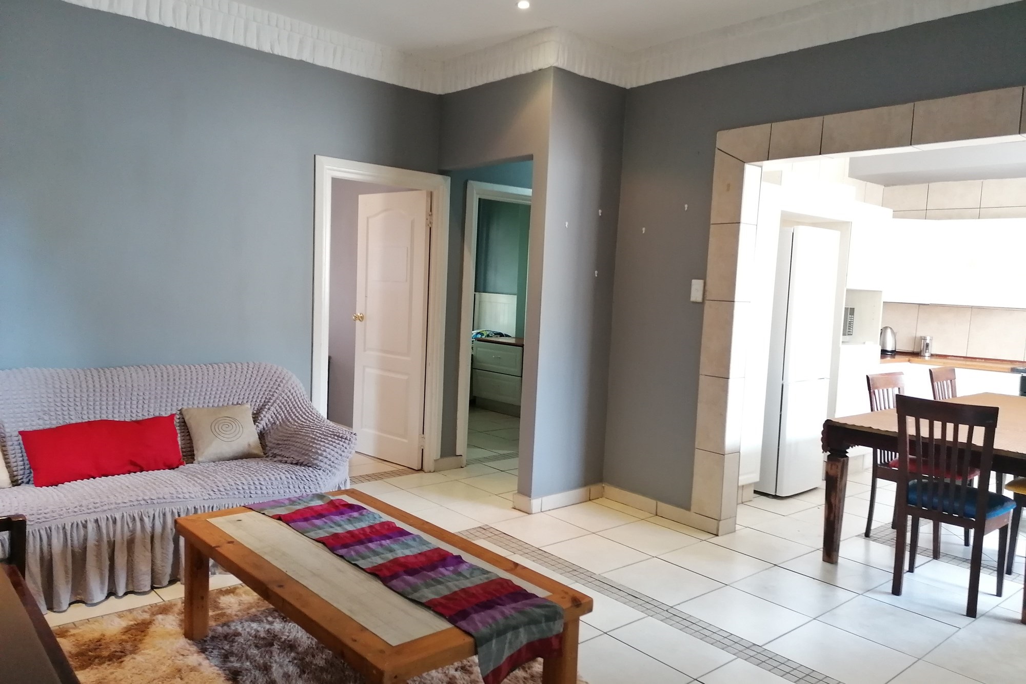 It has three bedrooms, two separate living rooms, a huge kitchen and two bathrooms. The kitchen is big and bright with exquisite wooden tops that give it character. The main bedroom is set separately from other bedrooms giving you privacy. It has an en-siute and private pyjama lounge.