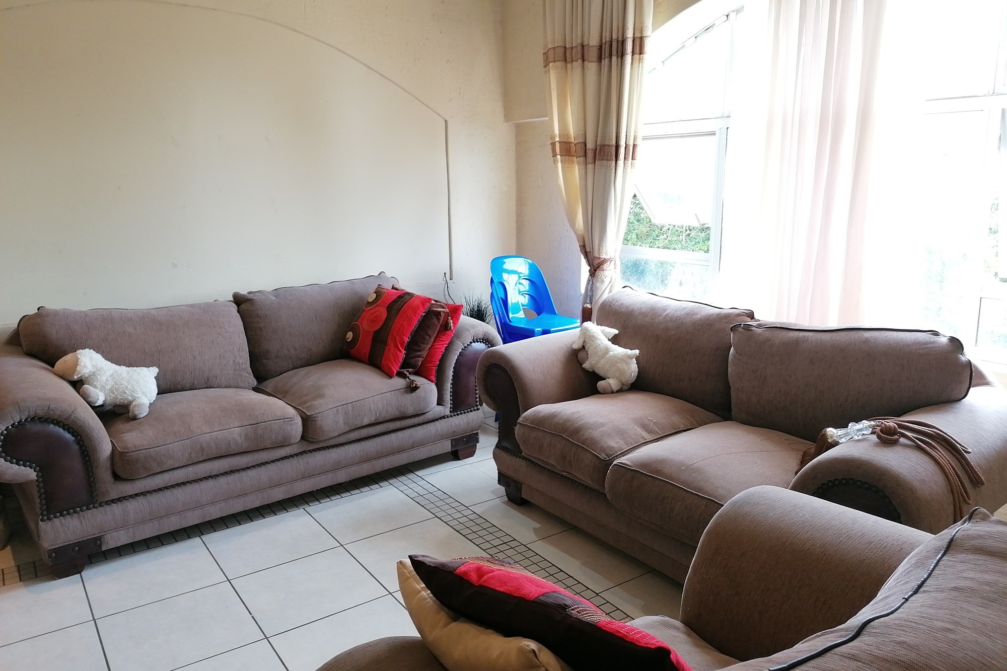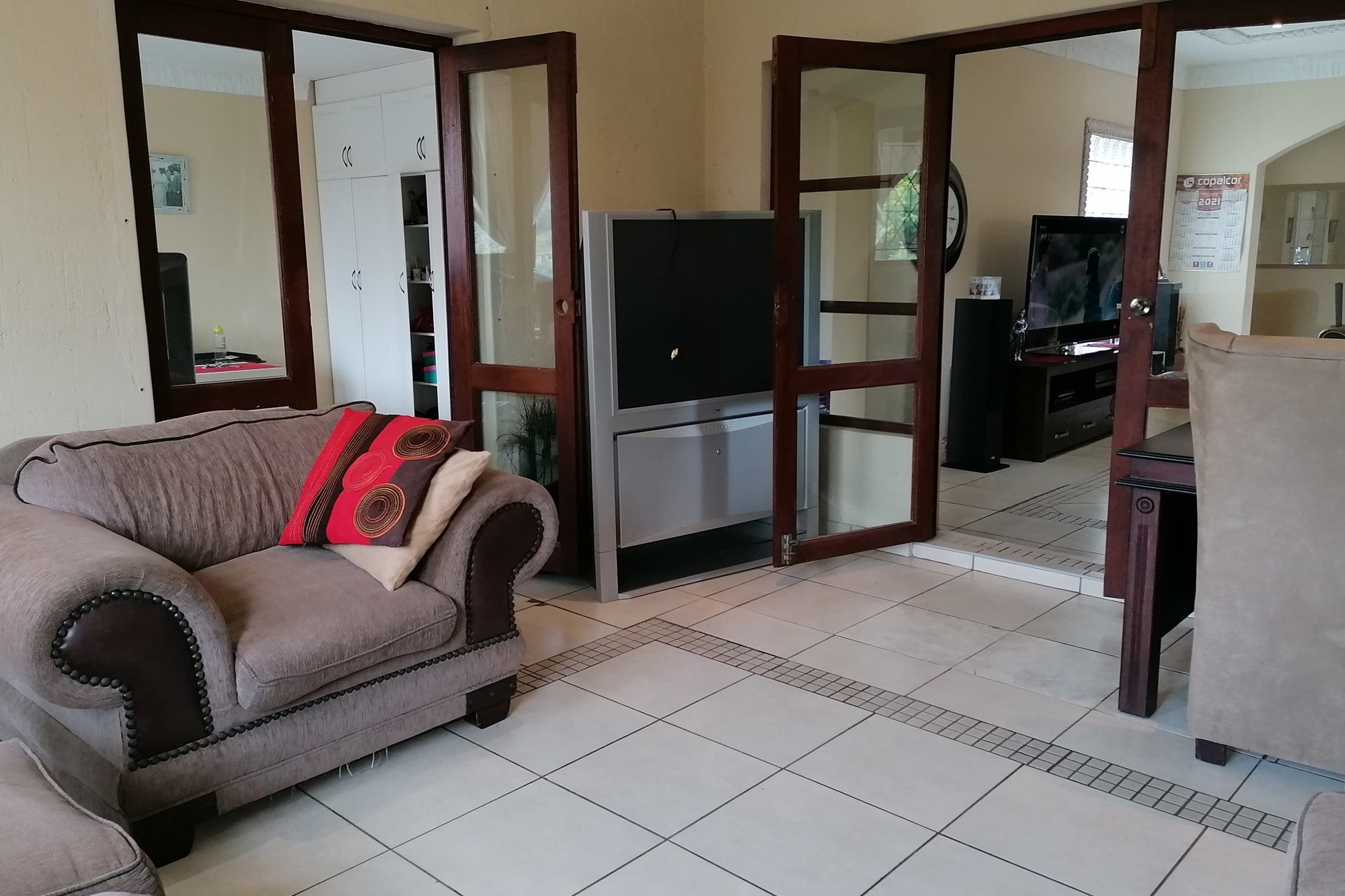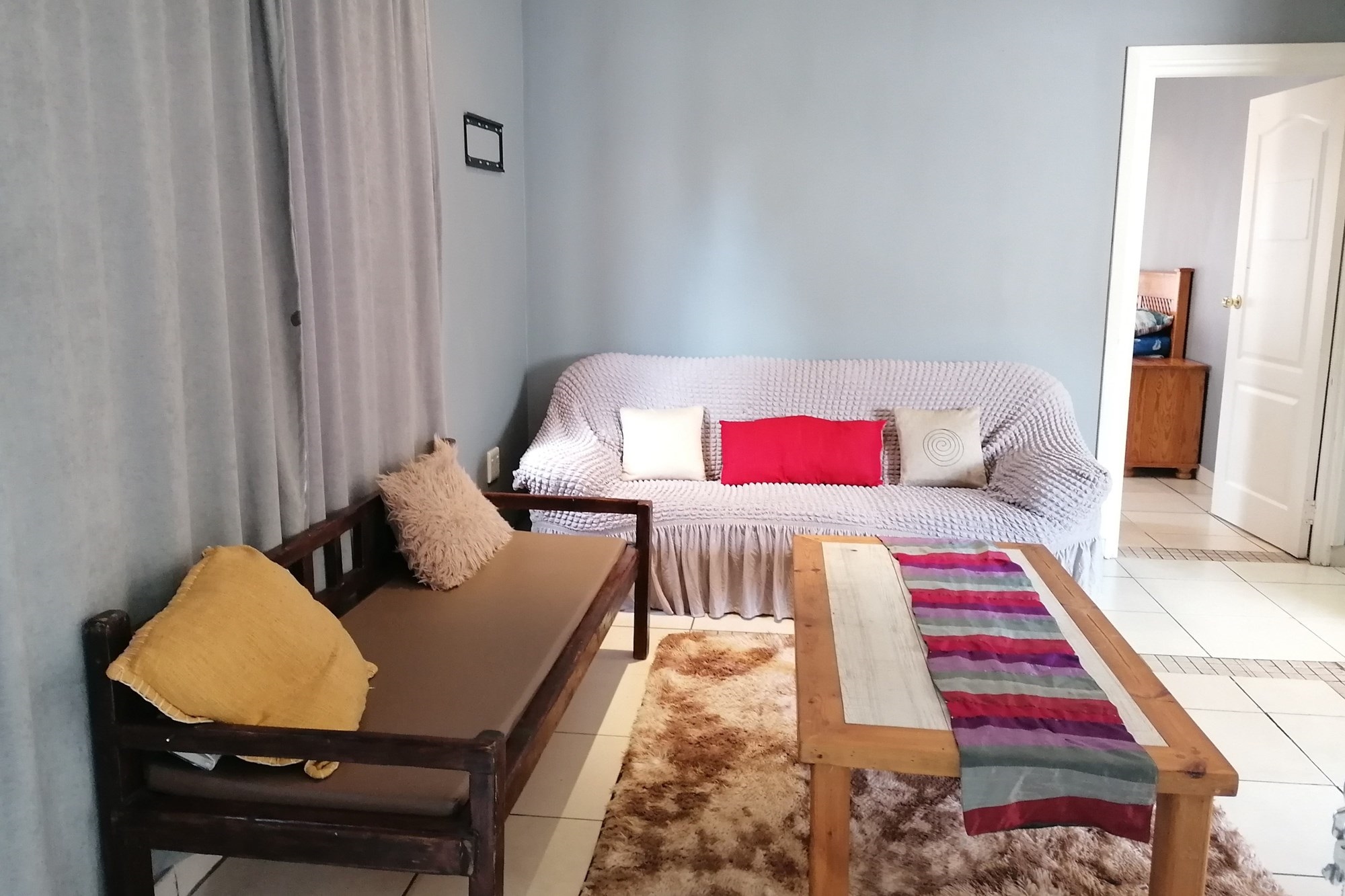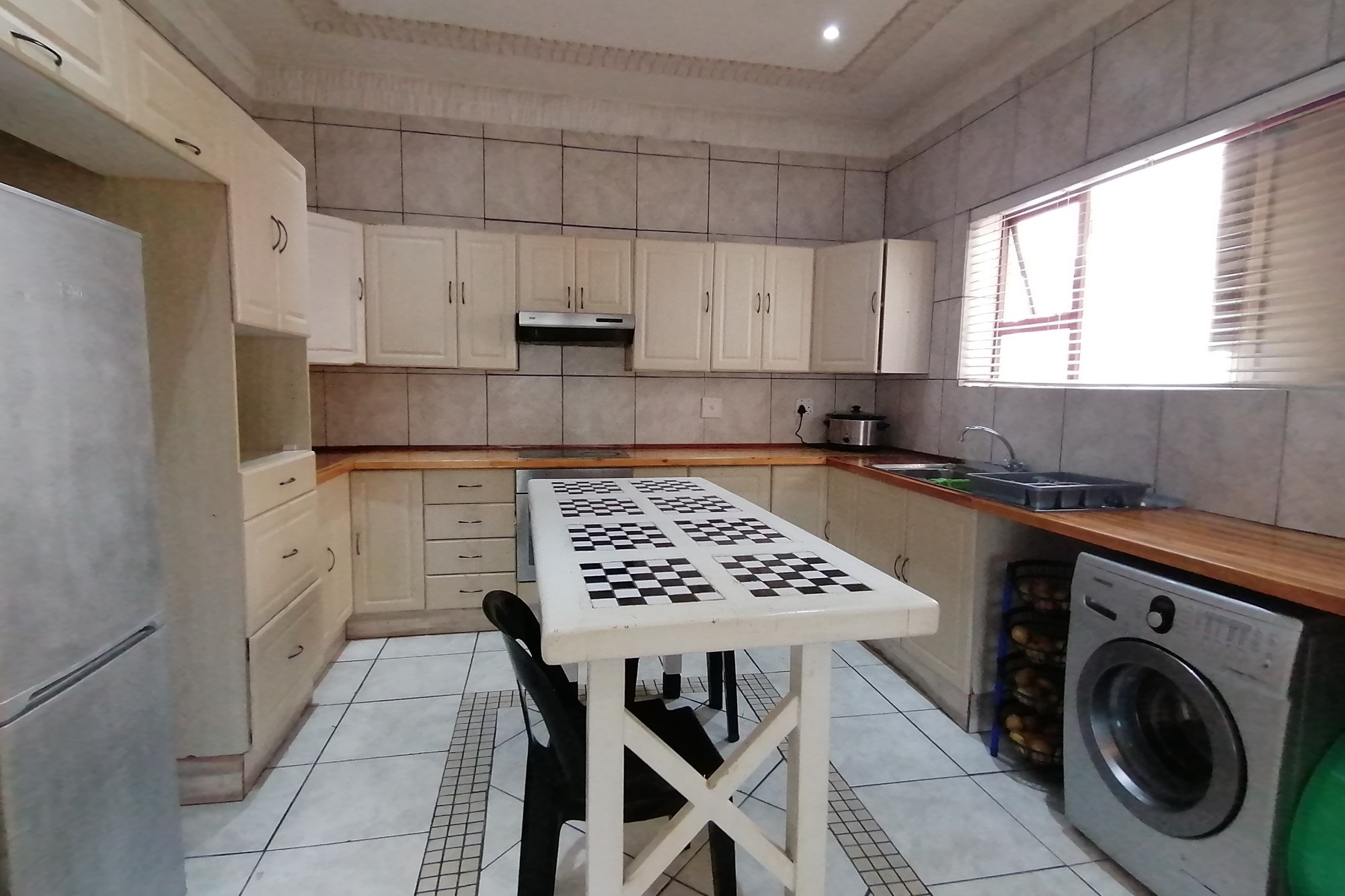 It has three bedrooms, two separate living rooms, a huge kitchen and two bathrooms. The kitchen is big and bright with exquisite wooden tops that give it character. The main bedroom is set separately from other bedrooms giving you privacy. It has an en-siute and private pyjama lounge.