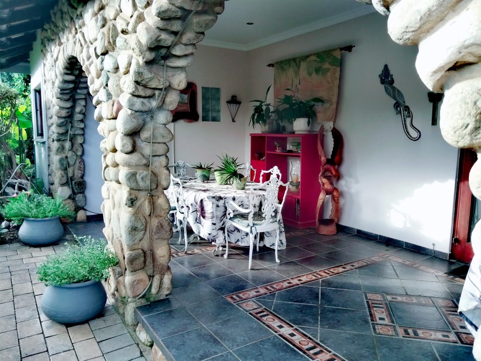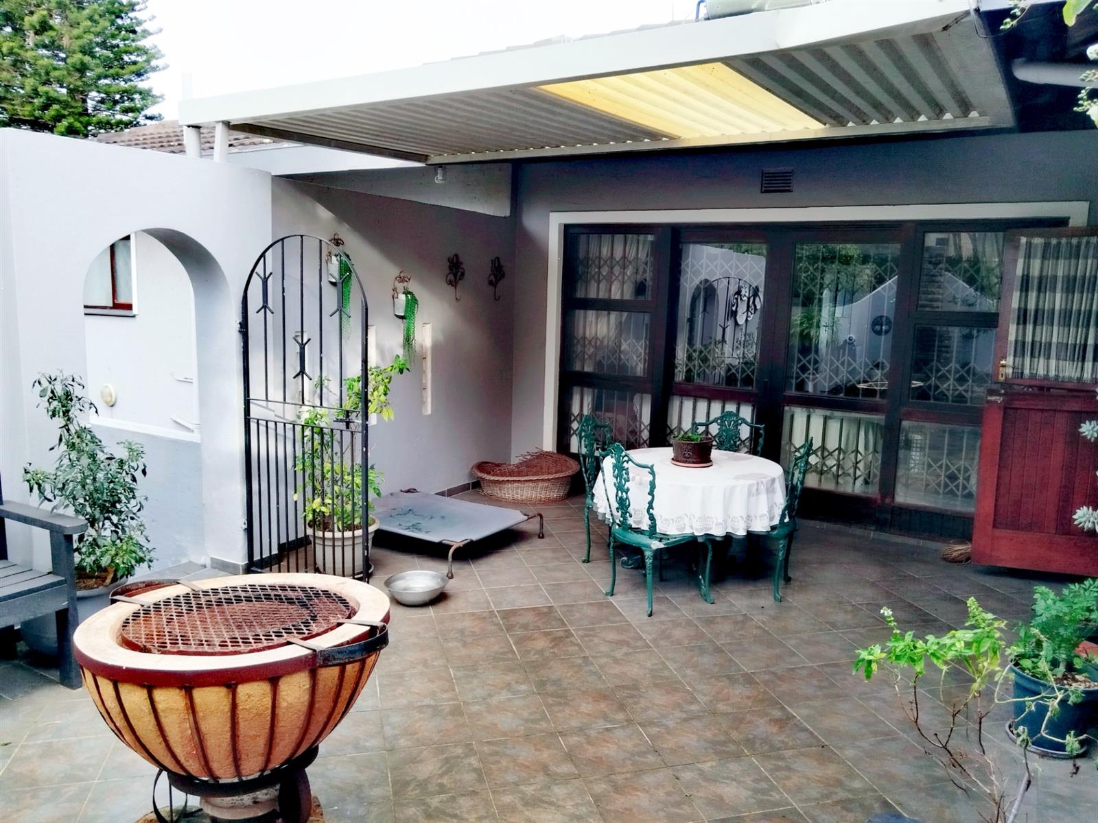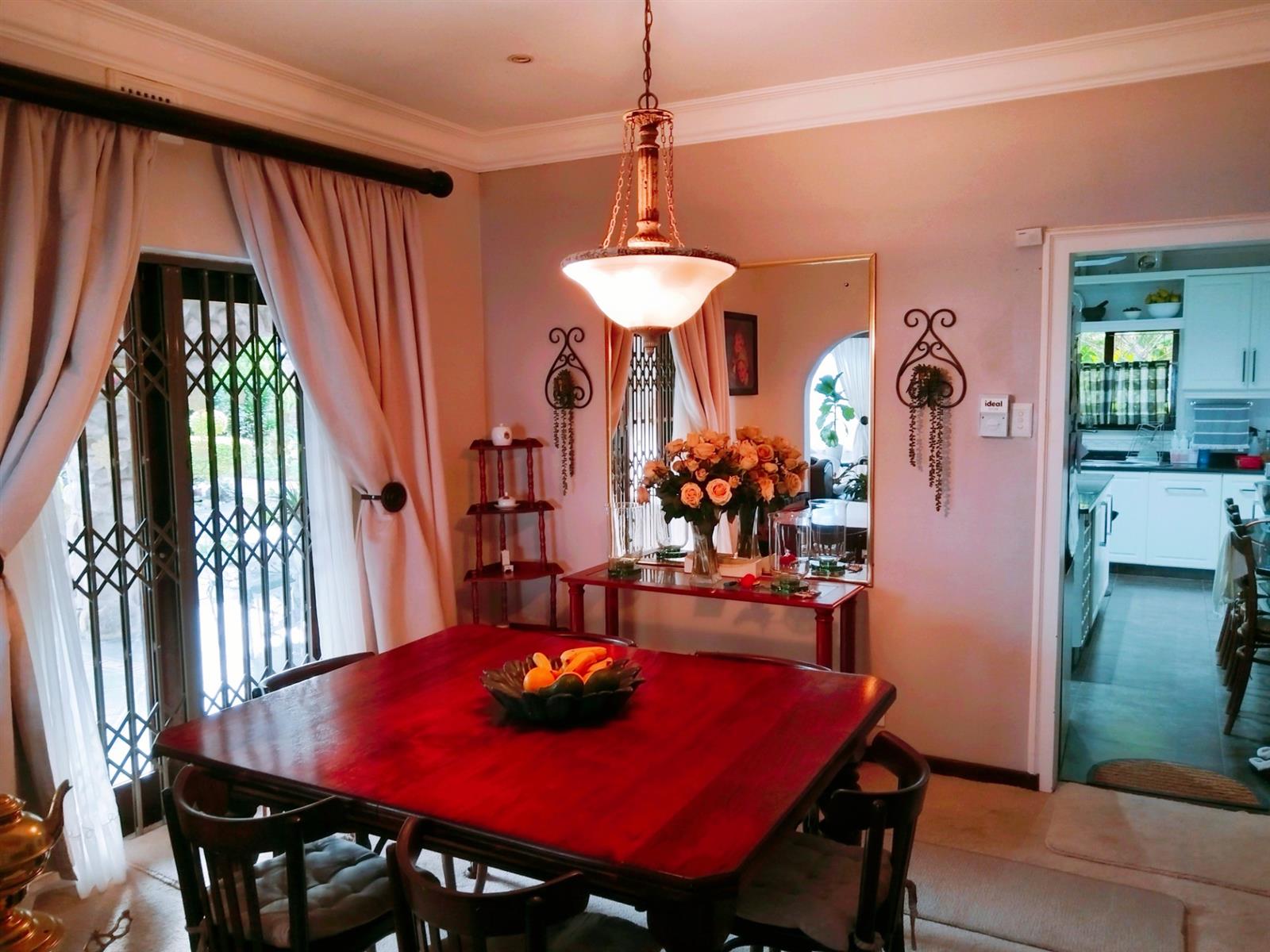 Although it’s a golden oldy you would never know with modern features and upmarket finishes like granite in the kitchen, screened ceilings with down lights and the landscaped garden. A huge family lounge with separate TV Lounge and dining room. The gourmet kitchen is spacious with a separate scullery and doors to the entertainment braai area. From the kitchen towards the lounge, you go through a fair size dining room with the Open Arch TV room to your left. 4 Spacious bedrooms with build in cupboards and ceiling fans, and two bathrooms. Additional features like 5000L back up water tanks, solar geyser and an 5kw inverter just add to the comfortable lifestyle this property offers. A magnificent garden with paved driveways leads you to a double lock up garage and a two-room flat or storage rooms with a bathroom.