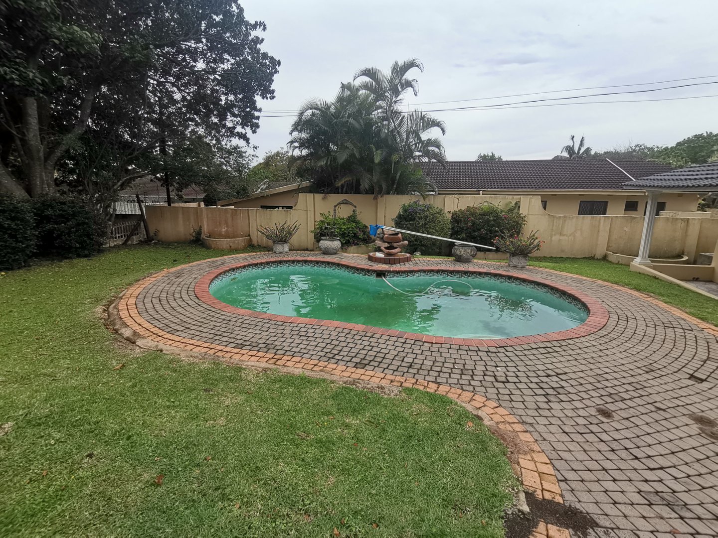 This rental property offers a four bedroom house with a two bedroom flat at the back of the double garage. The house offers two bathrooms, gorgeous kitchen and pantry. The lounge and dining room are linked with an arch and the security gate at the corridor leading to the bedrooms are a bonus. Three bedrooms are spacious and overlooks the swimming pool. The family bathroom has a bath and toilet and the bathroom in the main bedroom has a shower. The walk in cupboard in the main bedroom is a must. The pool is an added bonus, especially during summer. The double garage is spacious, with one automated door. The pool, garden service, alarm, water and electricity will be for the tenants account. There is an electric fence and it is working. Prepaid electricity is available. The flat offers a lounge / kitchen, with two bedrooms and a bathroom. The property is close to Margate Private Hospital and Hibiscus Mall. The bachelor flat at the pool is excluded from the contract. Pets allowed with permission.