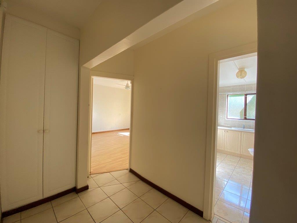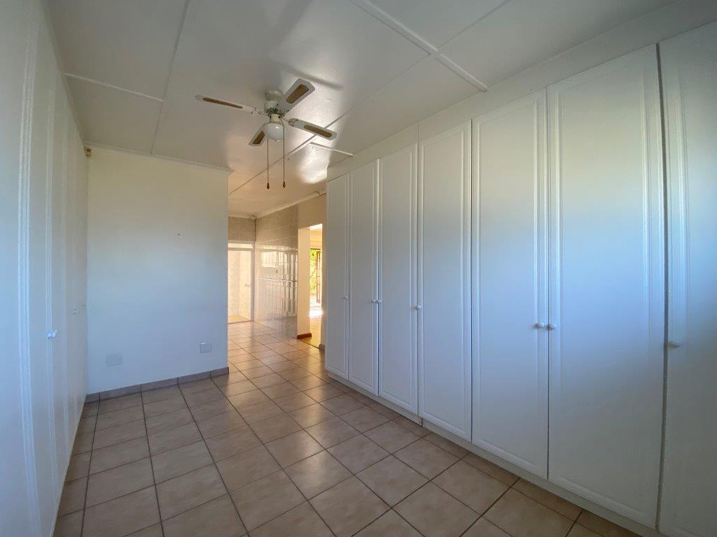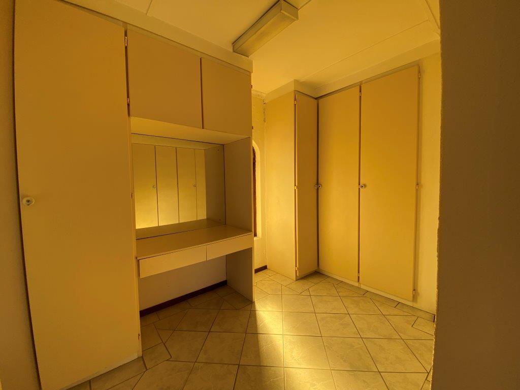 Moving on to the second bedroom, I give you the main room. Offering laminated flooring, doors leading to the patio, sitting room, walking-in closet and en-suite bathroom consisting of a double basin, toilet and shower.