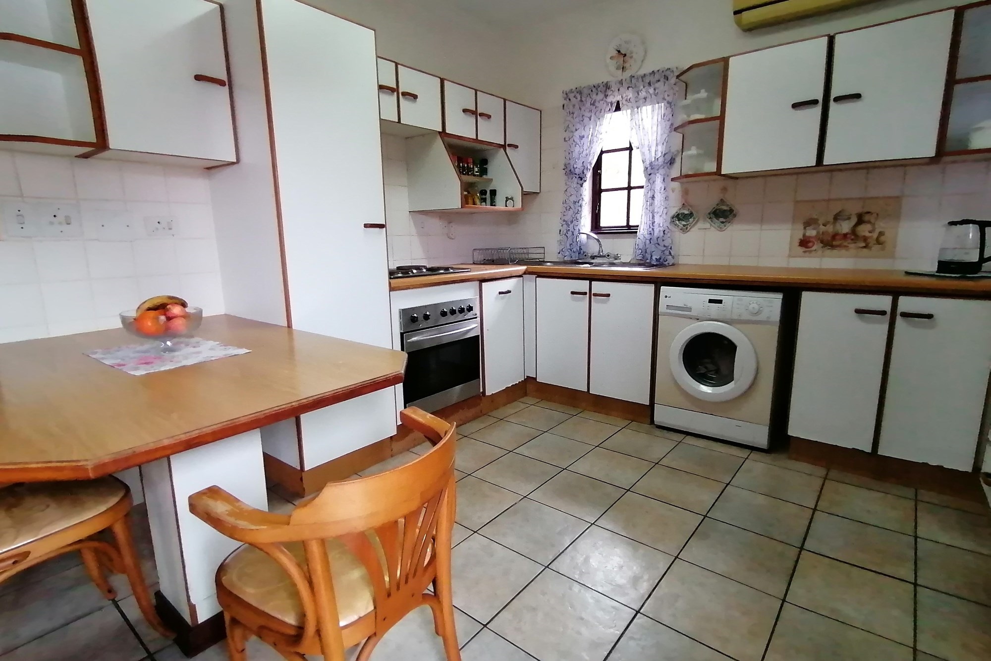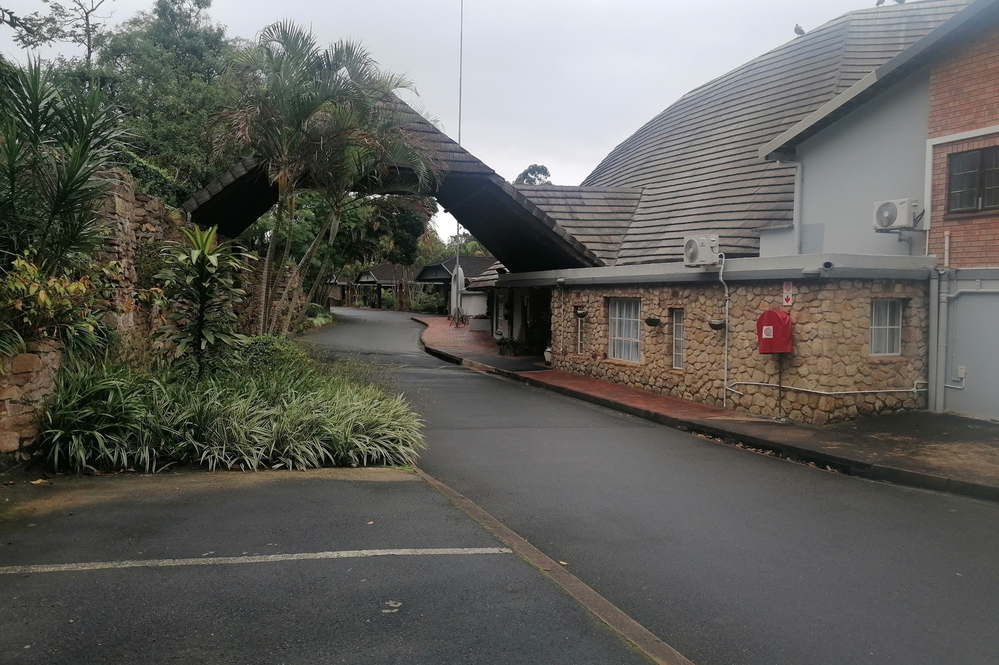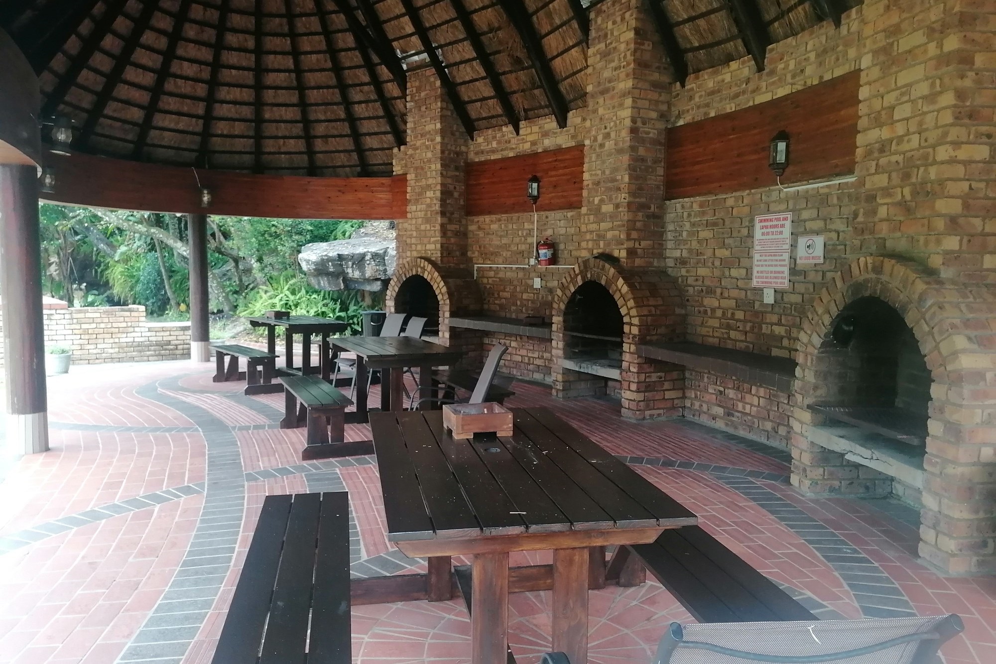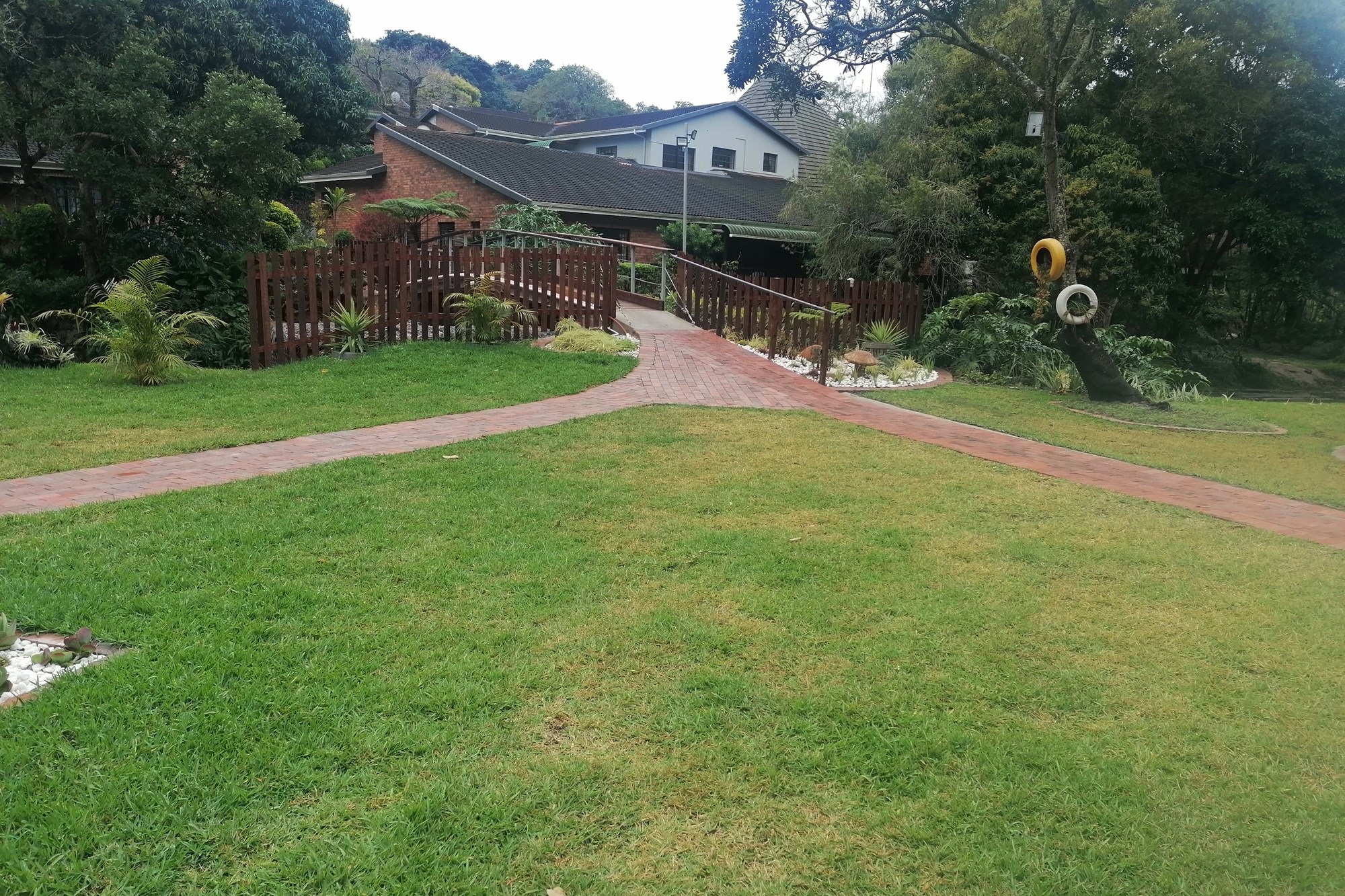 It has two parking spaces - a garage and an undercover parking - two patios, two bedrooms and two bathrooms. The open plan living space opens to both patios meaning great entertainment for a family of different generations. Spend your days in the safe entertainment area with braai facilities, a swimming pool and tennis court. Or you can just spend your me time by the waterfall on the river that flows through the back next to the entertainment area.