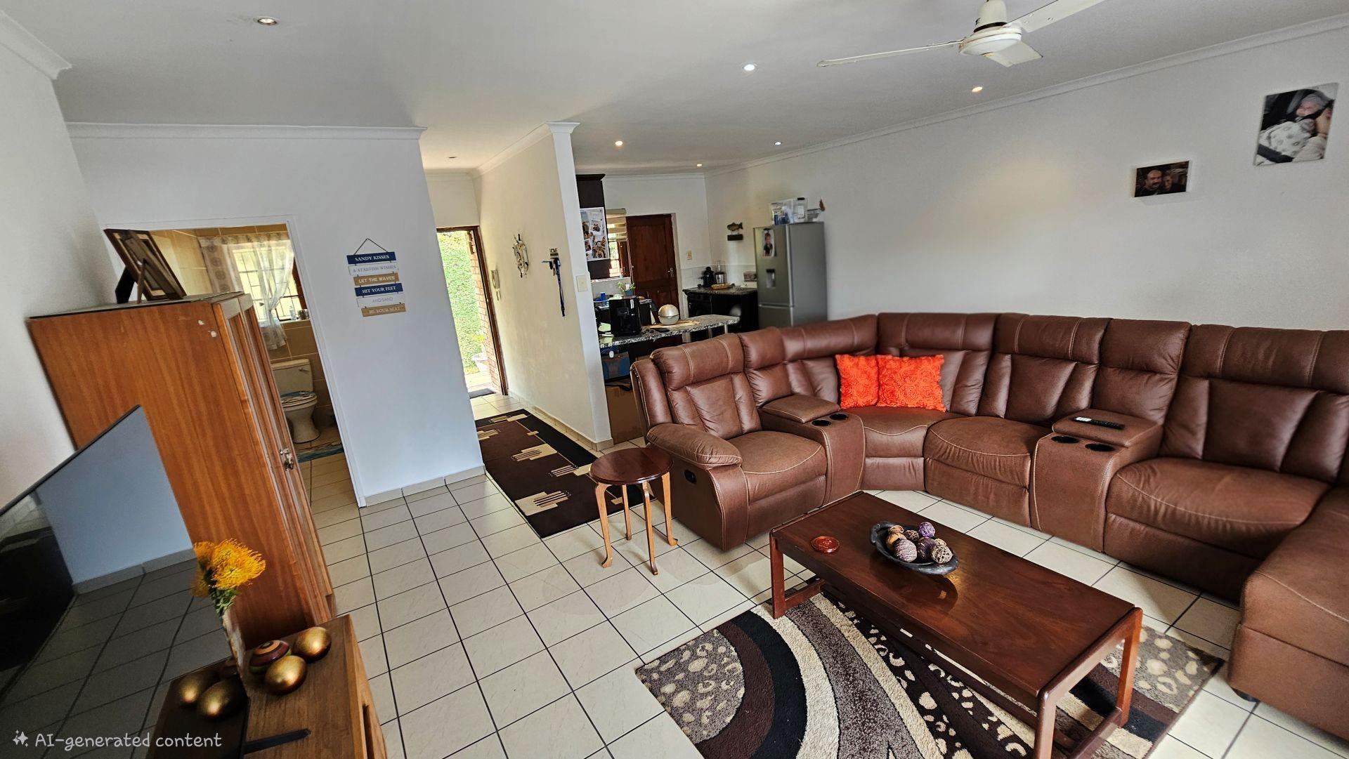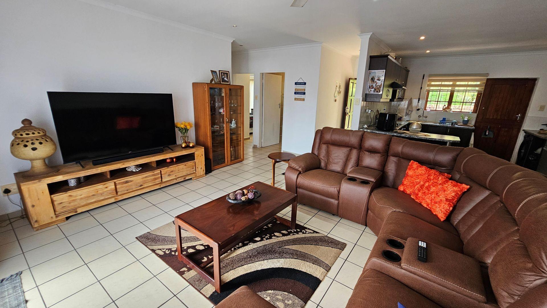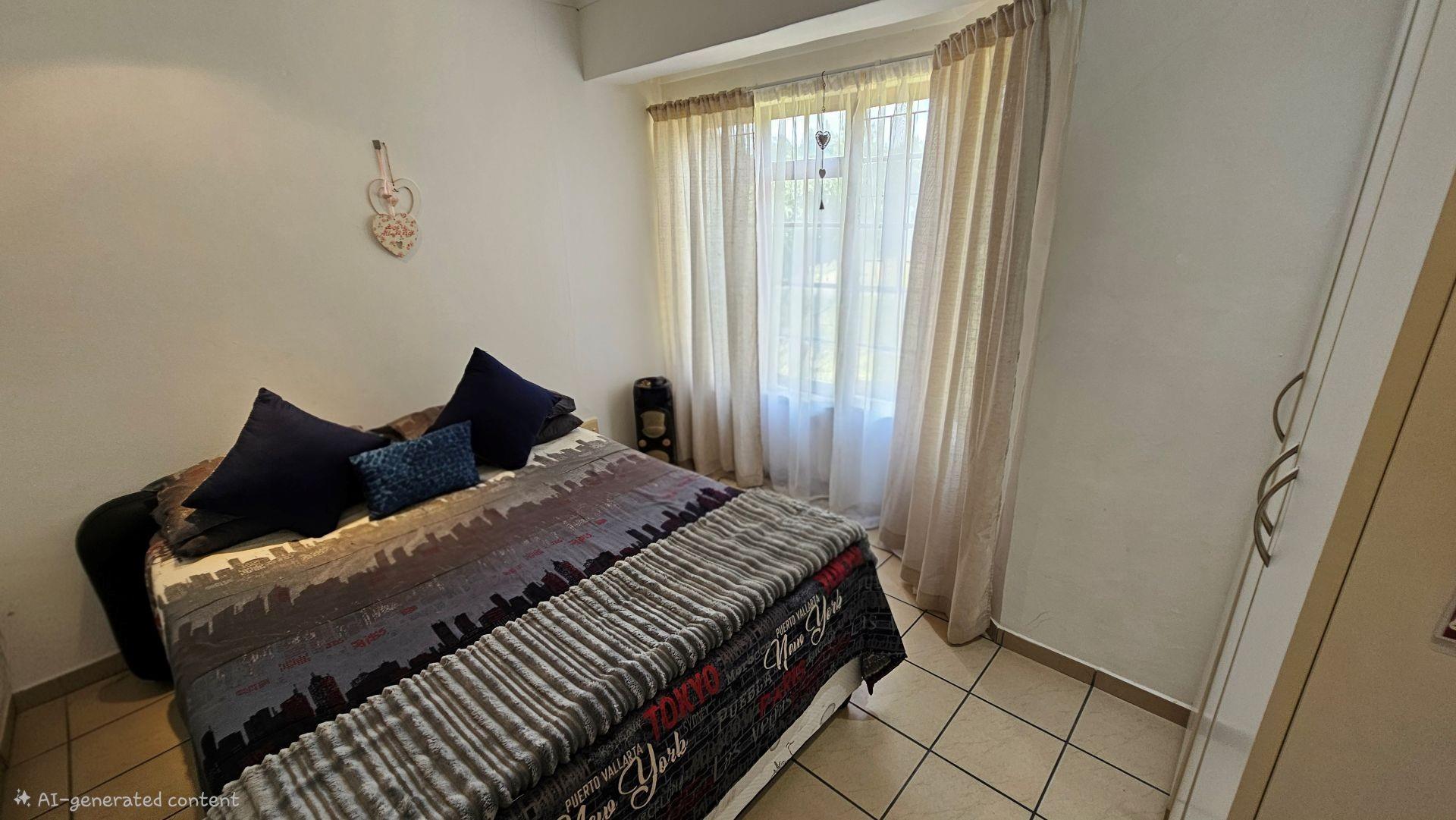 The unit has a spacious double garage, with roller door. The complex has so much to offer, in terms of 24 hour security, regular patrols, convenience in ground floor unit setups making them suitable for all ages, and has a lovely community hall set up with a library, a gym, a community hall, a bar/pool table area, communal braai area, swimming pool, large boma, jungle gyms, scenic walking area and so much more.