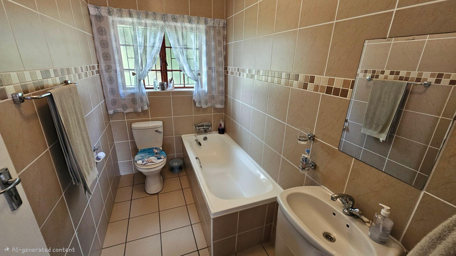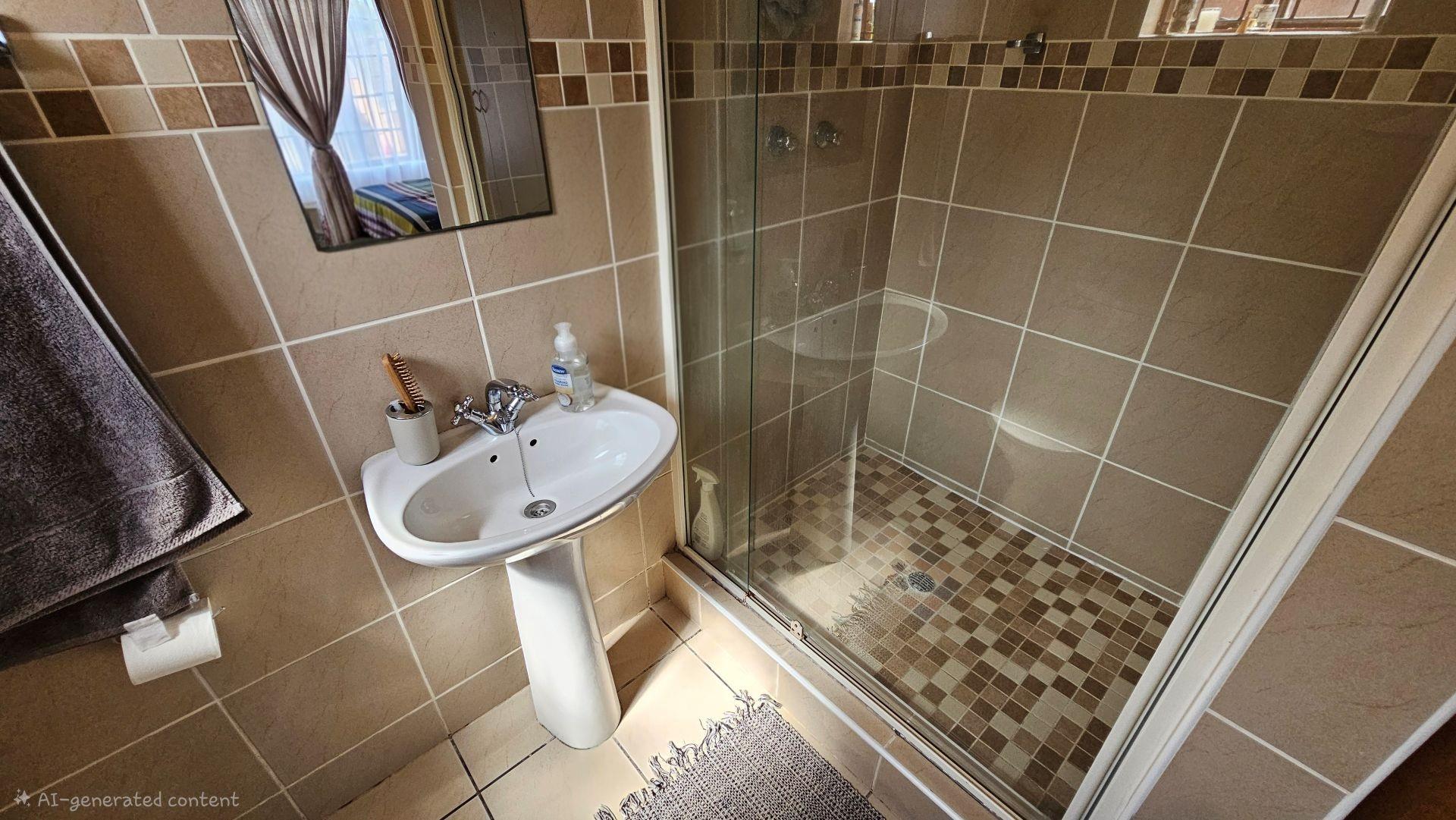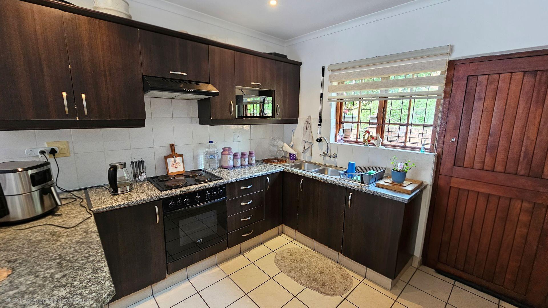 The unit has a spacious double garage, with roller door. The complex has so much to offer, in terms of 24 hour security, regular patrols, convenience in ground floor unit setups making them suitable for all ages, and has a lovely community hall set up with a library, a gym, a community hall, a bar/pool table area, communal braai area, swimming pool, large boma, jungle gyms, scenic walking area and so much more.