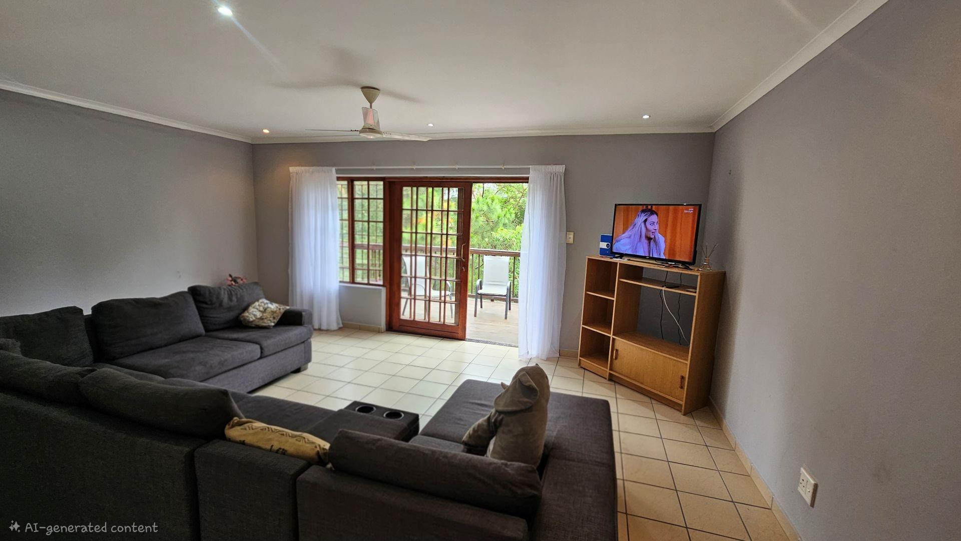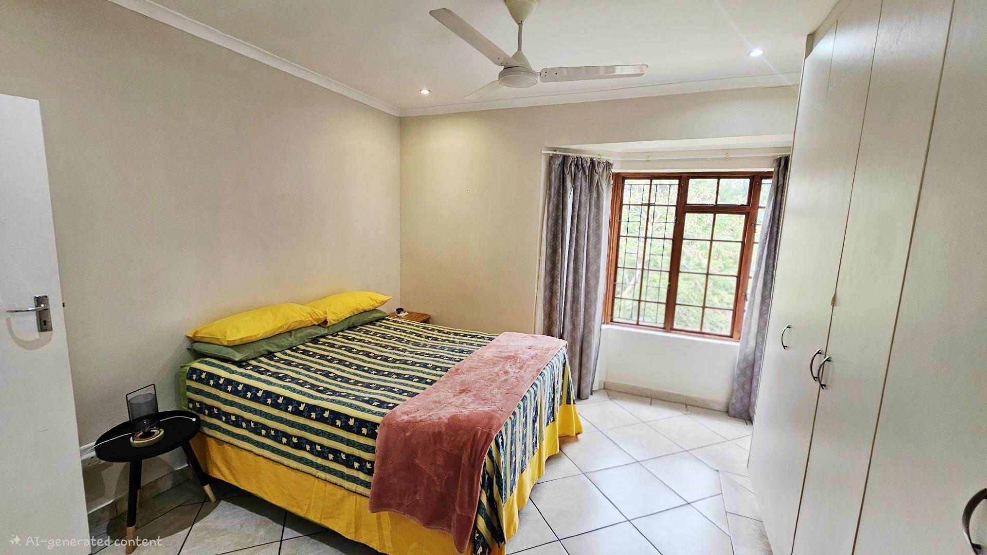 This 2 bedroom, two bathroom unit is tiled throughout, is quite private in its layout being positioned right at the end of a row of units and offers beautiful views over the lush green forestry, a lovely open plan design and flow. On entering the unit, you are greeted by a spacious open plan lounge area with enough room for a dining room.. Its large sliding doors open up onto a large wooden deck and spectacular views over the kloof and forestry. This area is well suited for entertainment purposes or al fresco dinners outdoors, while enjoying the sunset because it is super private. The unit has a corner kitchen layout, with granite counter tops, an electric oven and hob, extractor fan, double sink and breakfast nook, while a back door leads to a private wash line area.