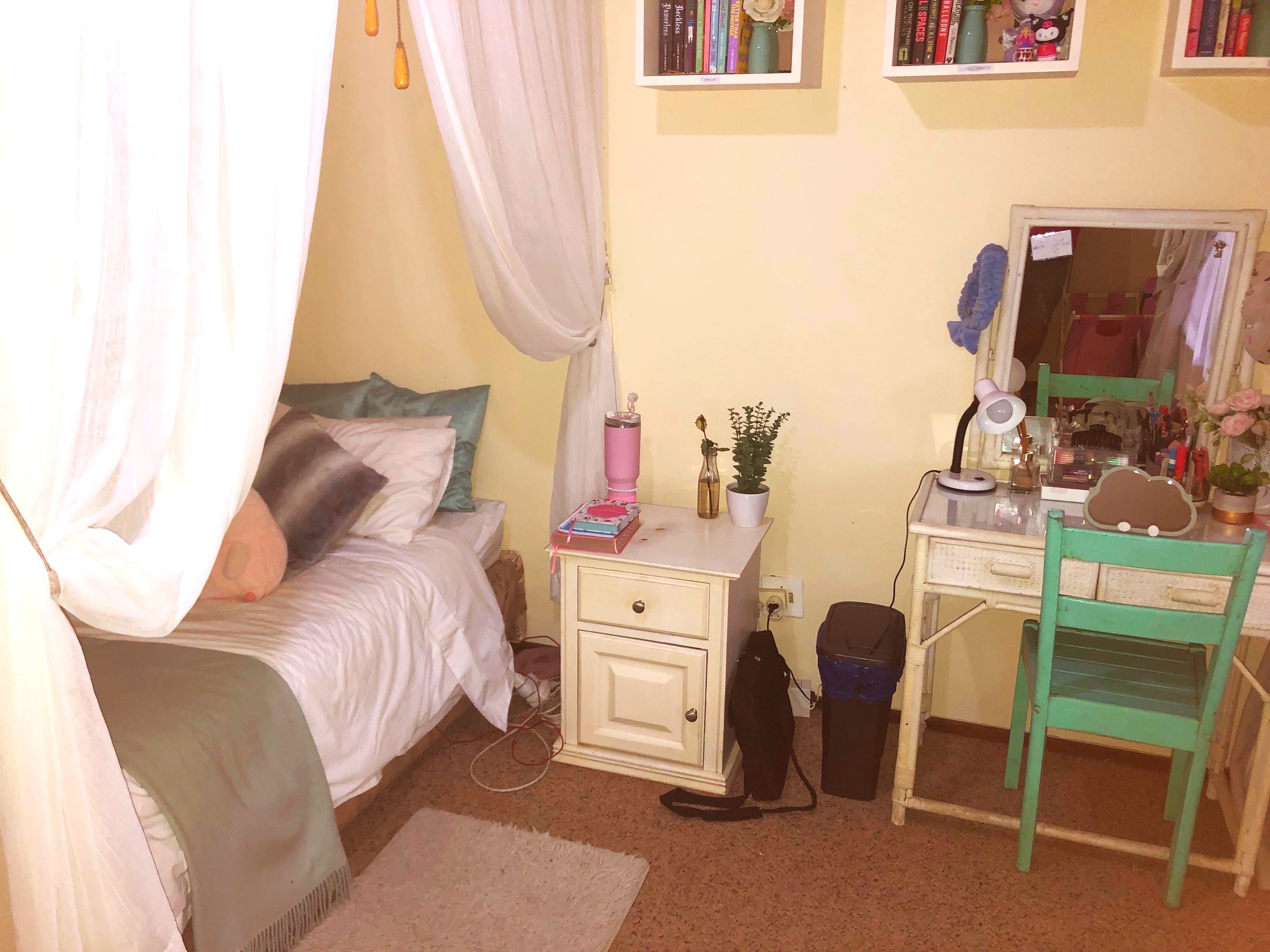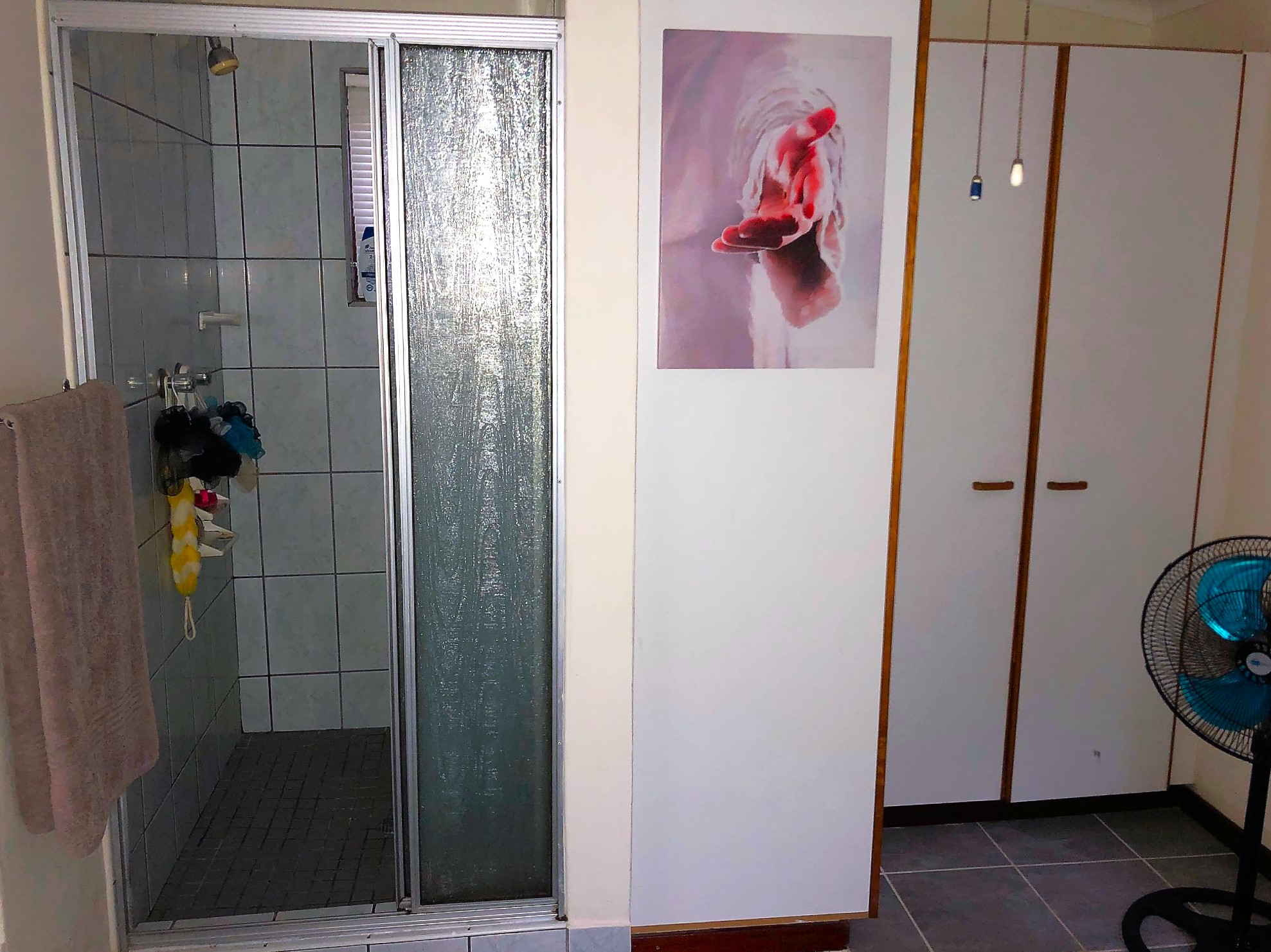 This pet-friendly property offers comfort and space, with both bedrooms featuring built-in cupboards and ceiling fans. The main bedroom is large and includes an en-suite bathroom. It also features a walk in closet area with a corner unit/desk.