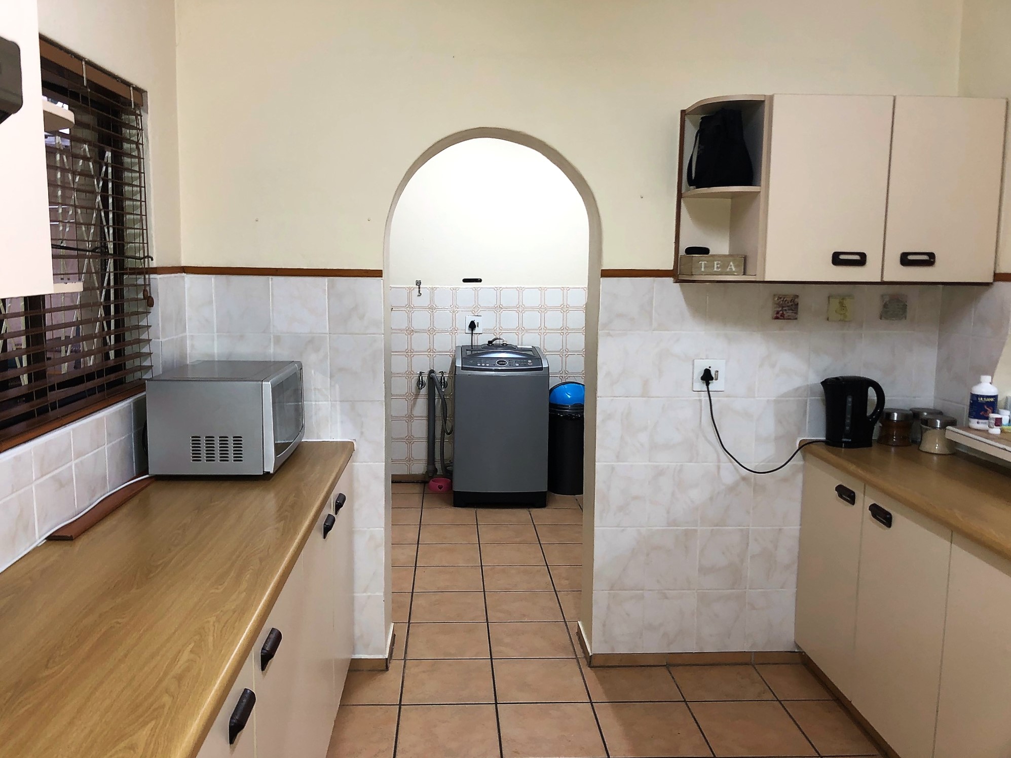 A standout feature is the large, modern kitchen with enough storage space. It is open plan with an archway to the spacious dining area. The adjoining scullery is generously sized to fit fridges, washing machines, and other utilities.