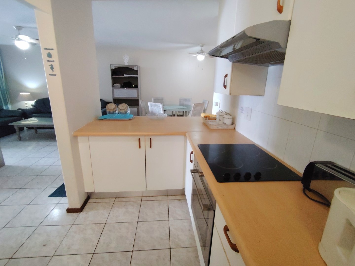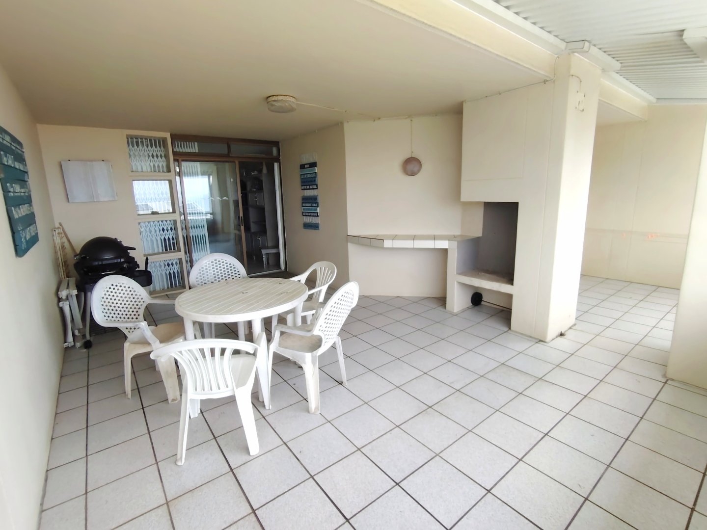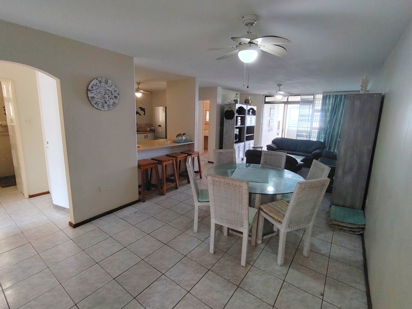 Take a walk through the property ... When entering the main gate, the single garage is to the left. With one flight of stairs, you enter the furnished, spacious unit, with the open plan dining room and lounge - that flows out to an under cover balcony with gorgeous sea views. The main bedroom has a separate balcony. Moving back to the lounge, the kitchen is to your left with an eat-nook and an electrical stove, oven and hob, the connection for the dishwasher is a bonus. From the lounge you enter the main bedroom that offers a double bed, built in cupboards, sea view, private balcony and trellidoor - the bathroom has a bath and toilet. Down the corridor, the washing machine is tucked away in the linen cupboard and the family bathroom offers a shower, bath and toilet. The second and third bedrooms share an open balcony, the second bedroom has a double bed and the third bedroom has two single beds. This unit is ideal for holiday letting or if you want to stay in the coast permanently. There is a common property swimming pool, that will keep the children busy during sunny days. The unit is walking distance to the beach and the unit is pet friendly.