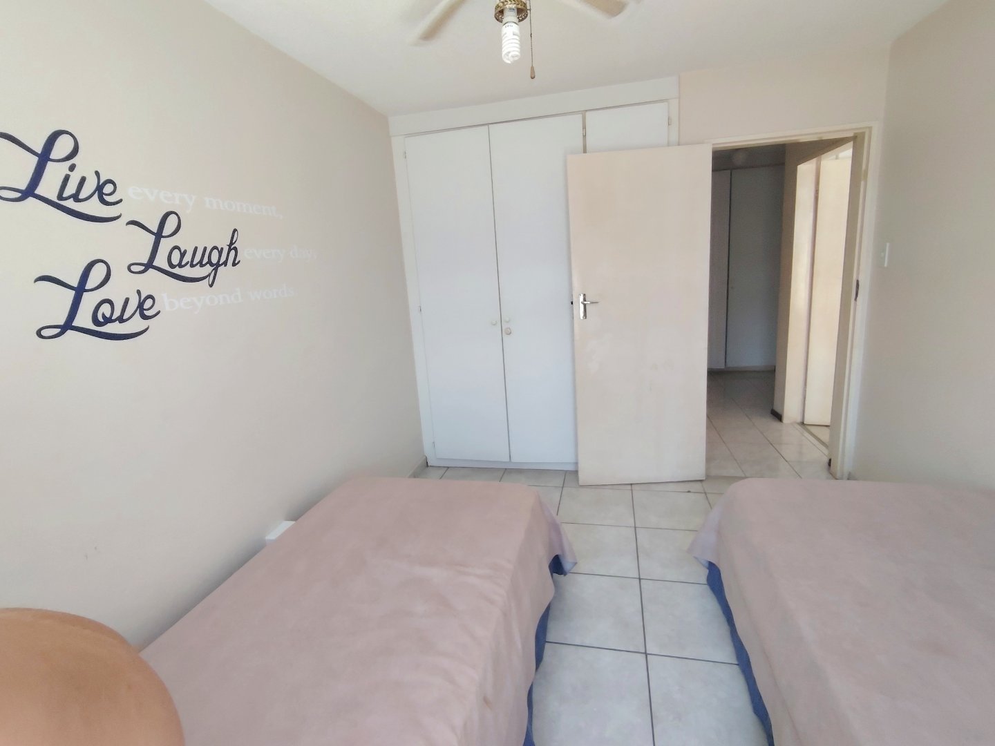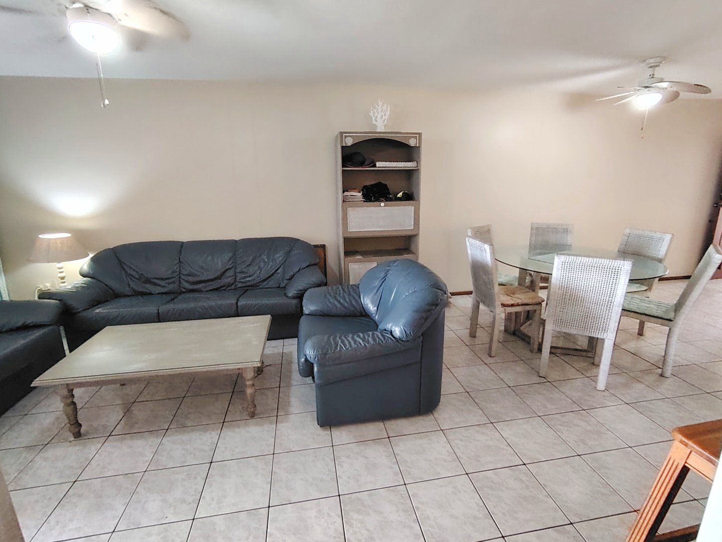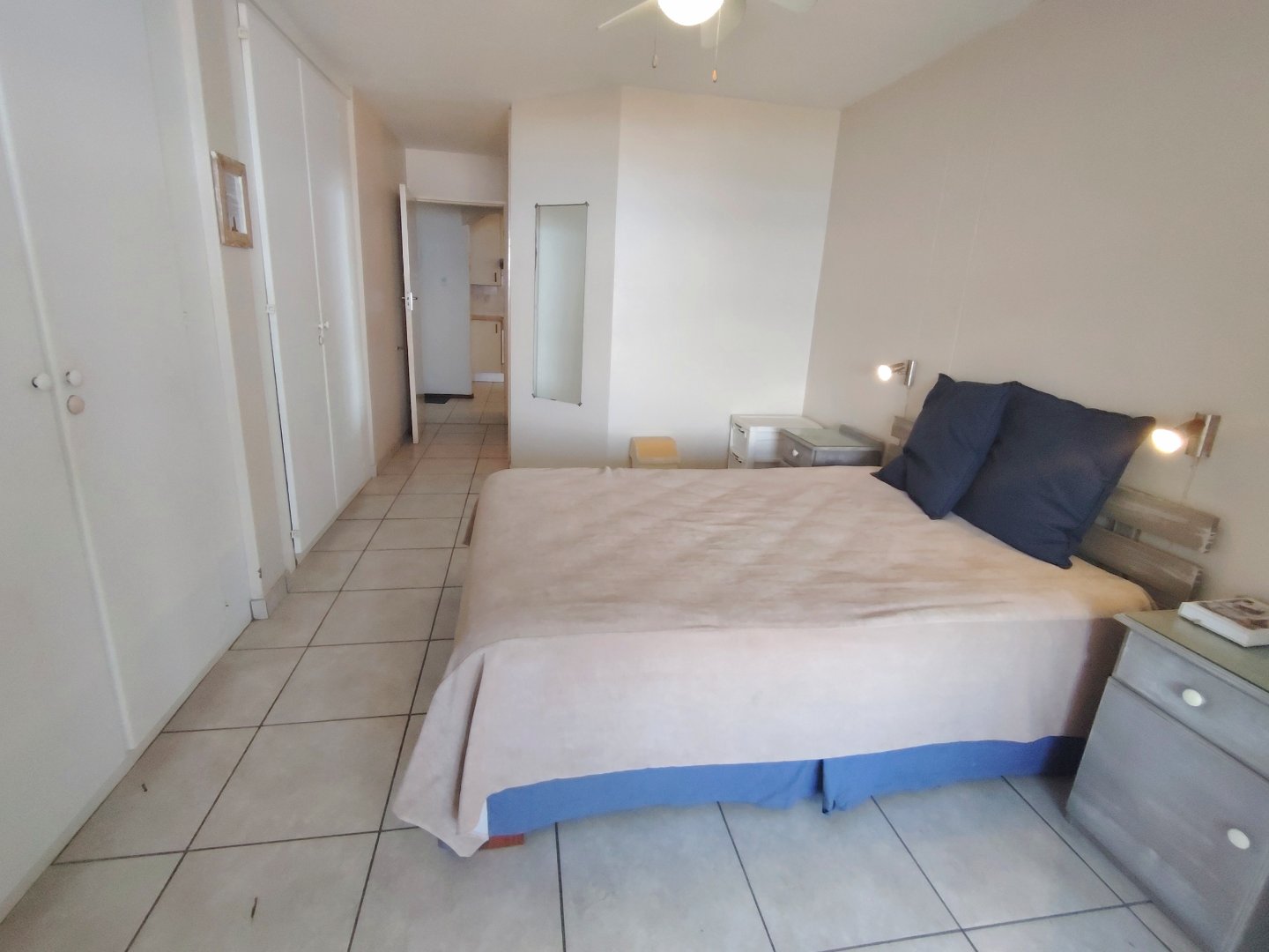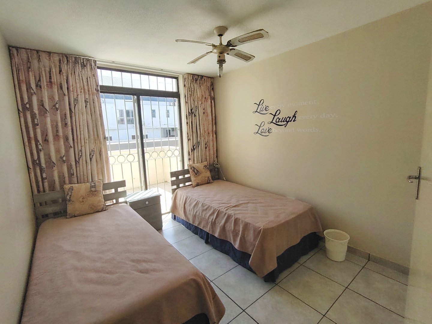 Take a walk through the property ... When entering the main gate, the single garage is to the left. With one flight of stairs, you enter the furnished, spacious unit, with the open plan dining room and lounge - that flows out to an under cover balcony with gorgeous sea views. The main bedroom has a separate balcony. Moving back to the lounge, the kitchen is to your left with an eat-nook and an electrical stove, oven and hob, the connection for the dishwasher is a bonus. From the lounge you enter the main bedroom that offers a double bed, built in cupboards, sea view, private balcony and trellidoor - the bathroom has a bath and toilet. Down the corridor, the washing machine is tucked away in the linen cupboard and the family bathroom offers a shower, bath and toilet. The second and third bedrooms share an open balcony, the second bedroom has a double bed and the third bedroom has two single beds. This unit is ideal for holiday letting or if you want to stay in the coast permanently. There is a common property swimming pool, that will keep the children busy during sunny days. The unit is walking distance to the beach and the unit is pet friendly.