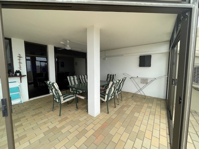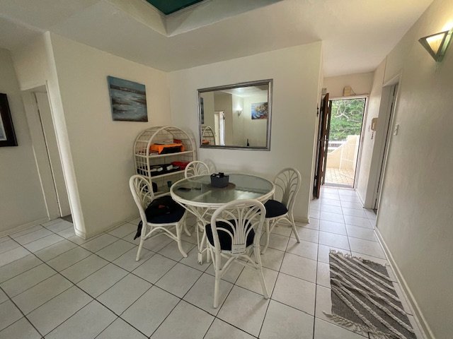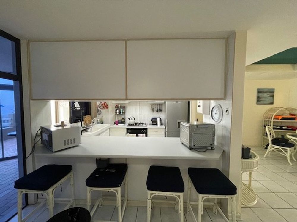 The apartment is sold fully furnished, making it move-in ready. The kitchen is cleverly designed with a serving hatch leading to the balcony—perfect for family meals or hosting a good old South African braai while enjoying the sea breeze. The unit is also fitted with an inverter to keep the essentials running during load shedding, as well as a geyser timer to help manage electricity costs more efficiently.