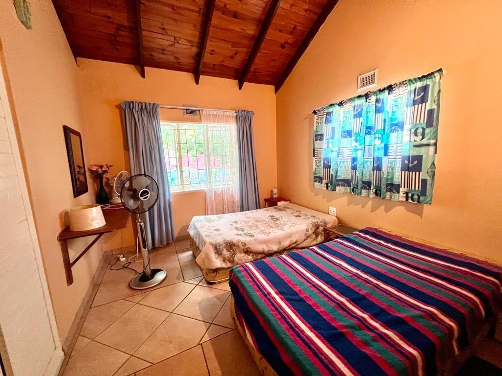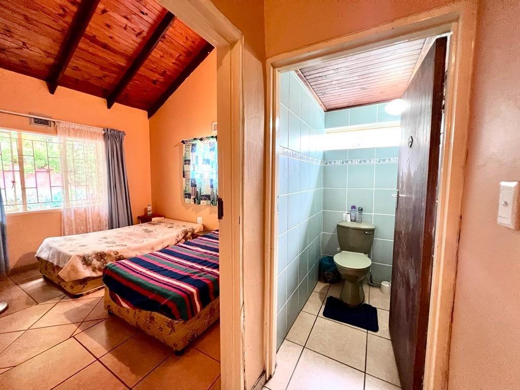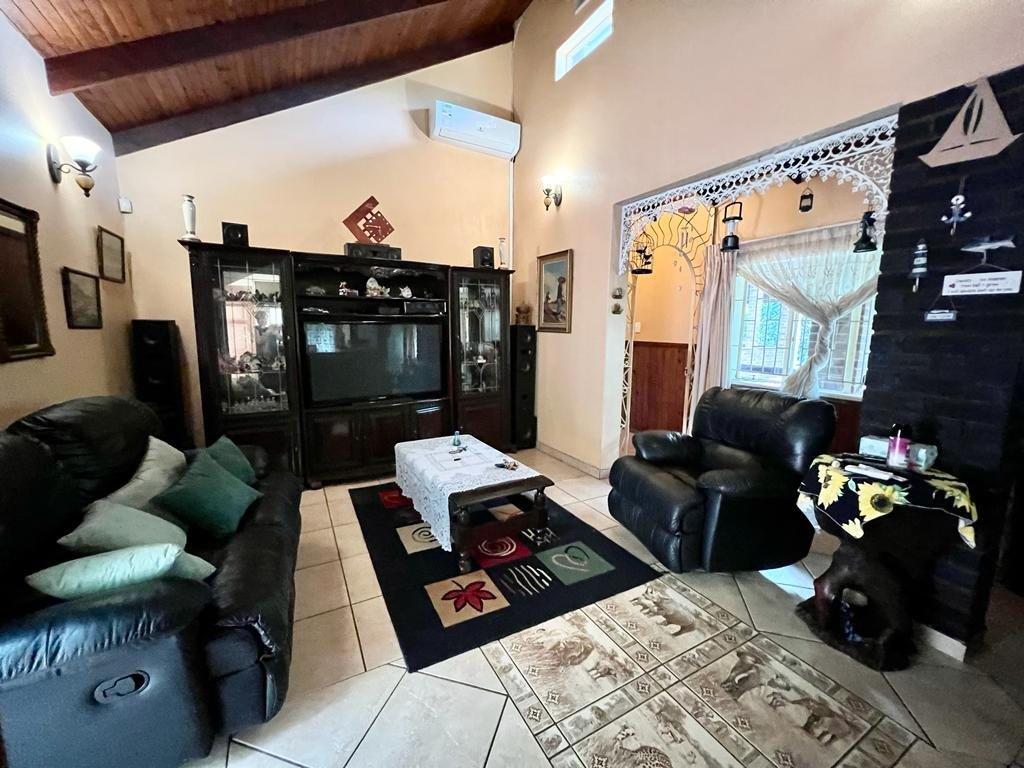 There is a double garage, property is fully fenced, 2 entrances to the property, porta pool, servants quarters, alarm system, burglar bars and security gates.