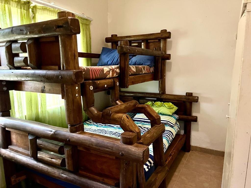The open plan dining and lounge area lead out to the braai area and porta pool.