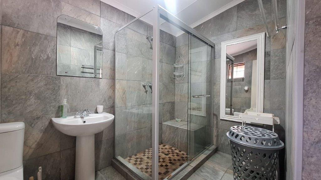This two-bedroom, two-bathroom unit offers both comfort and privacy. Inside, the open-plan lounge, dining area, and kitchen create a modern and inviting atmosphere. Both bedrooms feature built-in cupboards and include en-suite bathrooms, each consisting of a shower, basin, and toilet, all designed with a sleek, modern finish.