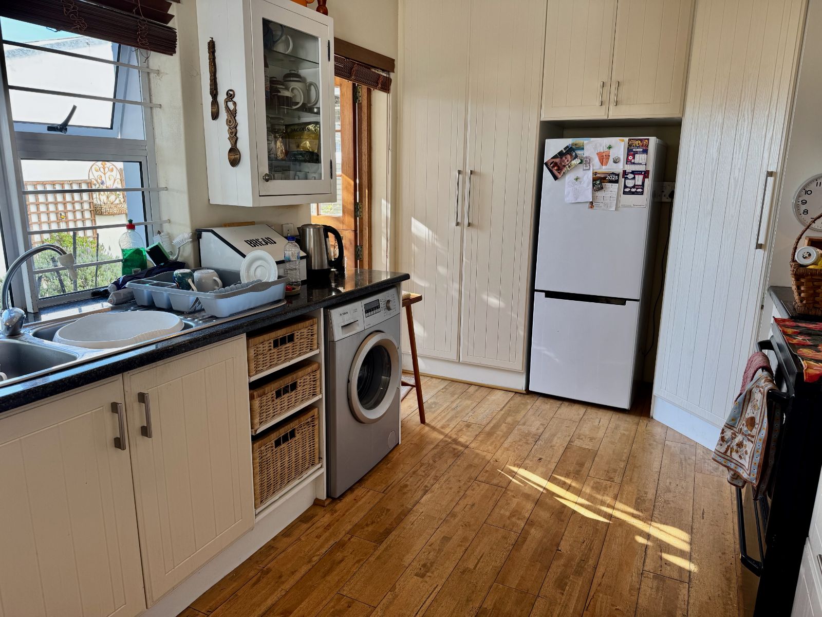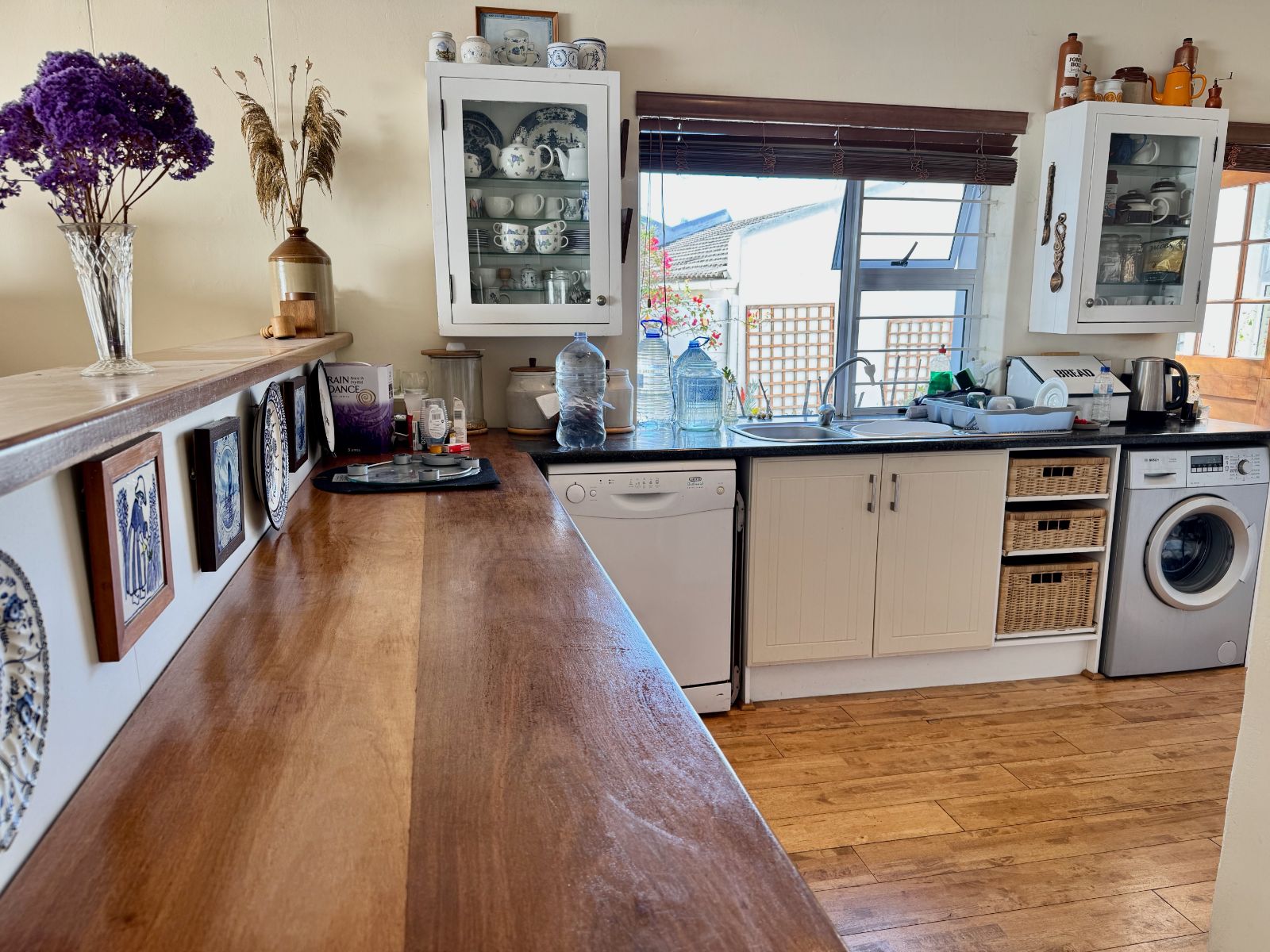Entertaining will be an absolute pleasure in this open-plan kitchen - granite and wooden counter tops, a freestanding stove and extractor, ample cupboard space and it is plumbed for a dishwasher and washing machine.