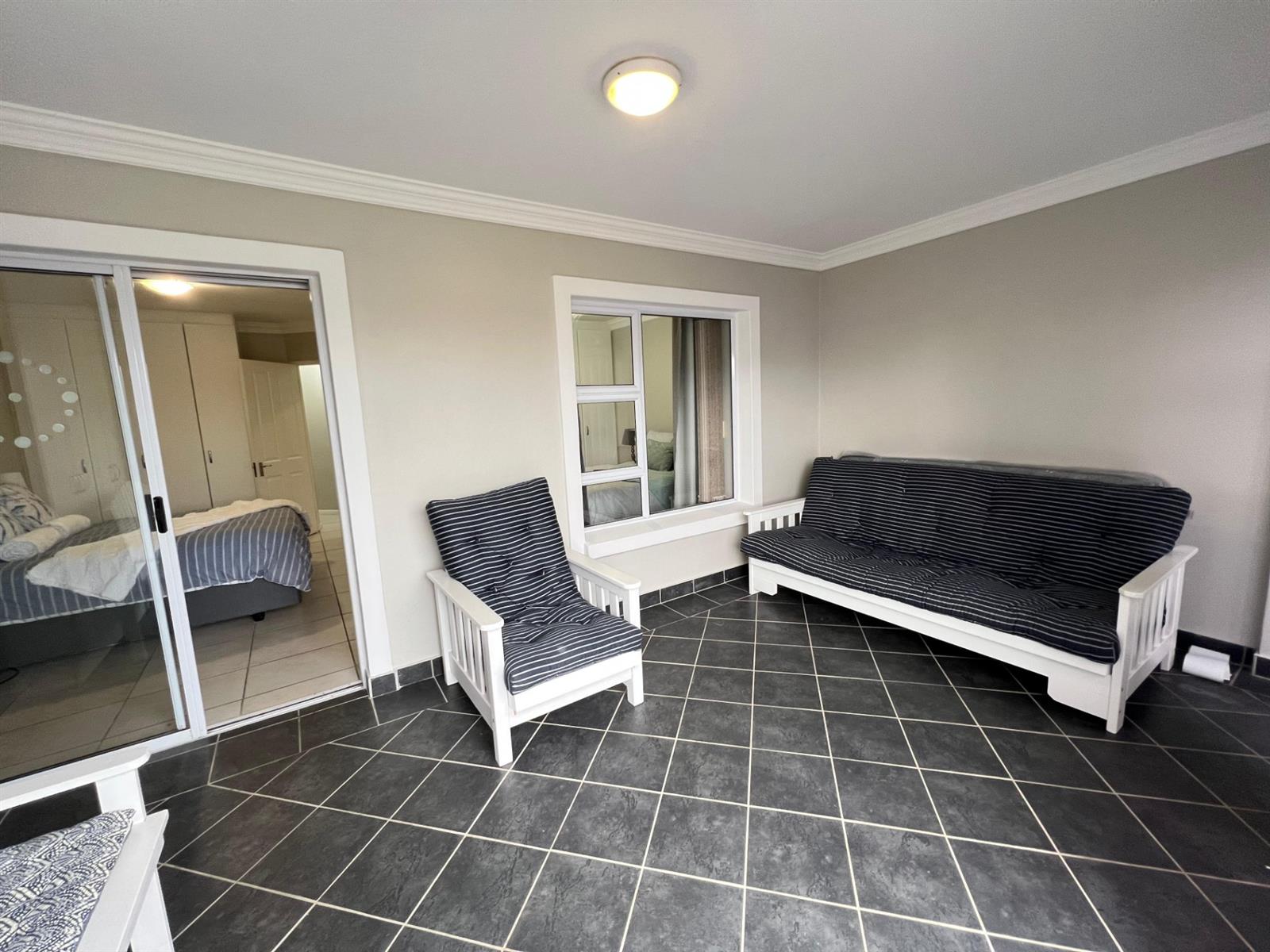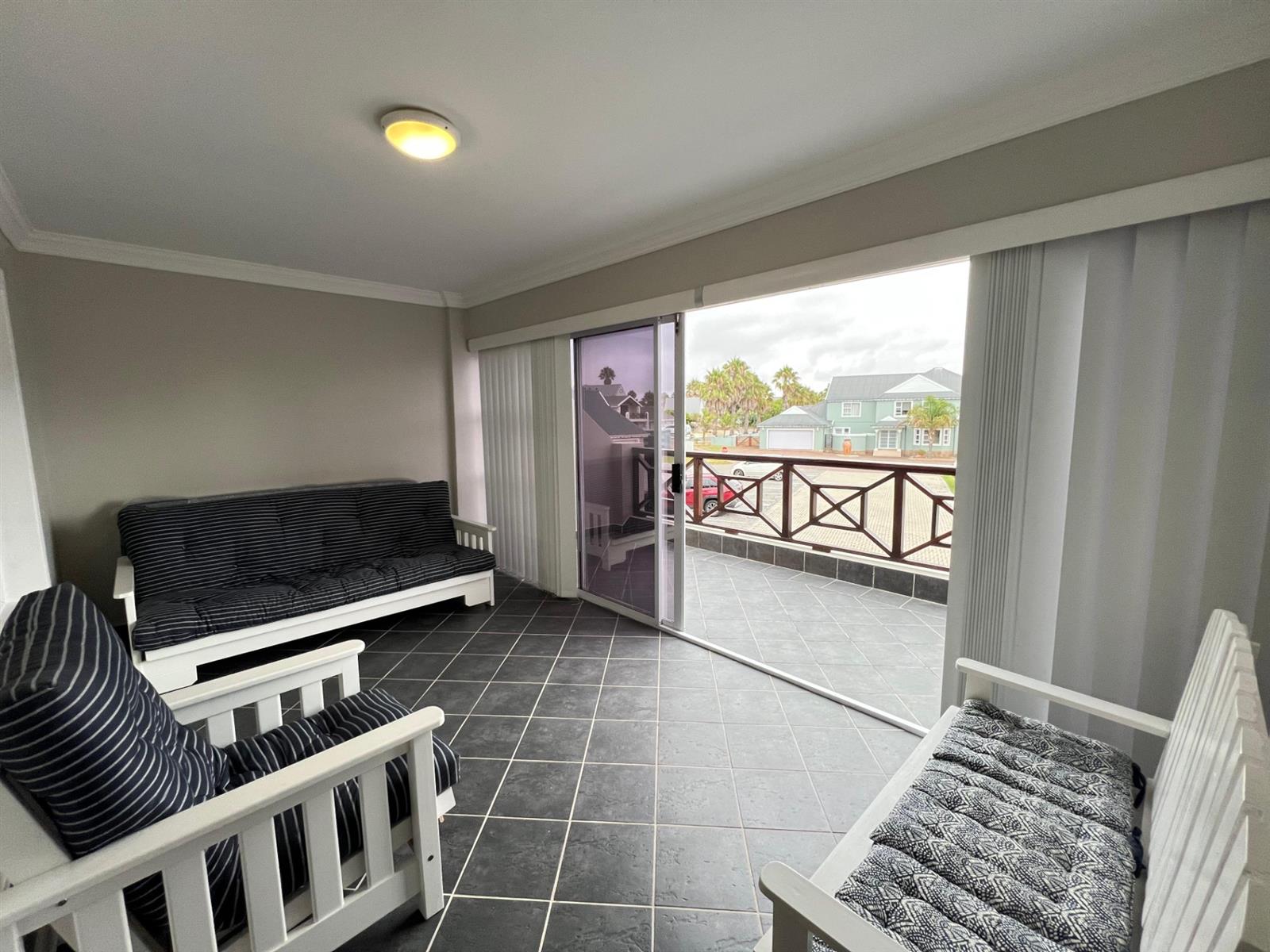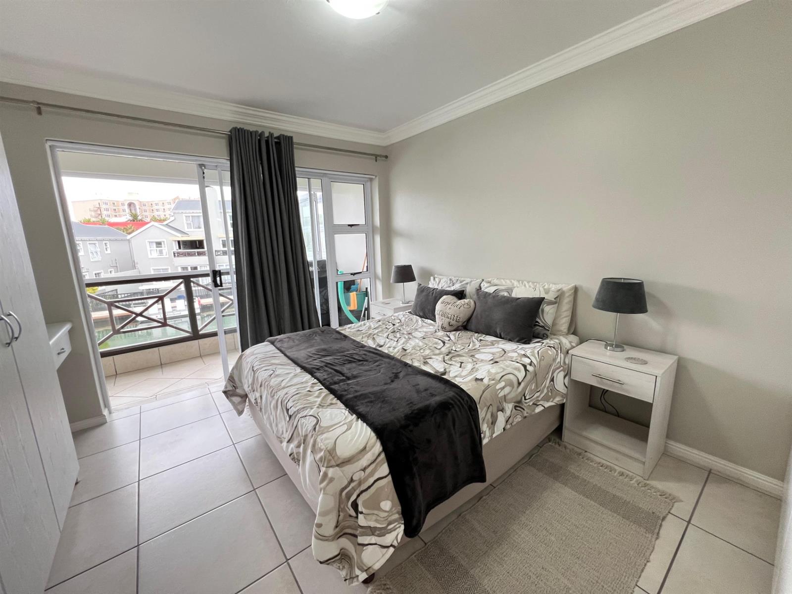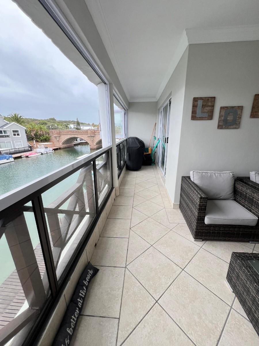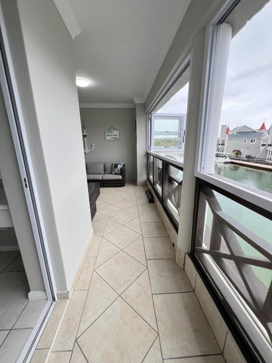 Spacious balcony with stacker windows and gorgeous canal views – perfect for morning coffees or sunset sundowners