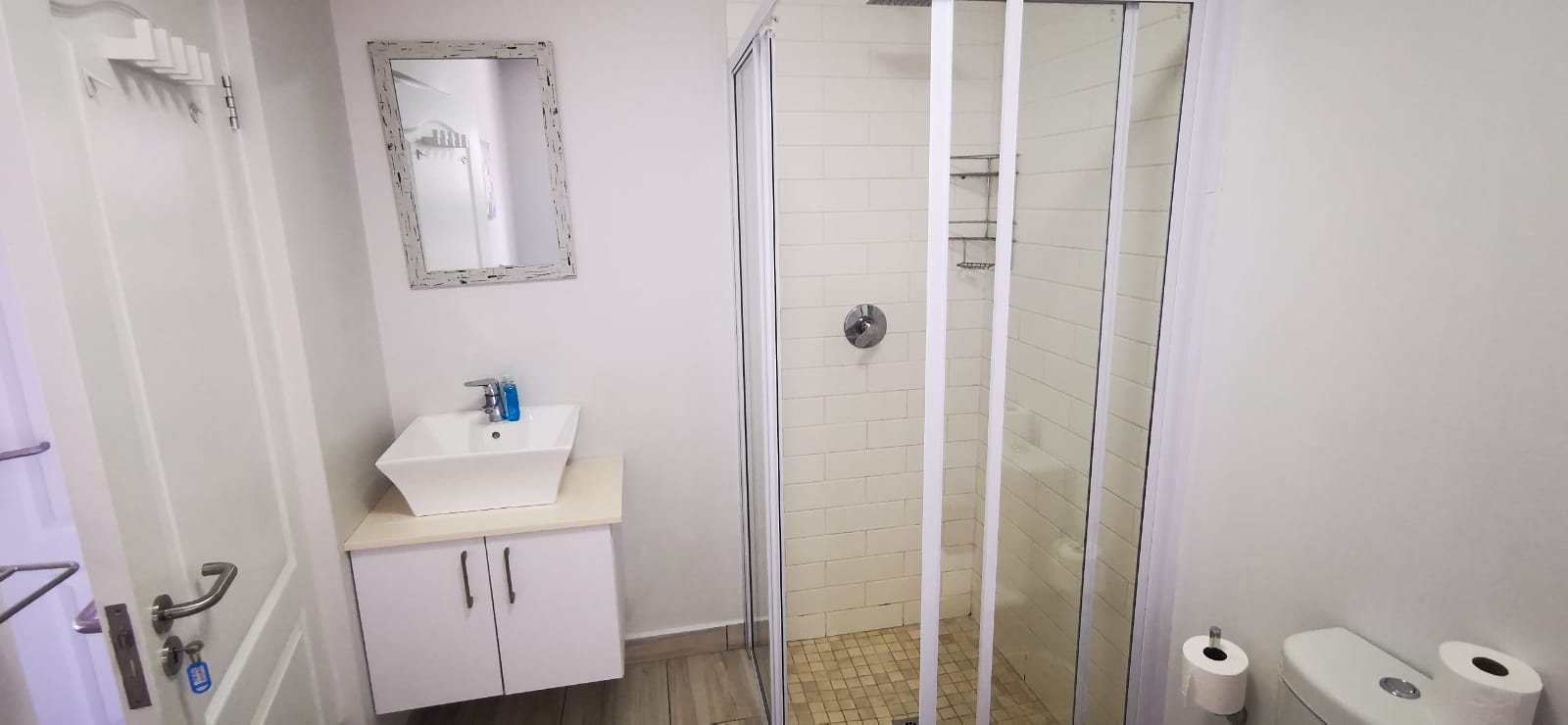 Bathroom 2: Tiled Floors, Shower, Toilet and Basin