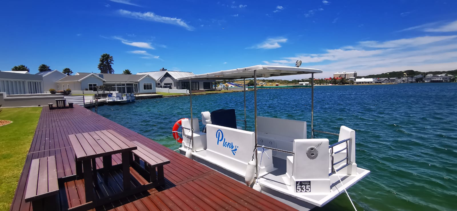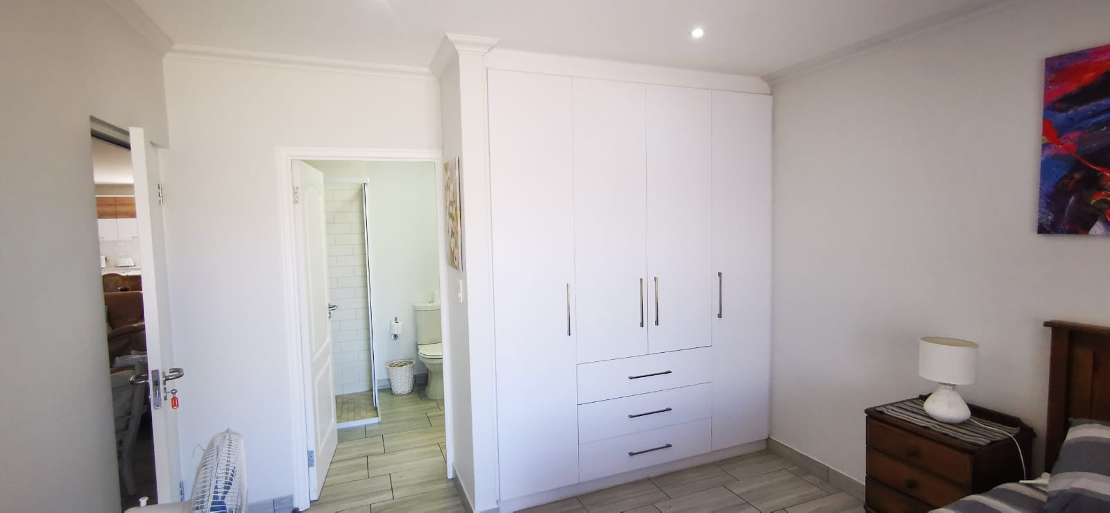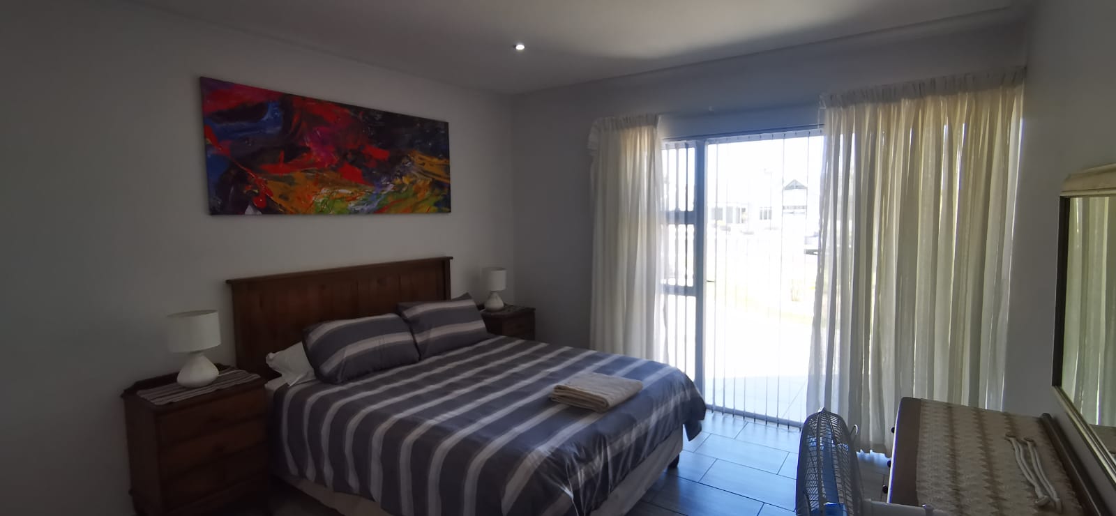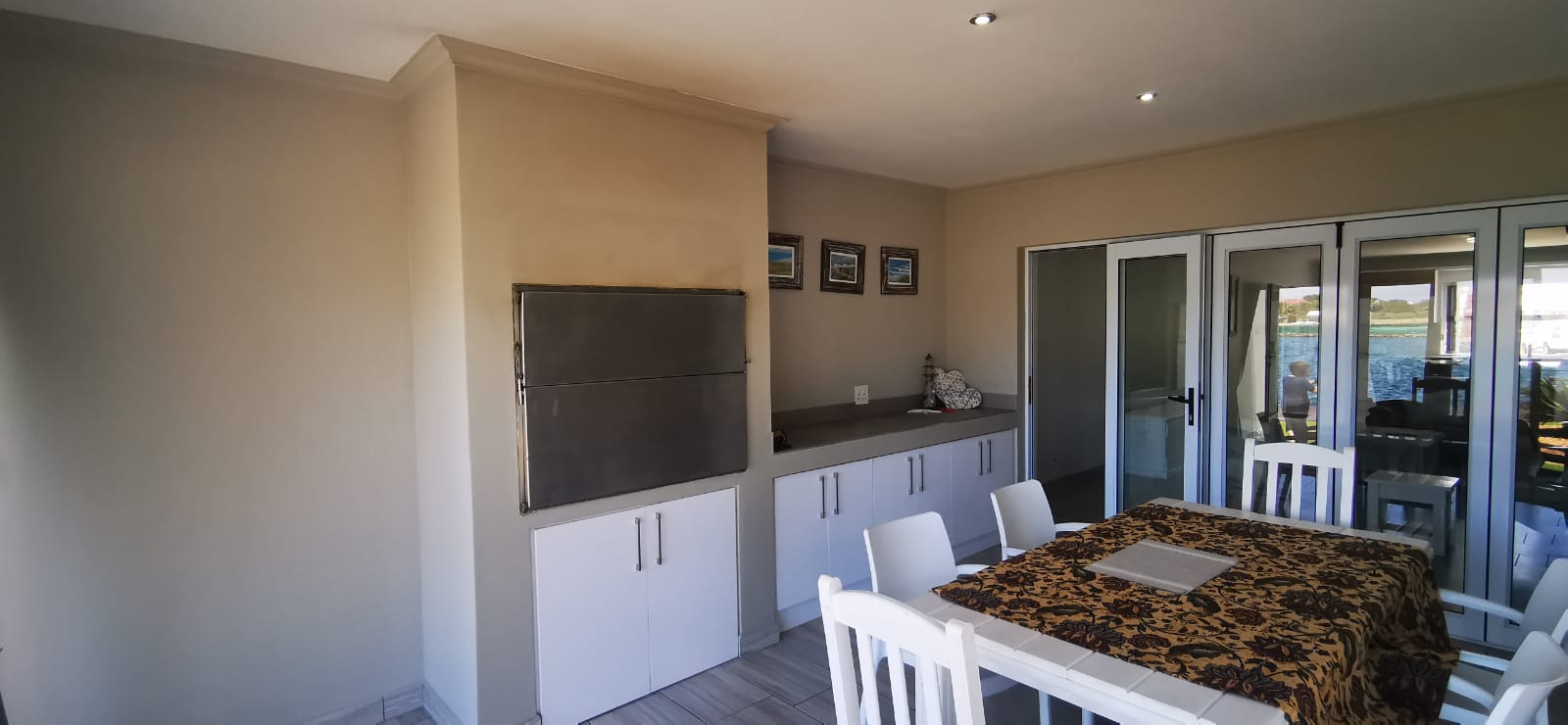 The lounge opens through folding doors into a spacious enclosed braai room overlooking the tranquil canal. Another set of folding doors creates a harmonious connection to the garden, allowing you to enjoy an effortless indoor-outdoor lifestyle. From here, step out onto the patio or wander to the water’s edge, where swimming, paddling, or simply soaking in the peaceful waterfront setting becomes part of your everyday routine. The main bedroom also enjoys direct garden and waterfront views, adding to the sense of serenity throughout the home.