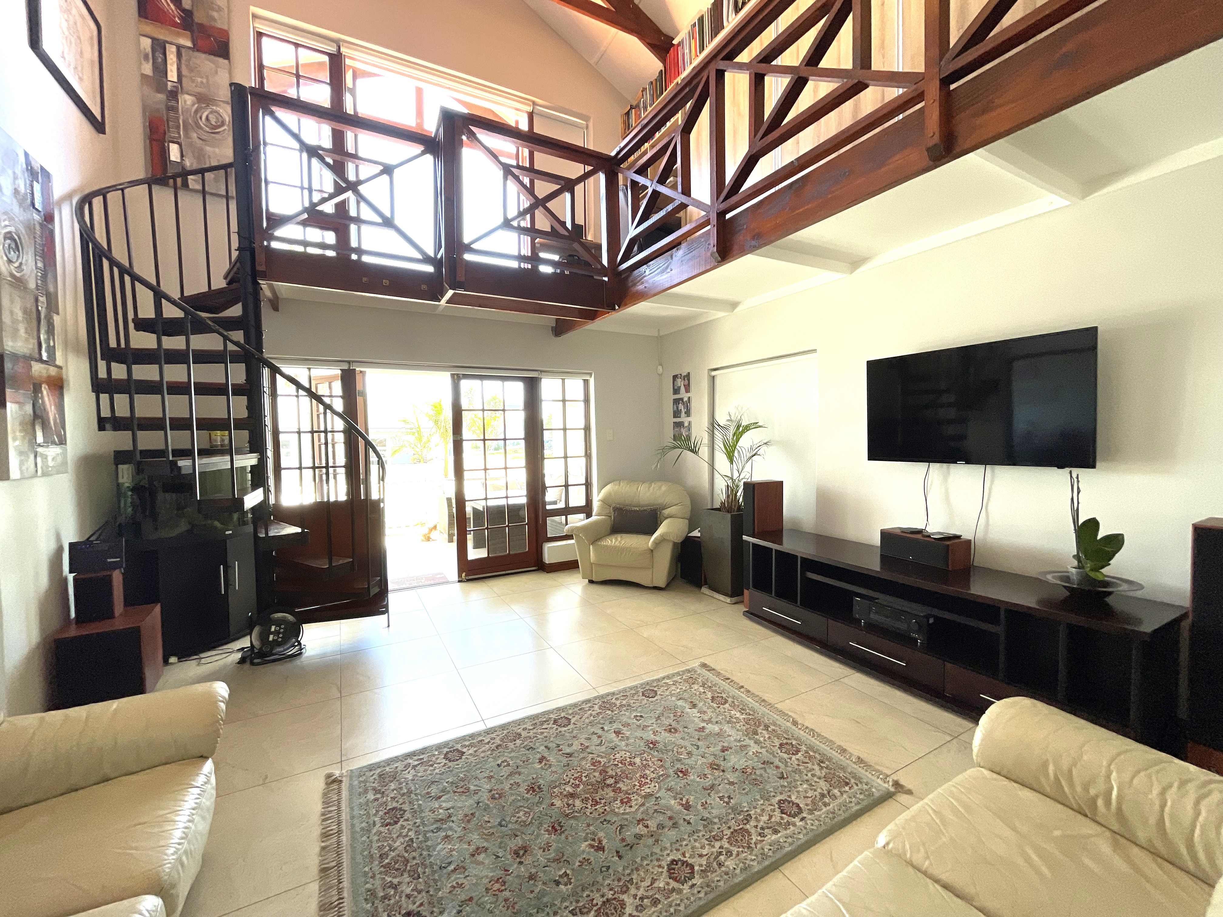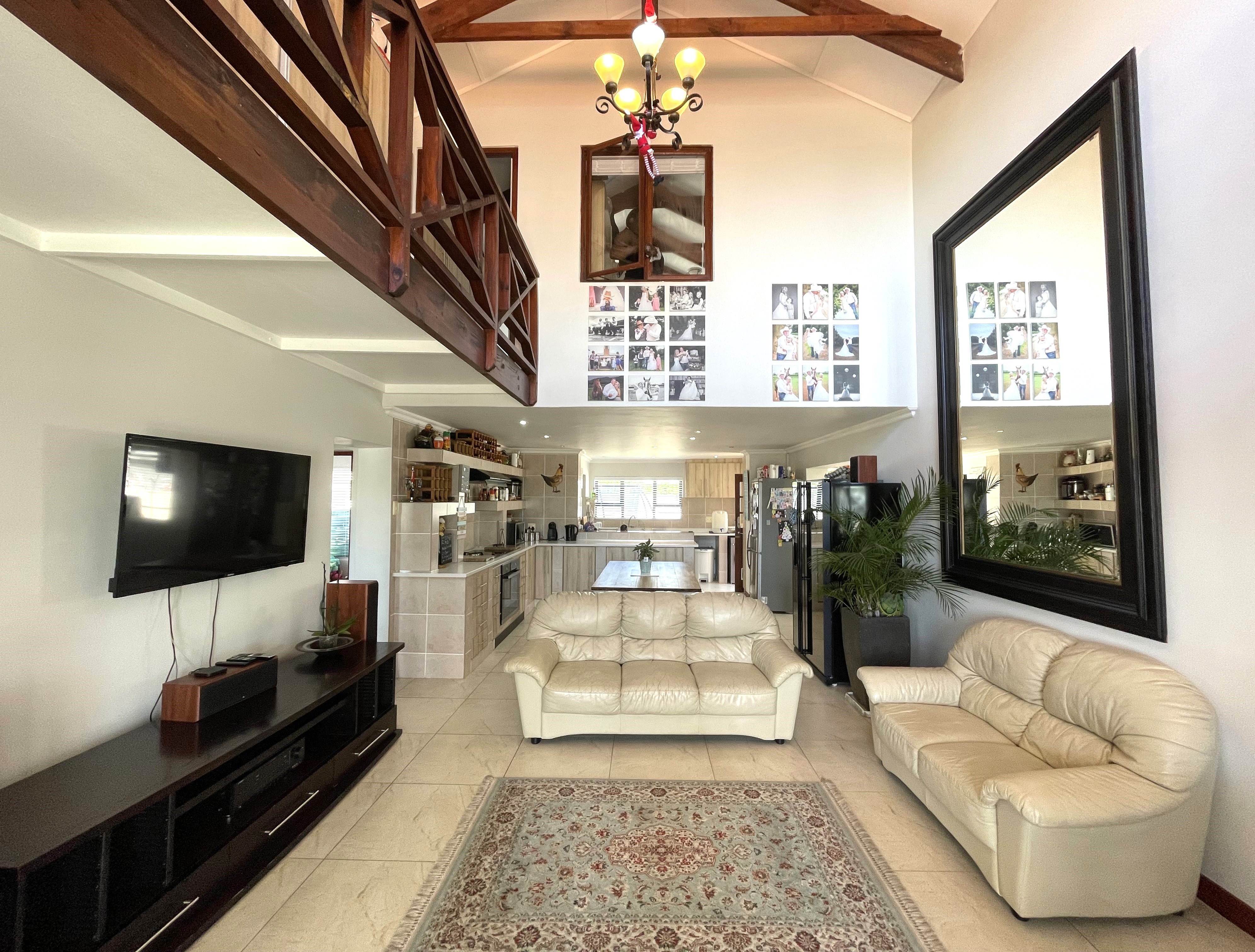This family home is equipped with modern conveniences. The property also features two geysers, a double garage, and a durable chromadek roof. Situated in the secure Marina Martinique, the residence not only offers tranquility but also provides exclusive access to over 6 kilometers of canal for recreational activities. In essence, this property combines modern comforts with a delightful environment, creating a haven for a family seeking both style and functionality.