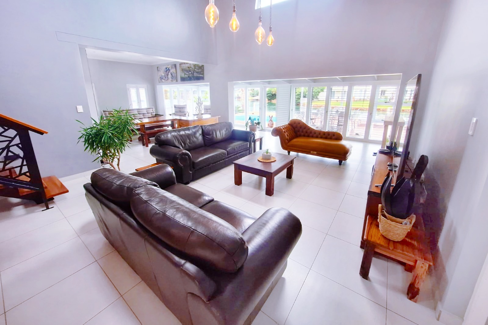 A striking double-wide front door welcomes you into expansive open-plan living areas, where the formal dining room, lounge, and stylish indoor braai room integrate seamlessly. Large openings lead out to a beautifully decked patio overlooking the tranquil canals, creating the ideal setting for entertaining or unwinding in a peaceful waterside environment.