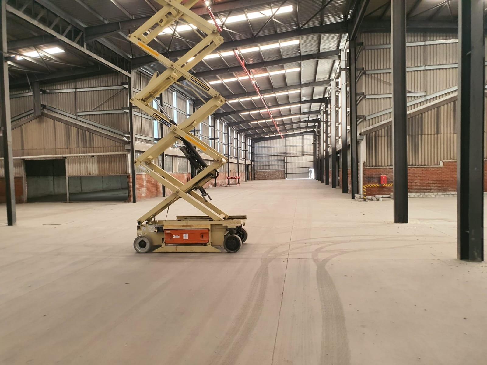 The warehouse is equipped with four roller shutter doors offering convenient drive-through access, concrete flooring for durability, and exceptional roof height that enhances operational efficiency. Ample natural lighting and multiple storage sections allow for streamlined workflow and organization.
