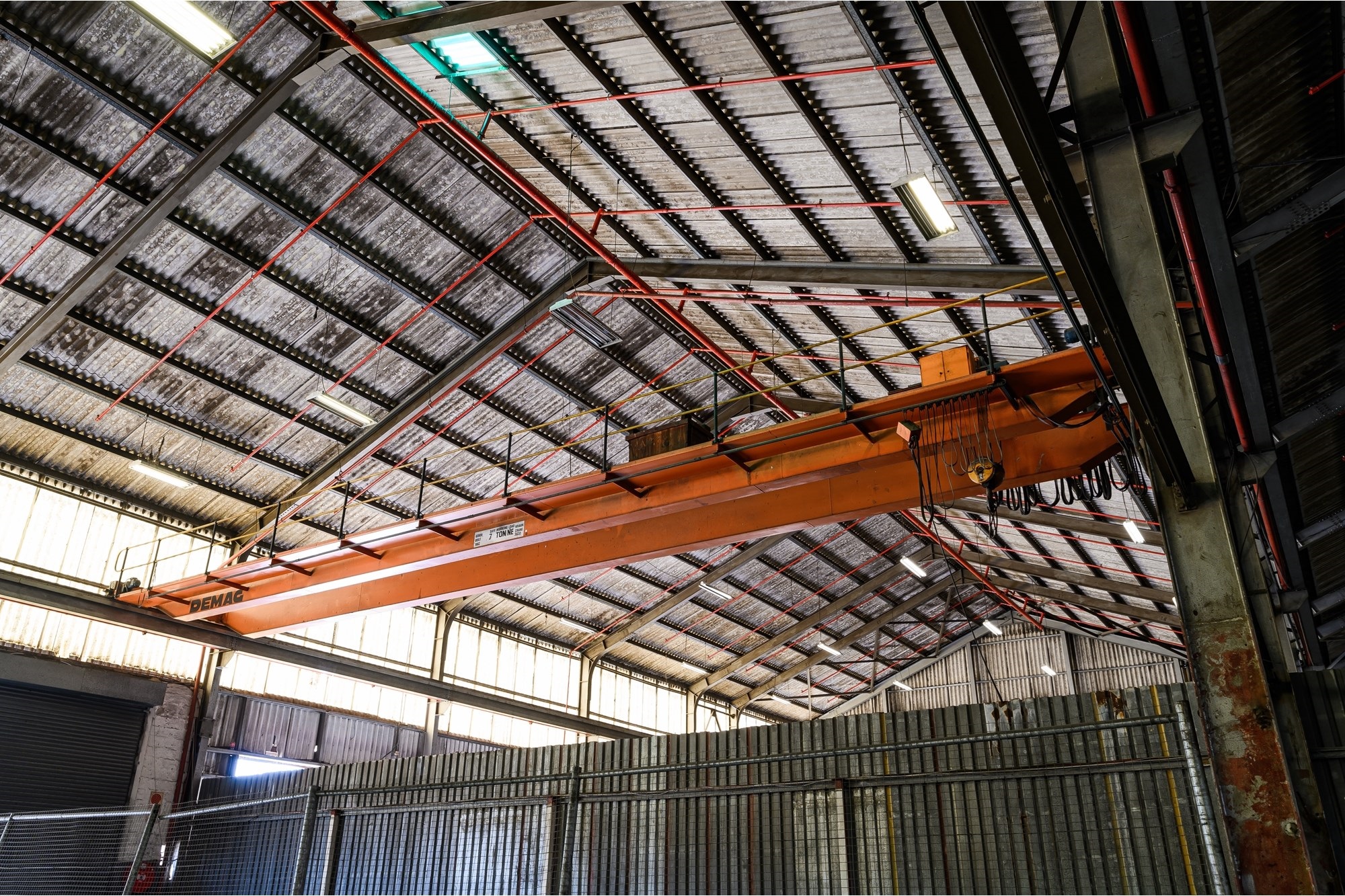 Multiple overhead cranes (7-ton and 10-ton capacity)spanning20 meters, ideal for fabrication, assembly, and containerised logistics.
