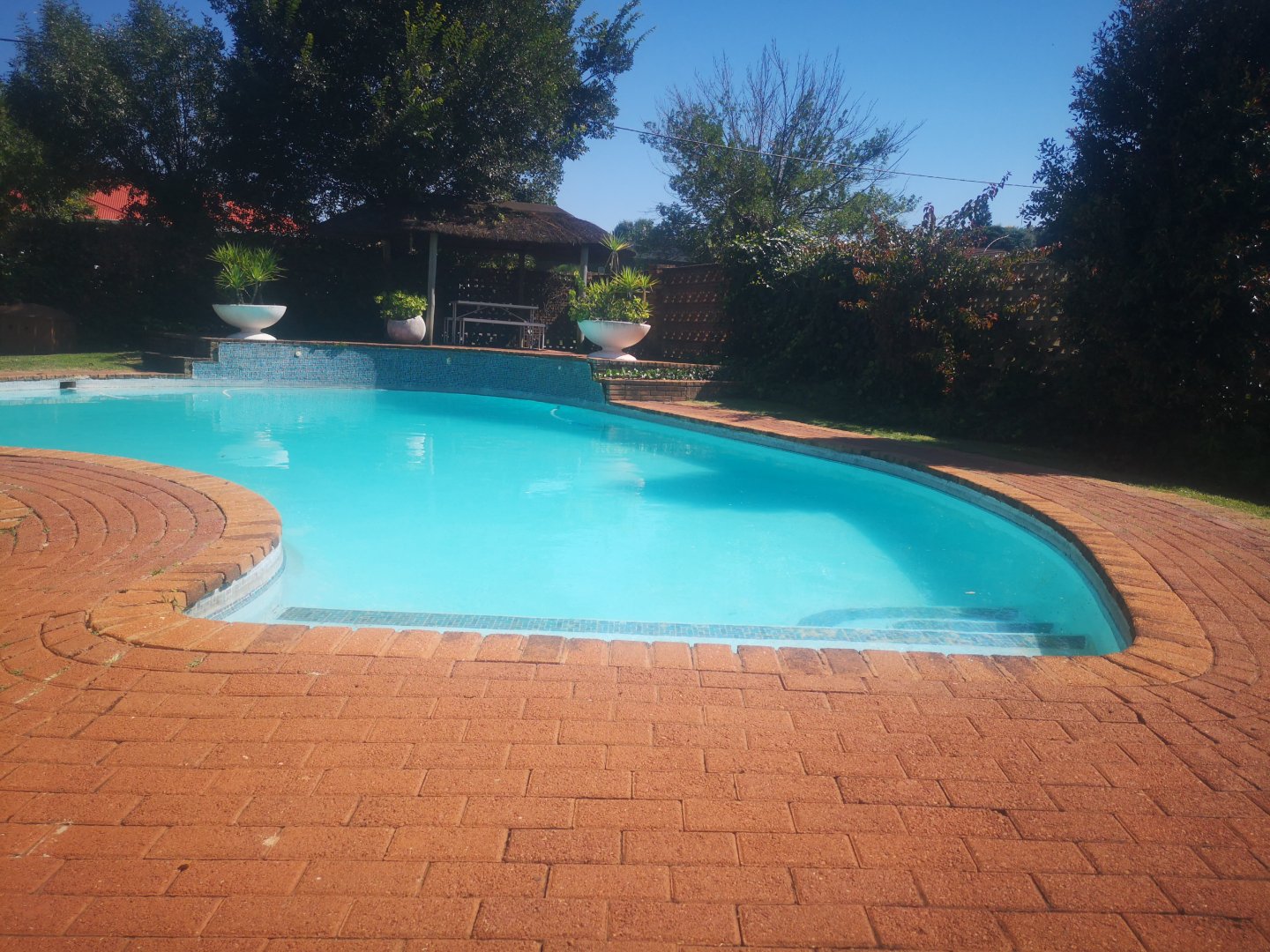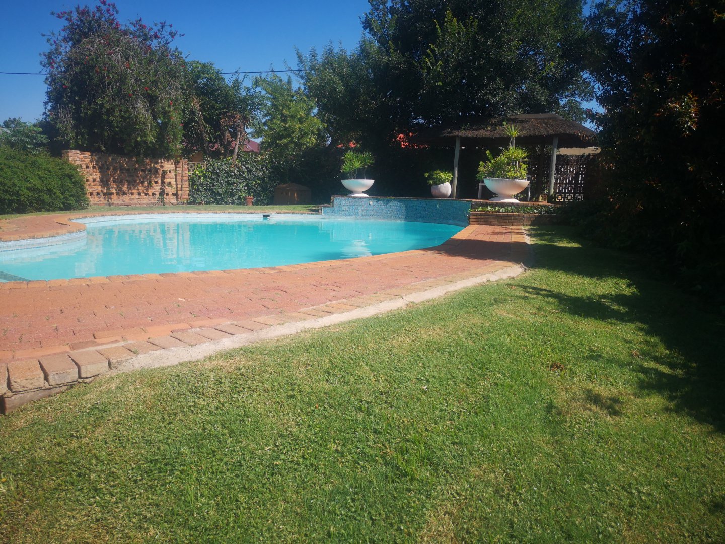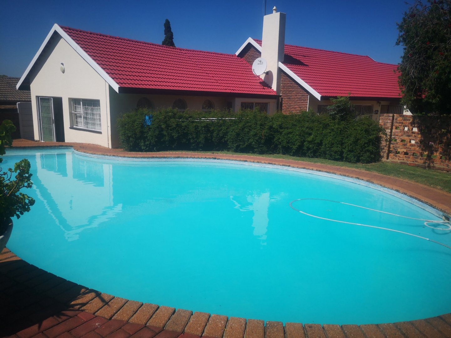 Located in Marlands Germiston on a massive stand of 1021sq.m, it boasts of 3 large bedrooms, 2 bathrooms (mes), 1 lounge, Large family entertainment room, a rustic cottage style kitchen with built in cabinets and breakfast nook, 3 carports, additional parking spaces, a sparkling pool, thatched lapa, burglar bars and a staff room. To view call me.