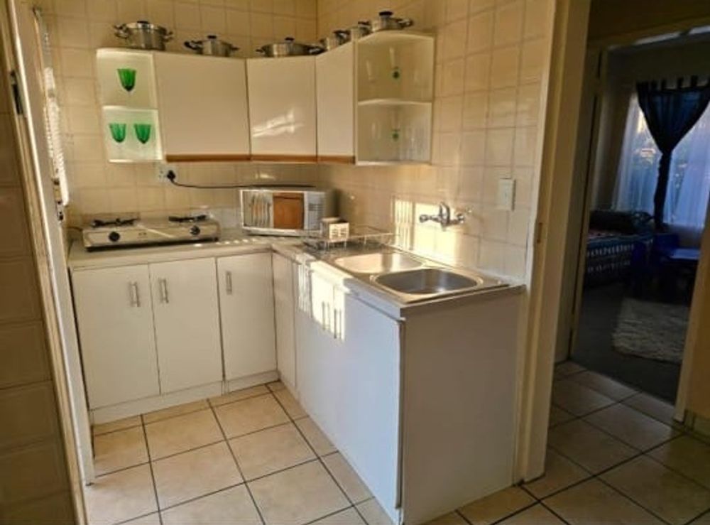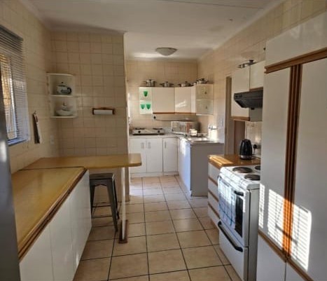 Well-appointed kitchen with built-in cupboards, breakfast nook, double basin, extractor fan, and electric stove to prepare your family meals Tiled floors and fitted blinds complete this neat, functional space. Open-plan dining room — tiled and ready for family meals and gatherings.