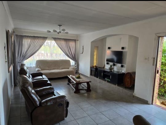 TV lounge with tiled flooring and curtain rails — perfect for relaxing evenings at home.