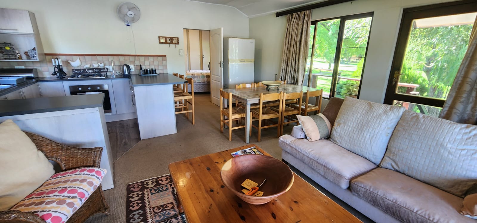 - *Cottage Features:* 2 Bedrooms, a lounge, a kitchen, and two lovely patio areas where you can sip your morning coffee while soaking in the countryside views.