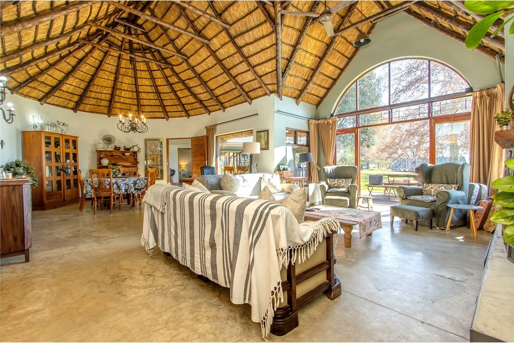 This property is designed with accessibility in mind, featuring wheelchair-friendly access throughout. Enjoy the benefits of modern living with 24-hour access, an alarm system, and Wi-Fi connectivity. Designed for pet lovers, this guest house is pet-friendly, making it the perfect investment for those seeking a serene lifestyle by the river. Experience the beauty of open-plan living with sliding doors that seamlessly connect indoor and outdoor spaces, enhanced by tiled floors and charming wood windows set beneath a thatch roof.