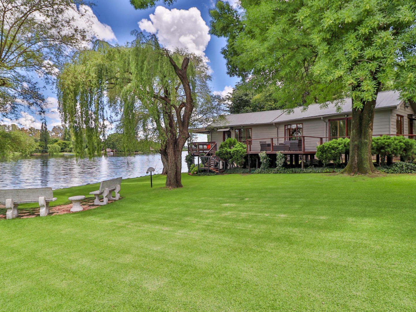 The property with the river view as the main attraction is by the Vaal River and with kilometers of good clean boatable water. It comprises of buildings, which include the main, three-bedroom ensuite bathroom house, Guest cottage with 2 bedrooms with En suite bathrooms, a two-bedroom cottage on the bank of the river, garaging for at least 10 cars, workrooms, stables for six horses, paddocks, dressage arena, established greenhouse and vegetable garden, 3 staff cottages, fenced off duck ponds. All in a luscious, manicured and established garden.