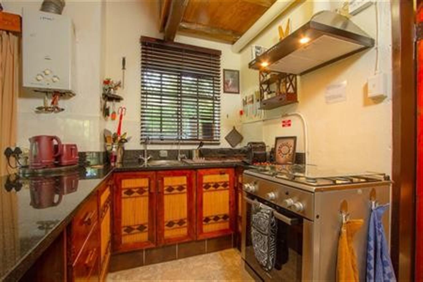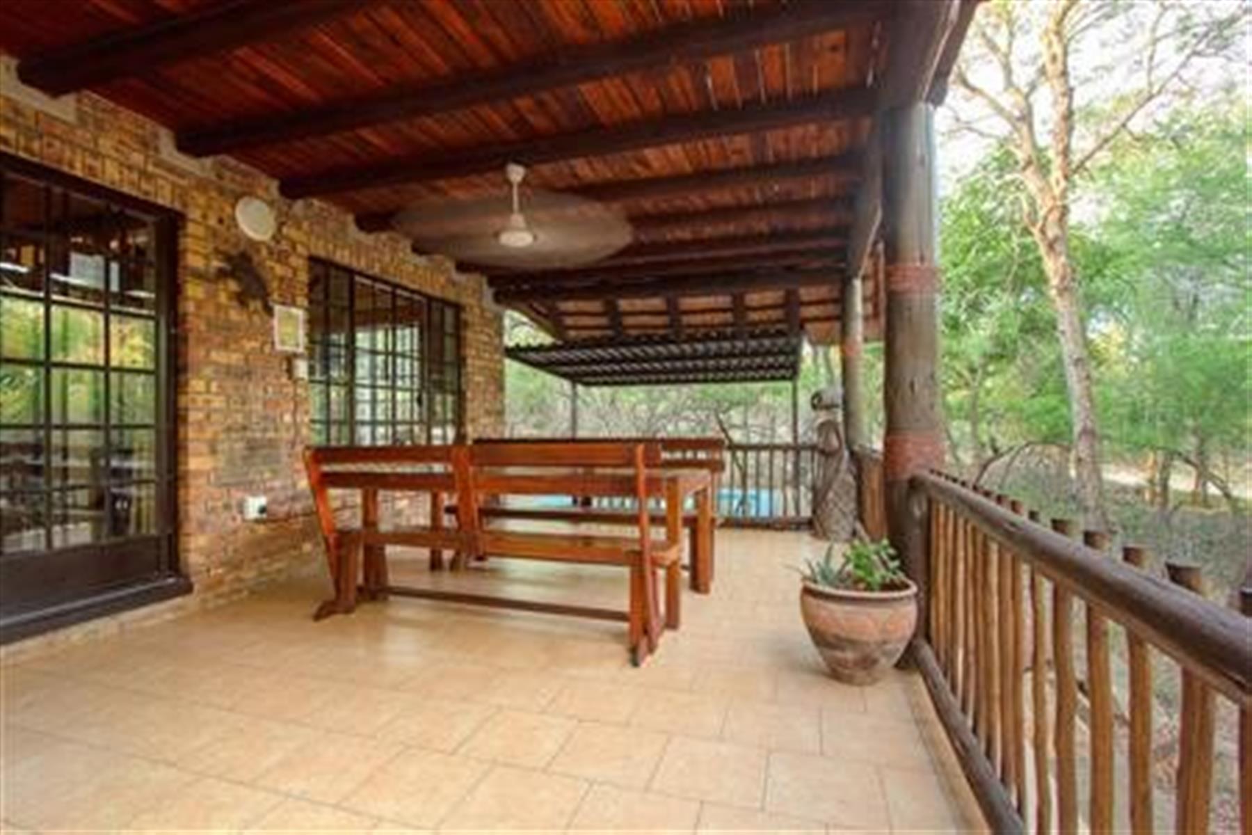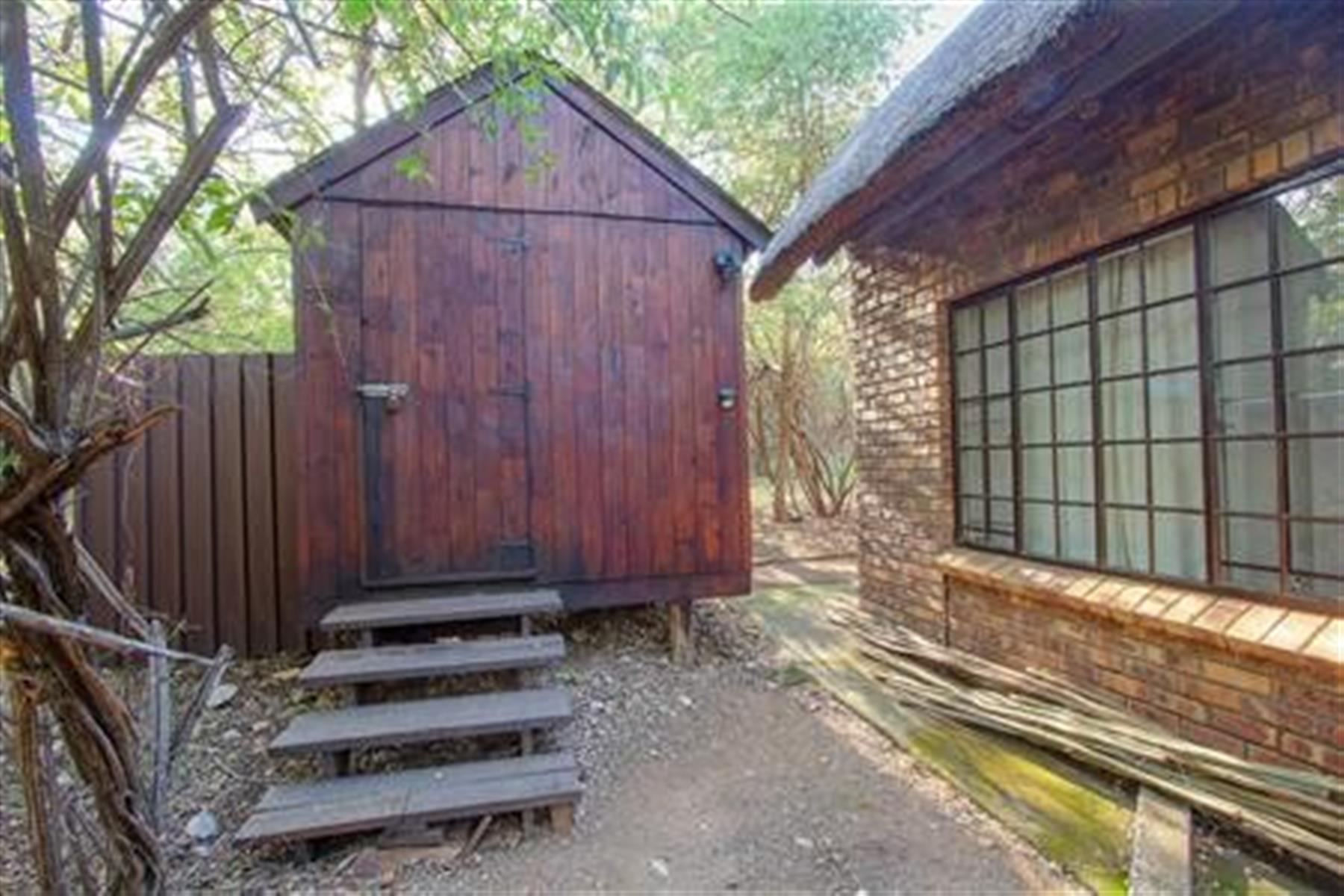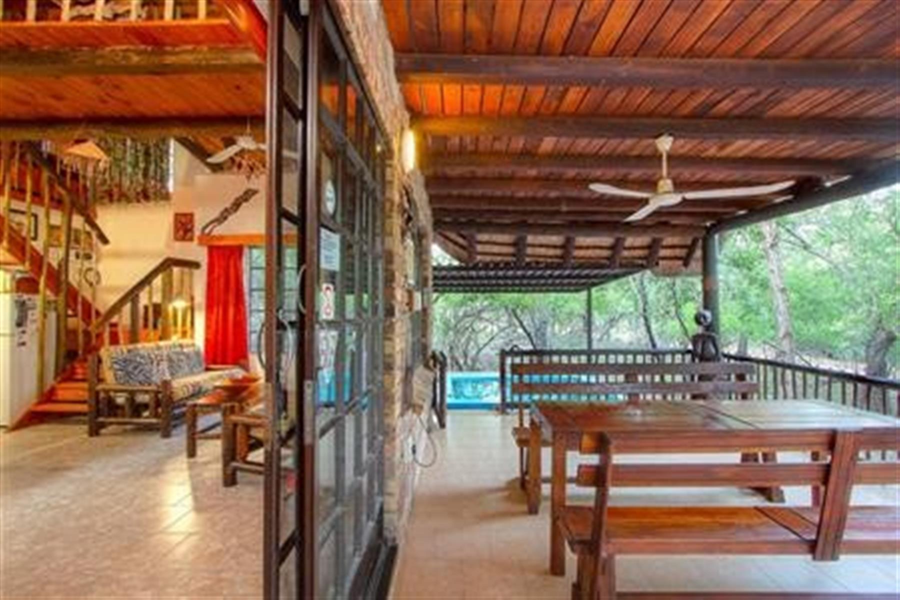 The home is detached and furnished in a classic, rustic style, featuring a traditional thatched roof ,that blends beautifully into the bush surroundings.