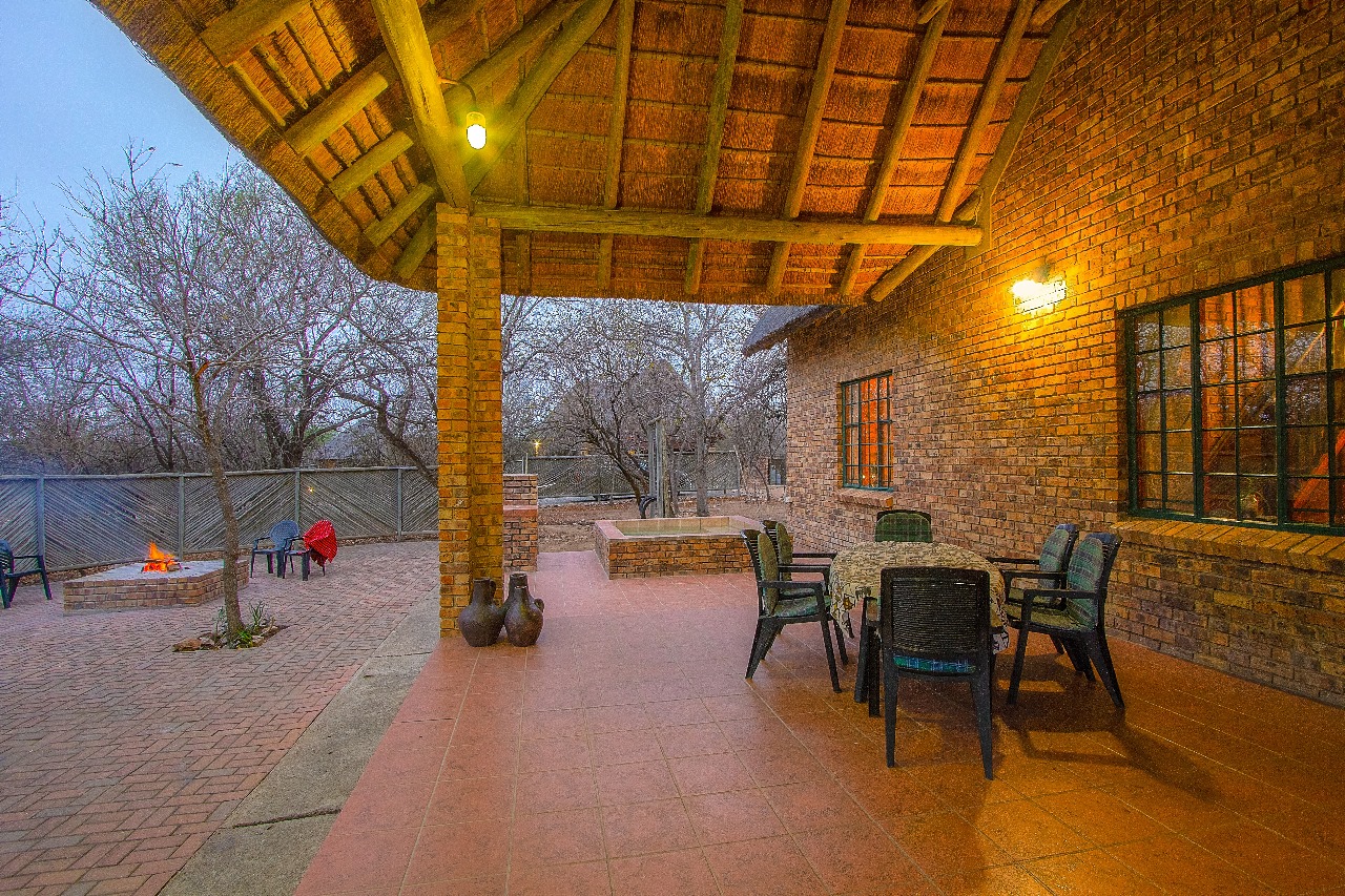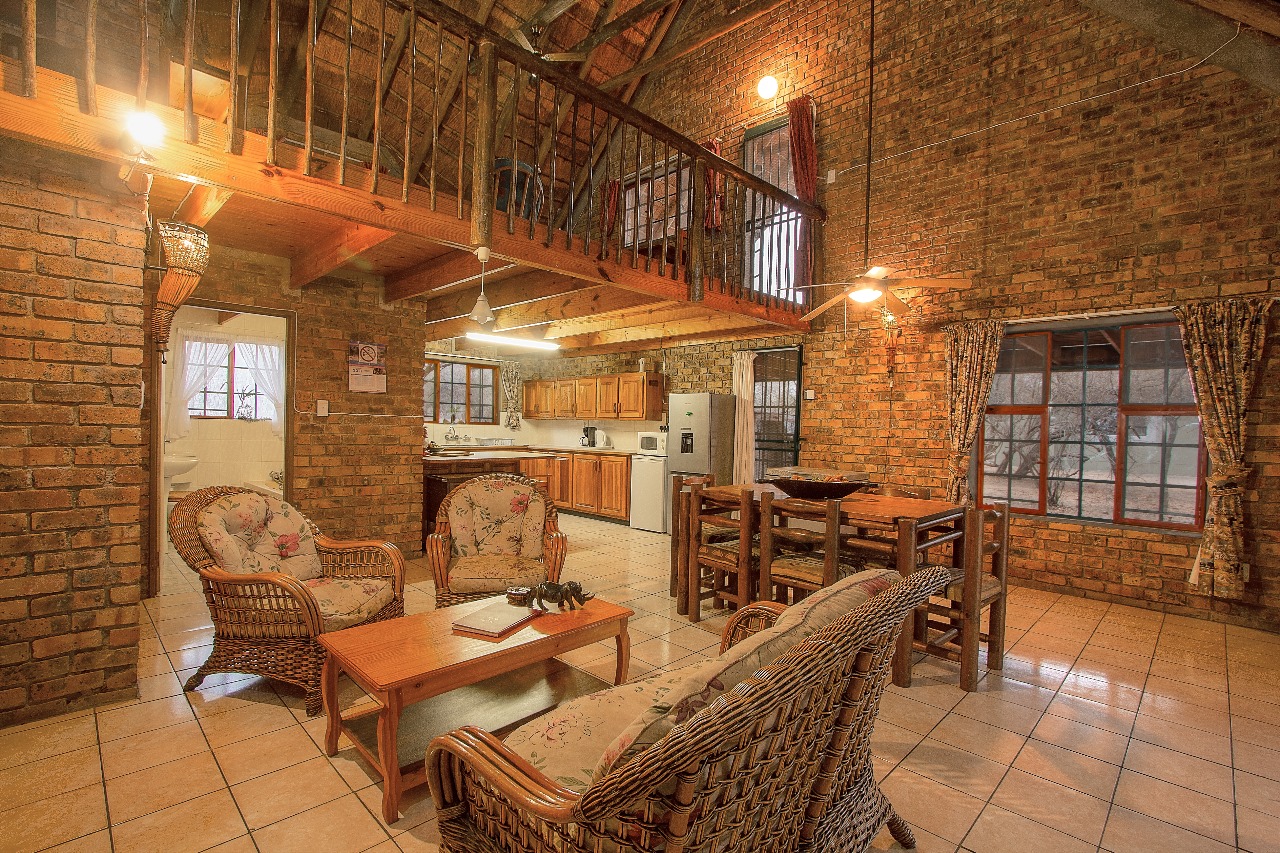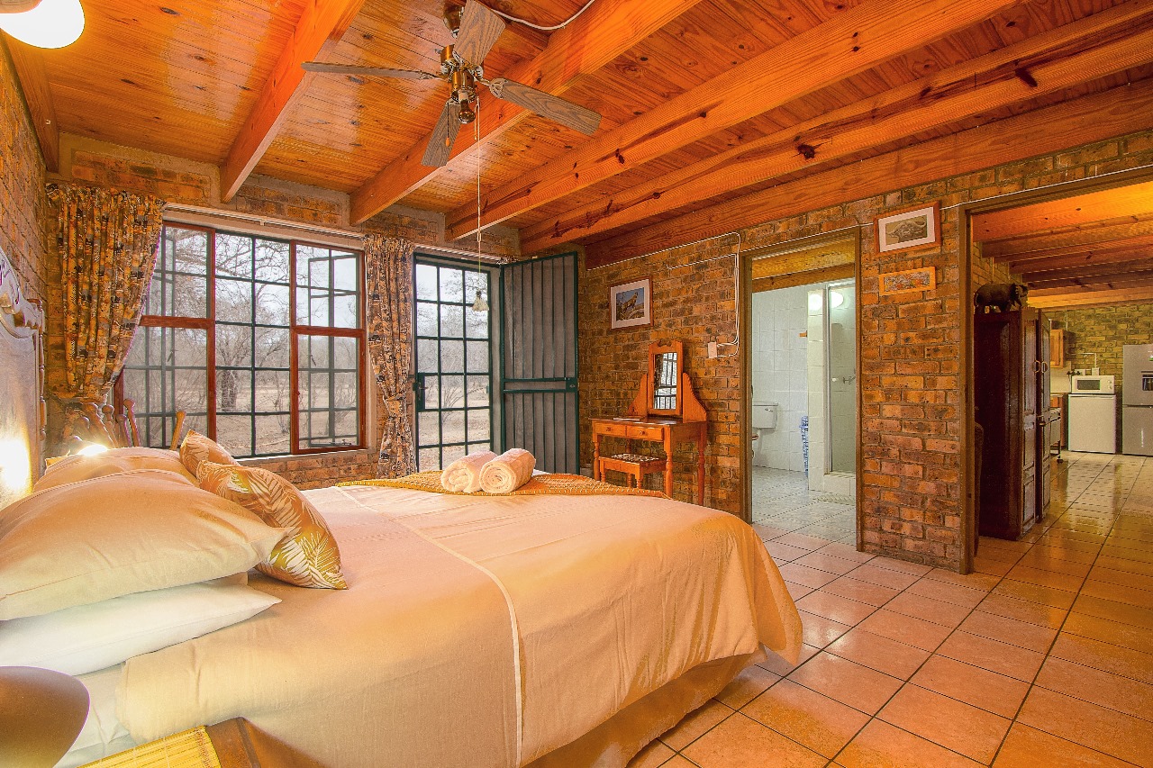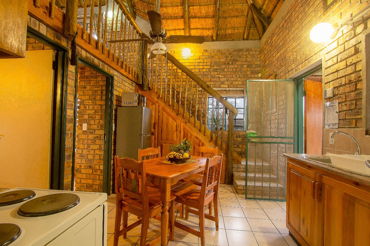 Rare find not to be missed. Suited for a big family or over seas investors. You will be delighted in the animal night sounds. Prime location near the river and wild life. House and a separate cottage, both thatch roofed. In the majestic double story main house you will find 4 bedrooms and 3 bathrooms. The main bedroom (on suite) has doors leading outside onto the veranda. Open plan double volume living areas. Spacious kitchen. Up stairs you will find another living area. Two of the four bedrooms are upstairs. the house is fitted with aircons.