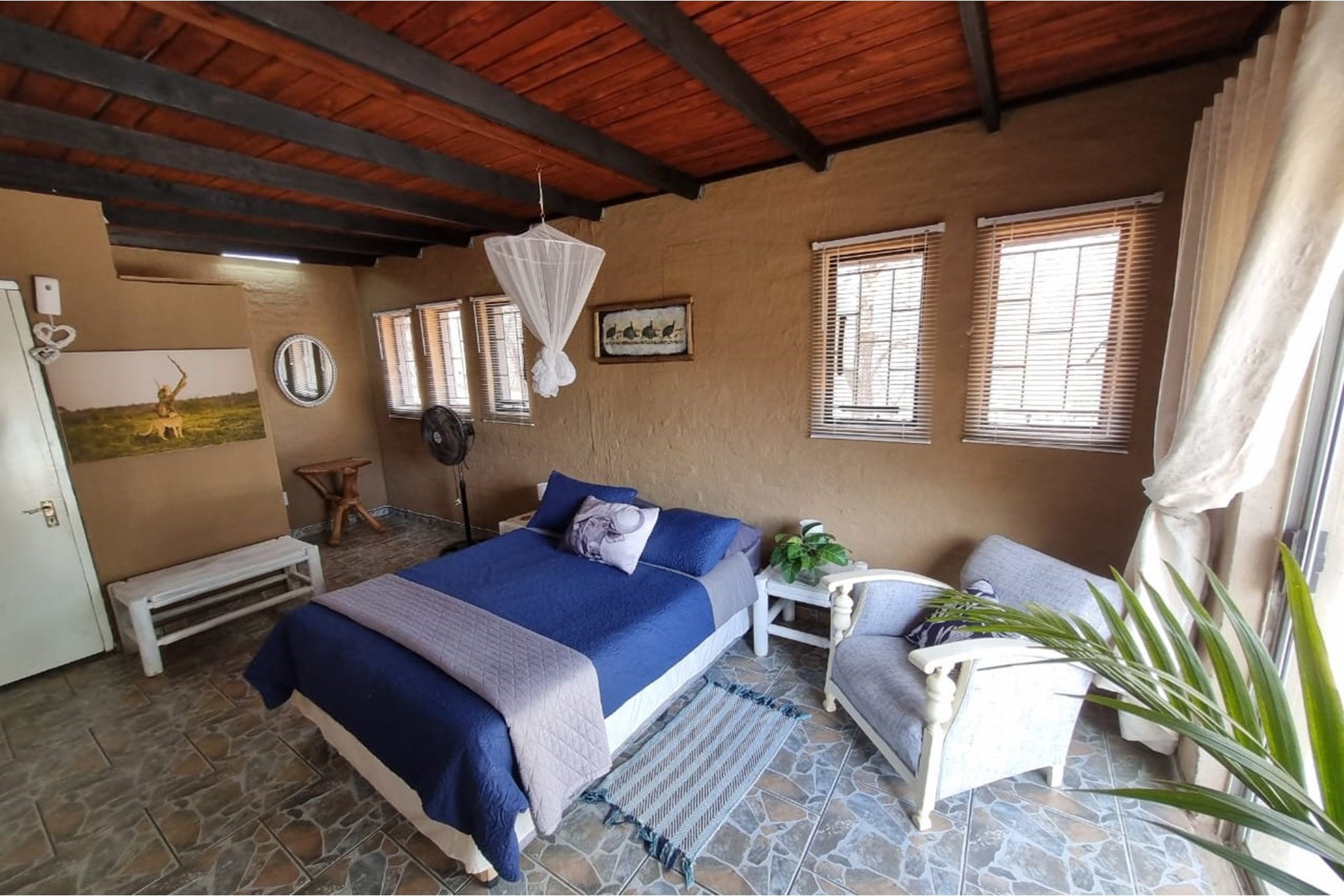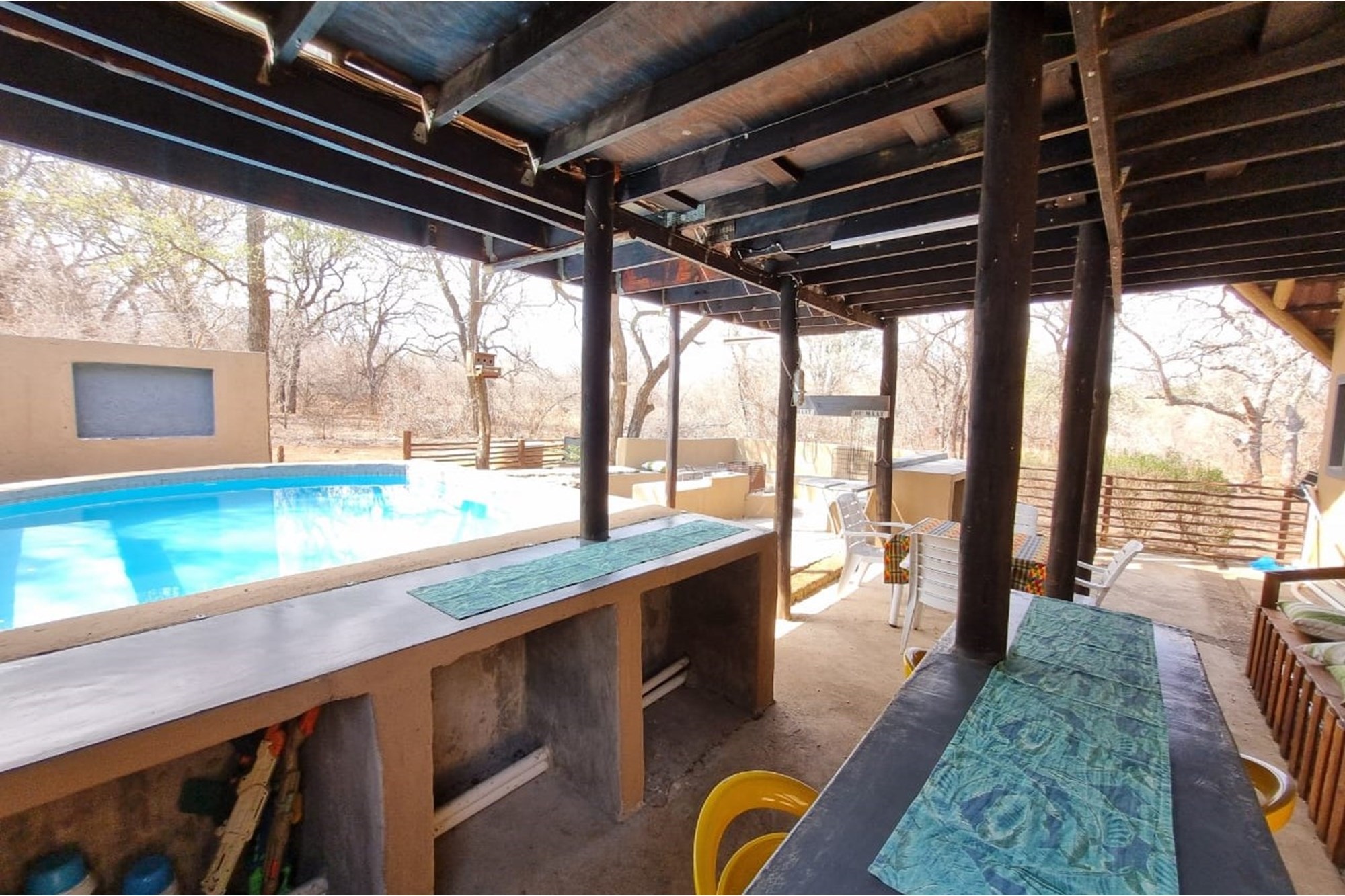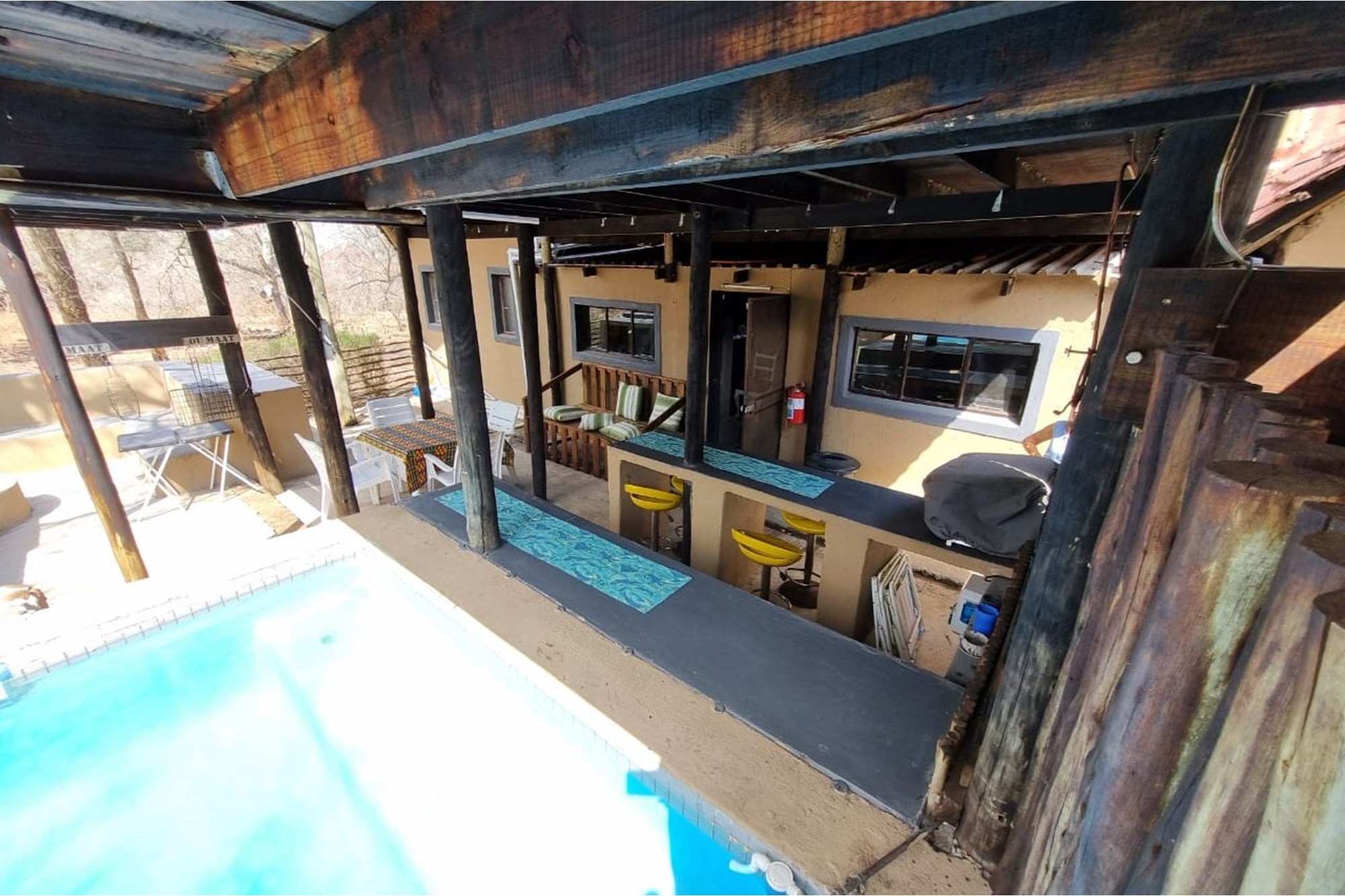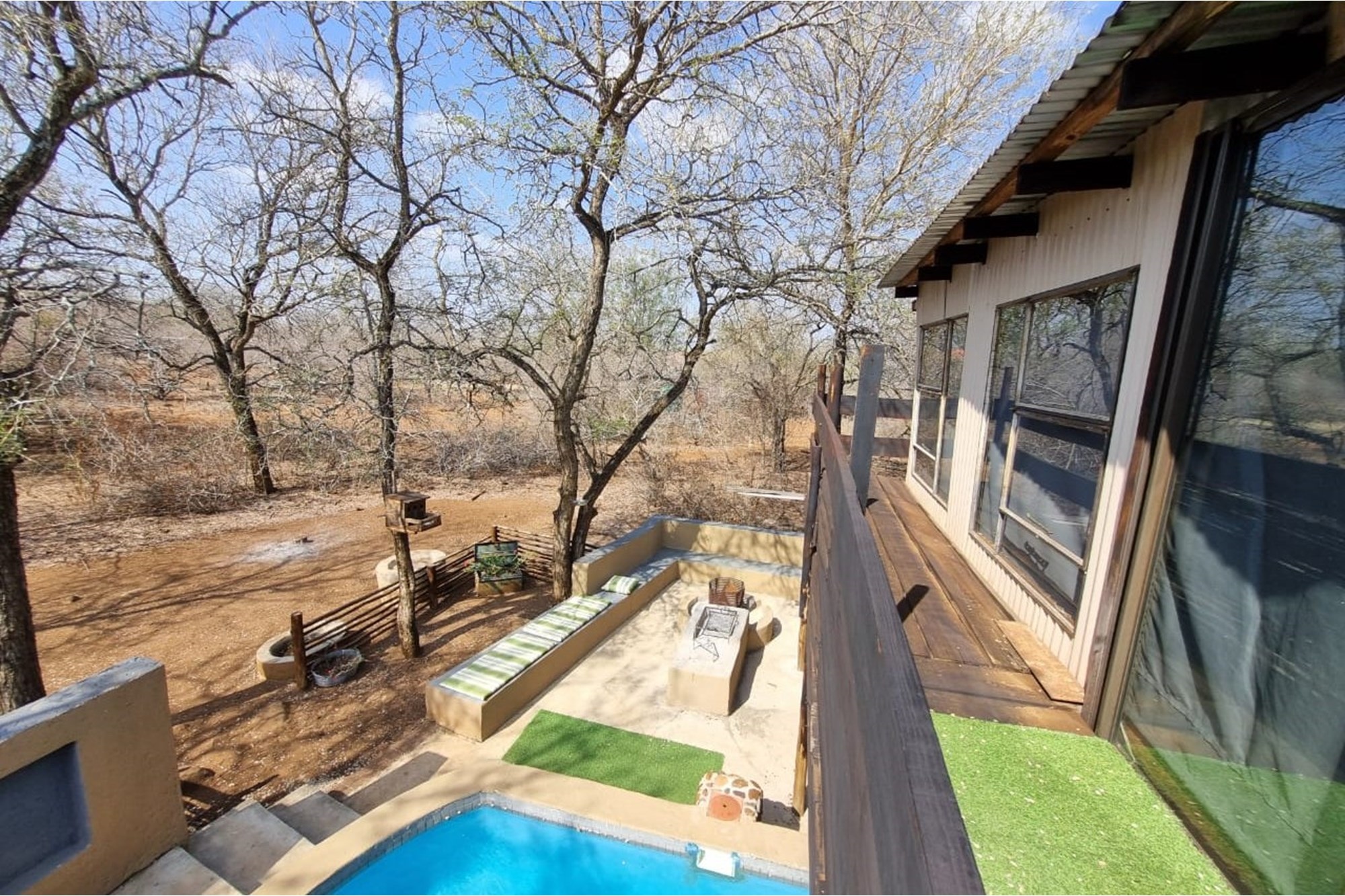 Sleeps up to 7 people comfortably with2 spacious bedrooms, 2 bathrooms, a separate toilet, plus an open area for additional beds.A modern open-plan kitchen with built-in cupboards, double sink and tiled flooring ensures effortless living. Stay connected and comfortable withair-conditioning and back-up power, keeping your WiFi and lights on even during outages. Step outside to the ultimate entertainment area — complete with a sparkling pool, braai facilities, built-in bar seating, dining space, and a shaded wooden deck where unforgettable memories are made, all set against the backdrop of breathtaking game views.