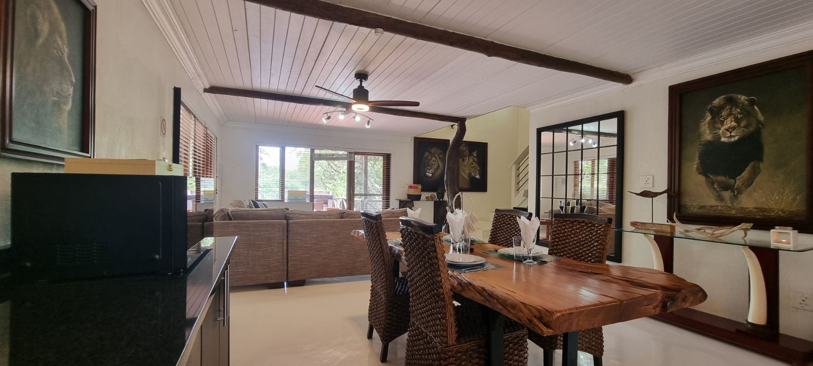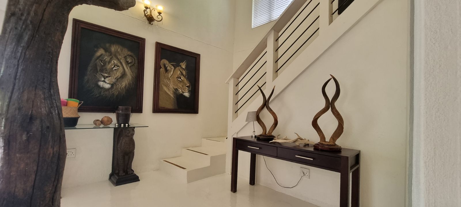 The ground floor and upper floor verandas are wrapped around the whole house, where you can take in the uninterrupted bushveld views. The outdoor entertainment spaces are designed for relaxation and luxury, with a sparkling private pool and braai area. Whether entertaining guests or seeking a tranquil retreat, this home is an oasis of comfort and style.