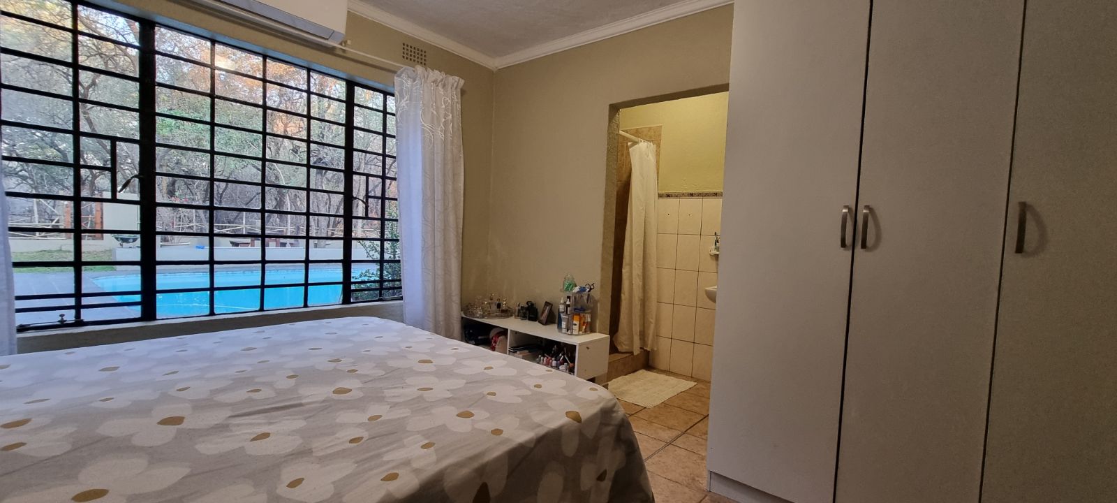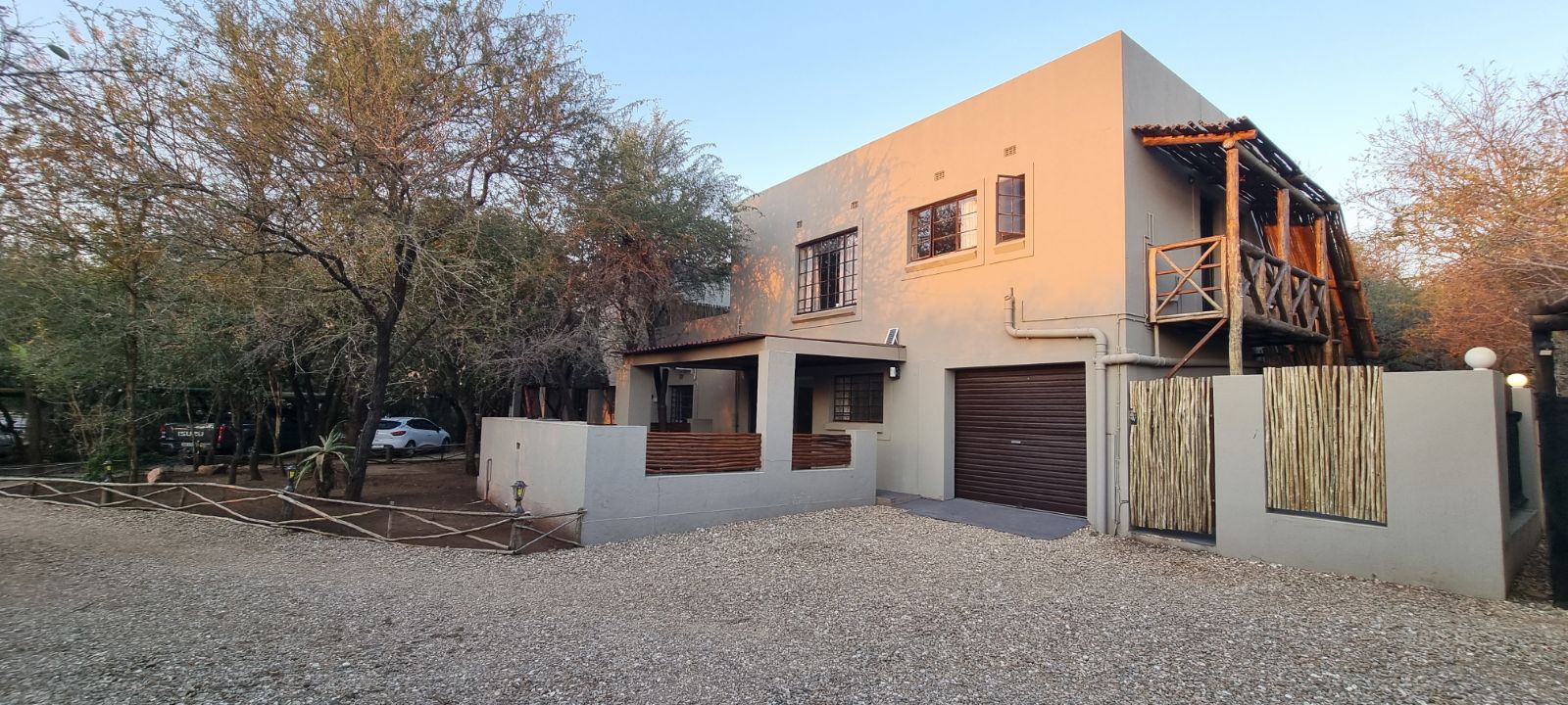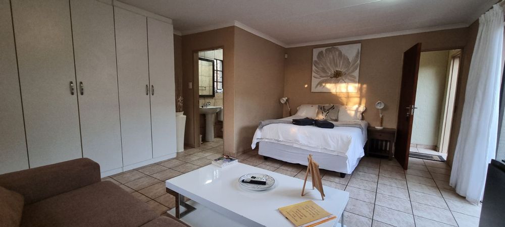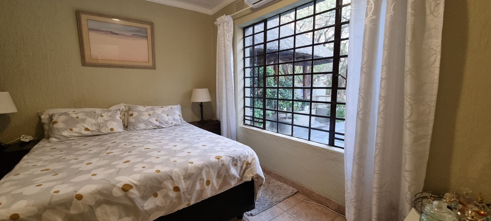 The grounds are inviting, with a sparkling pool and raised viewing deck that overlooks natural parkland where wildlife roams freely. Communal gardens and well-placed braai areas create welcoming social spaces for guests. Practical features such as undercover parking, two 4000-liter water tanks and strong security measures add further value and peace of mind.