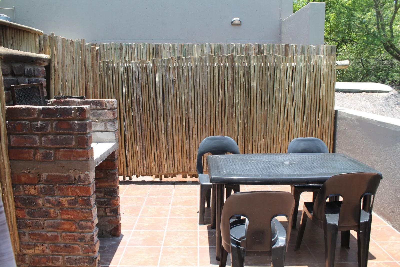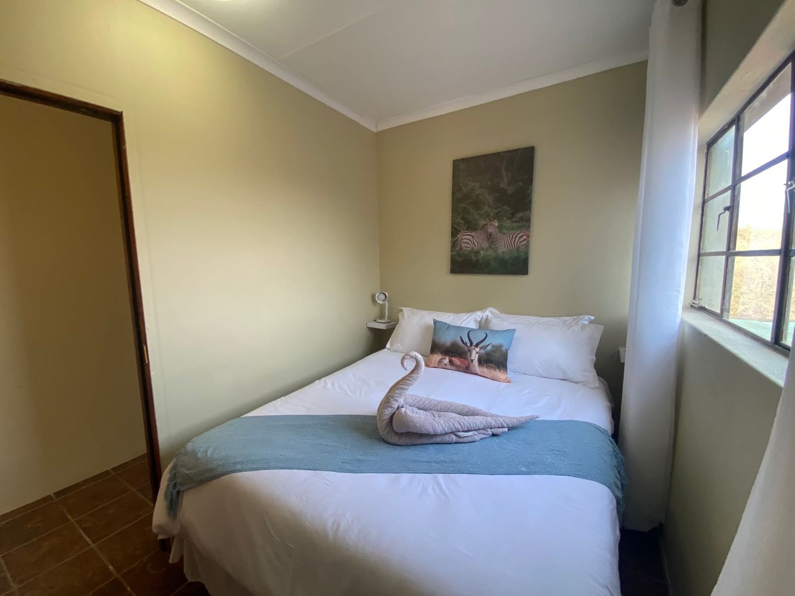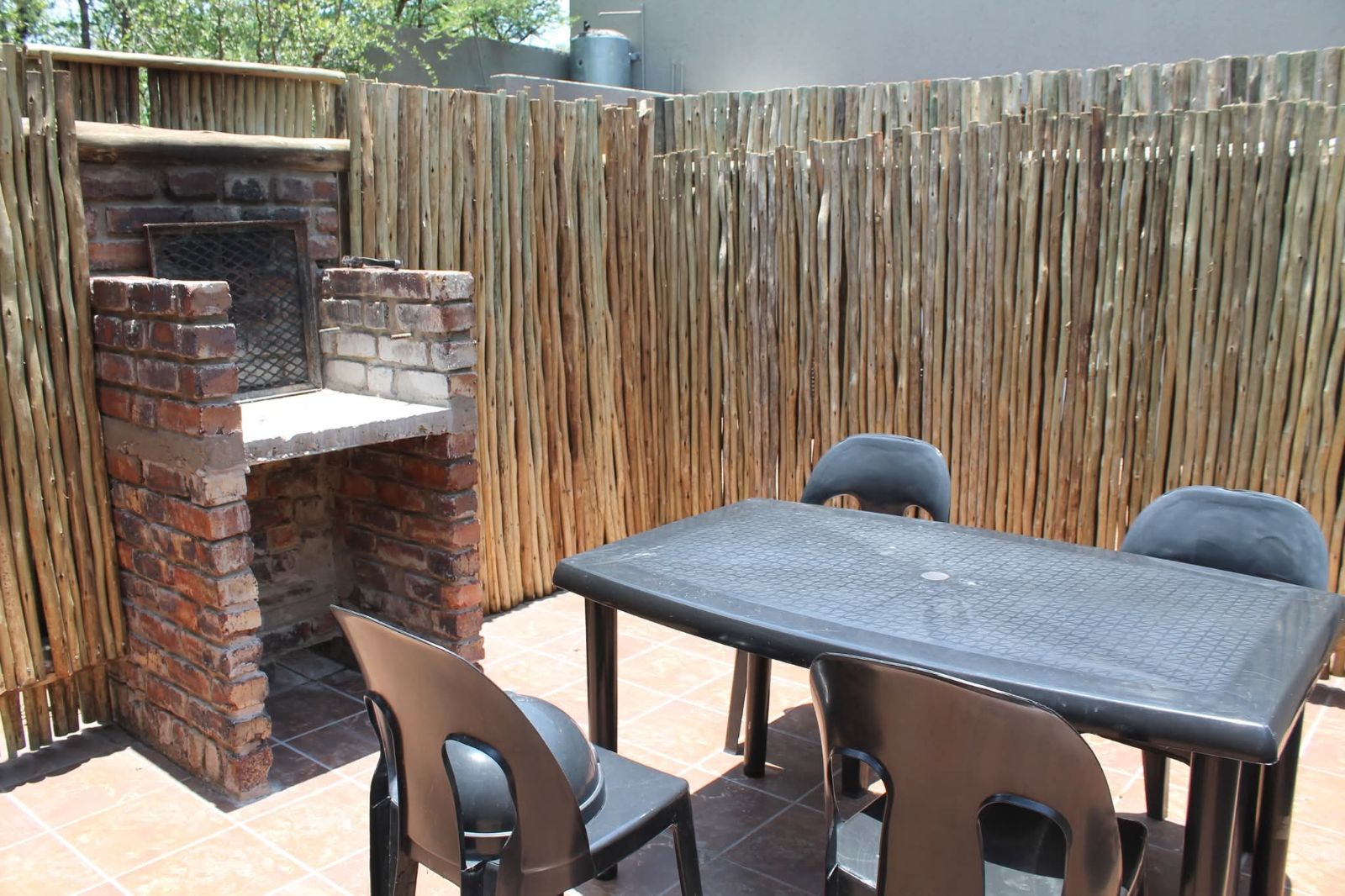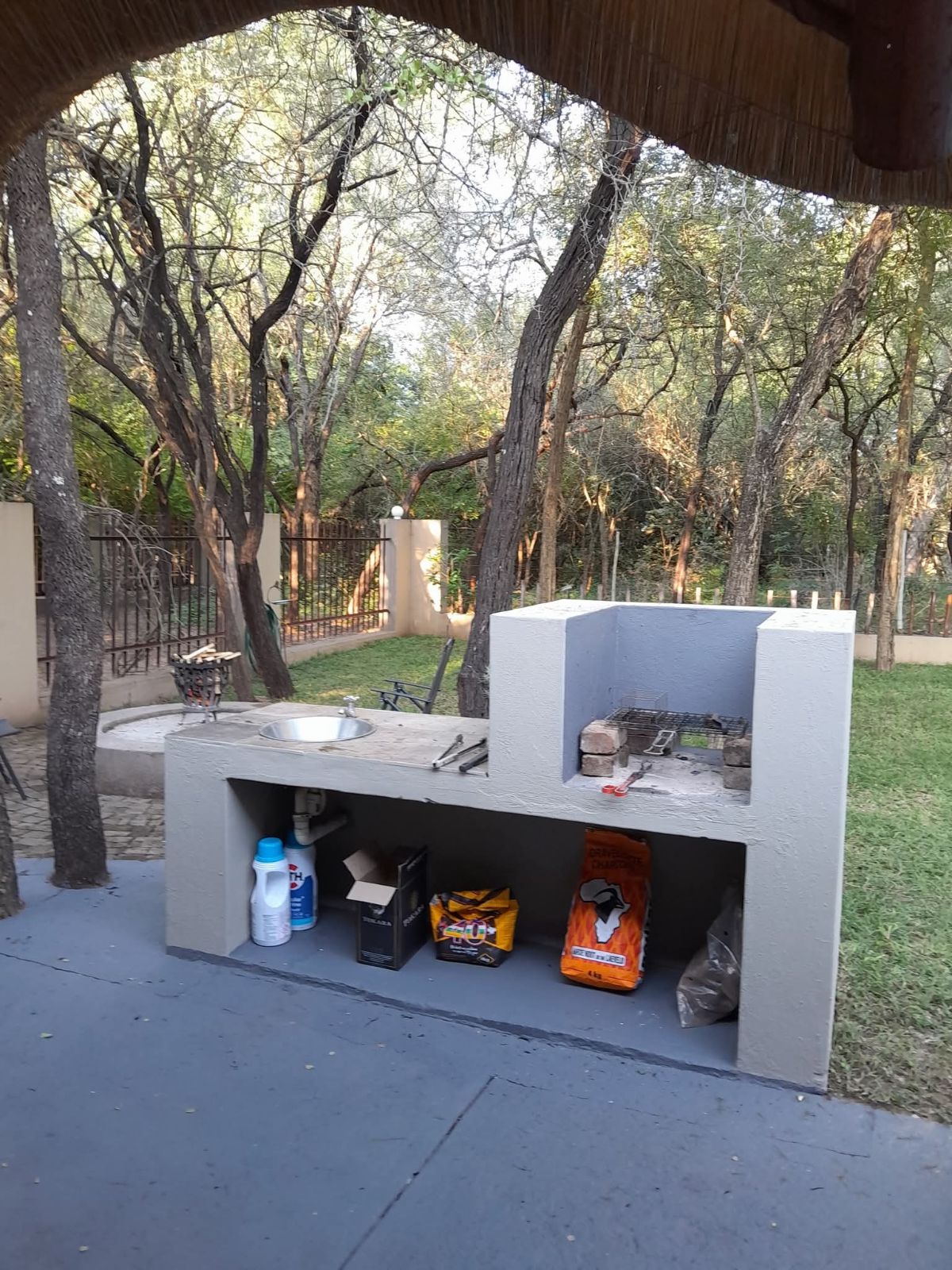 The grounds are inviting, with a sparkling pool and raised viewing deck that overlooks natural parkland where wildlife roams freely. Communal gardens and well-placed braai areas create welcoming social spaces for guests. Practical features such as undercover parking, two 4000-liter water tanks and strong security measures add further value and peace of mind.