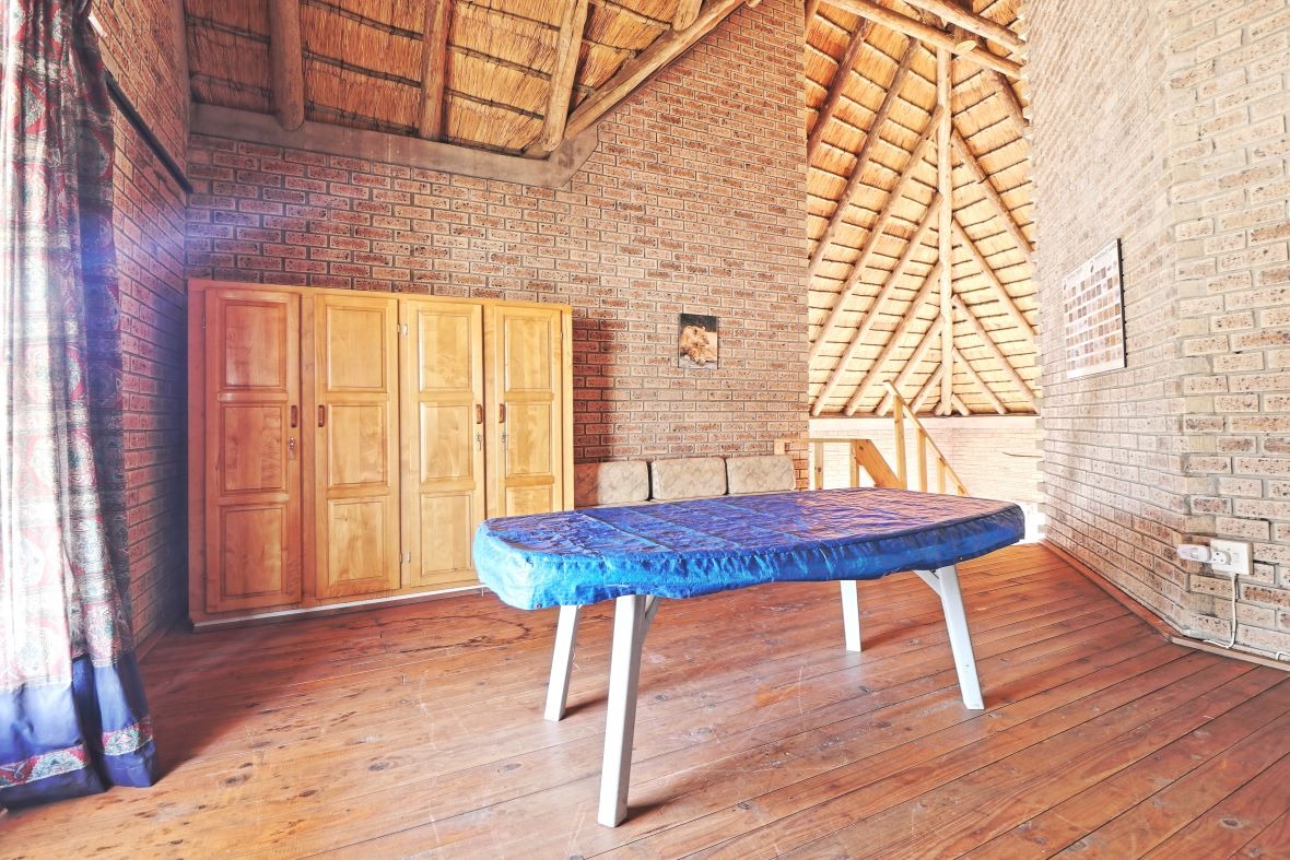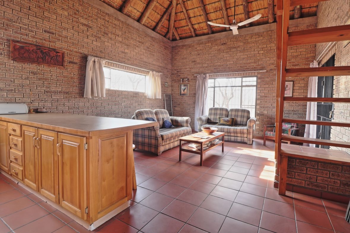 One standout feature of this house is its high thatched roof, adding character and warmth to the living space. Upstairs, there's a spacious loft that can comfortably accommodate three beds. Additionally, it comes with its own balcony that provides picturesque views of the adjacent parkland and roaming animals.
