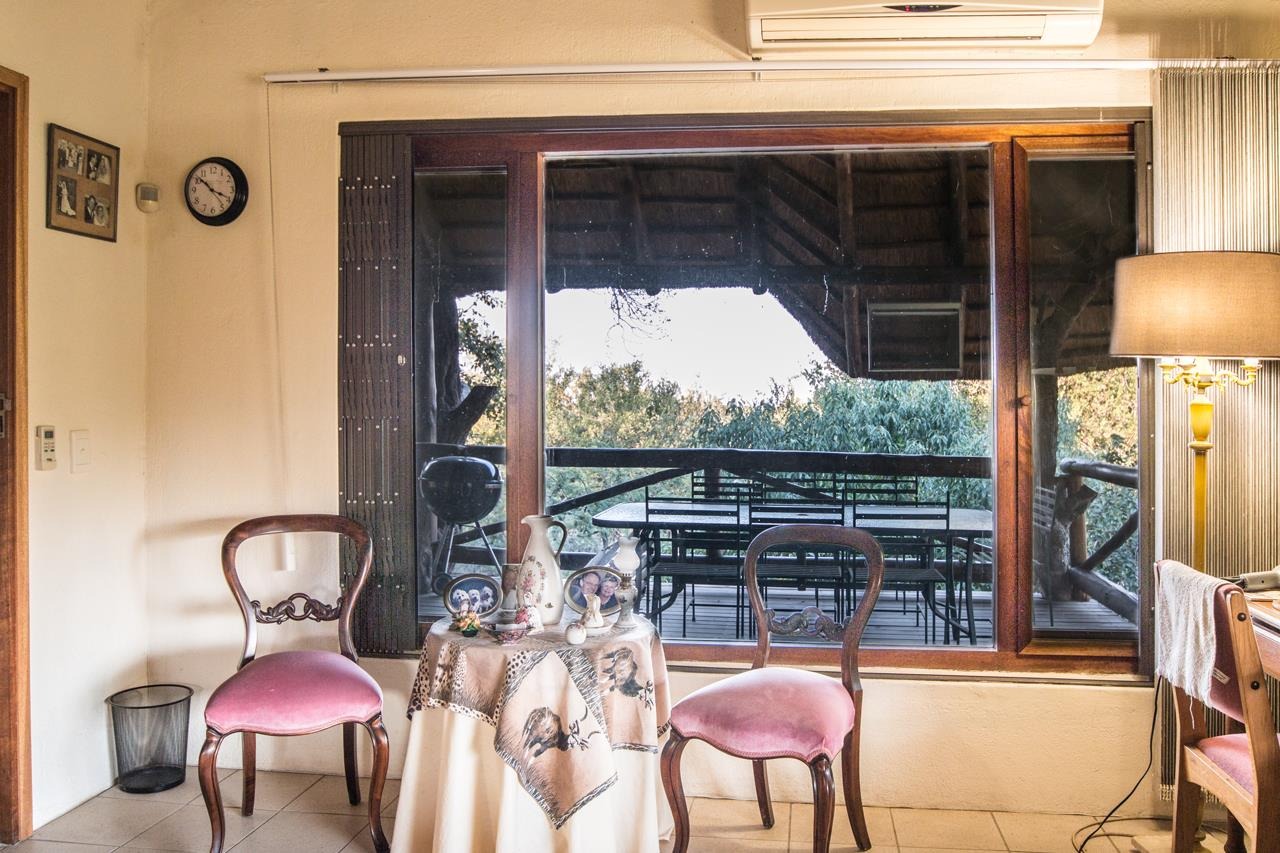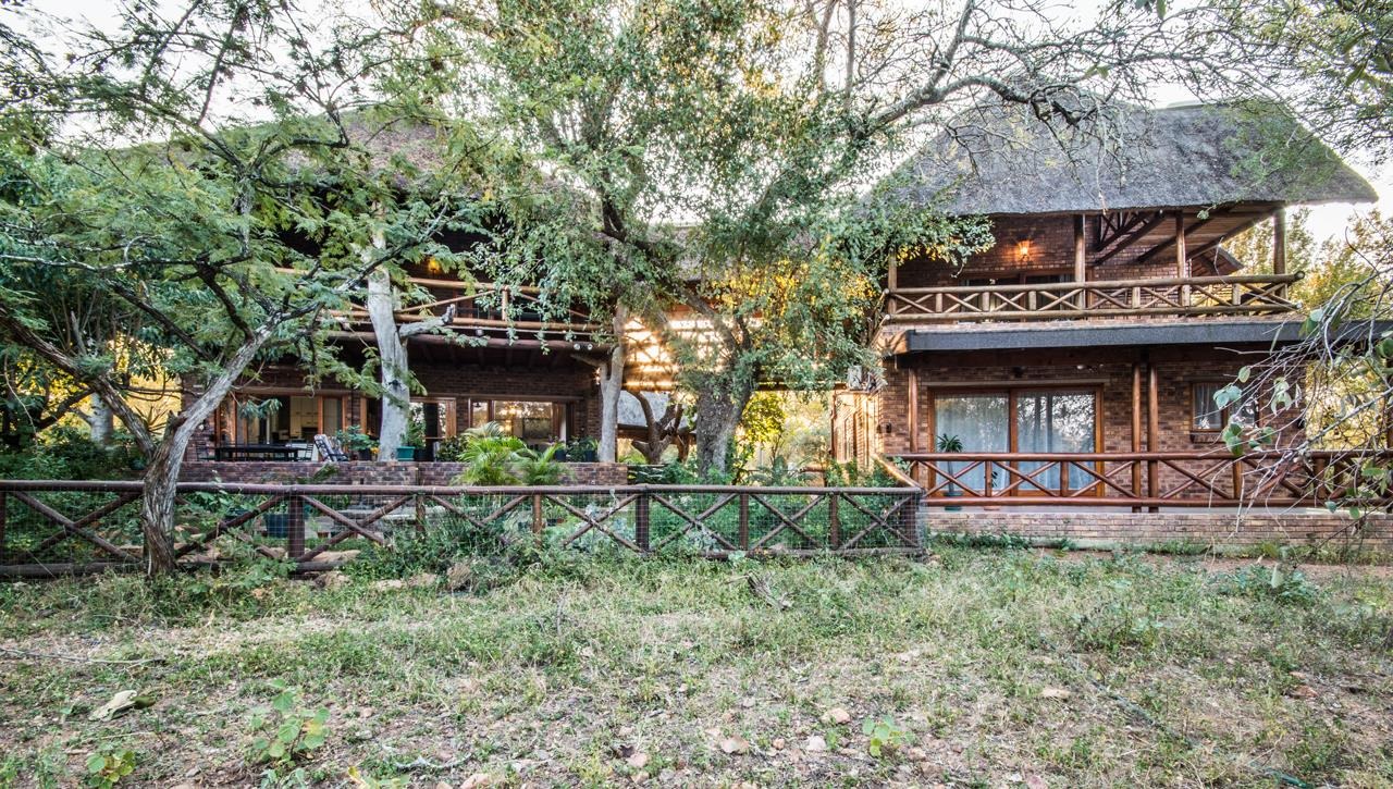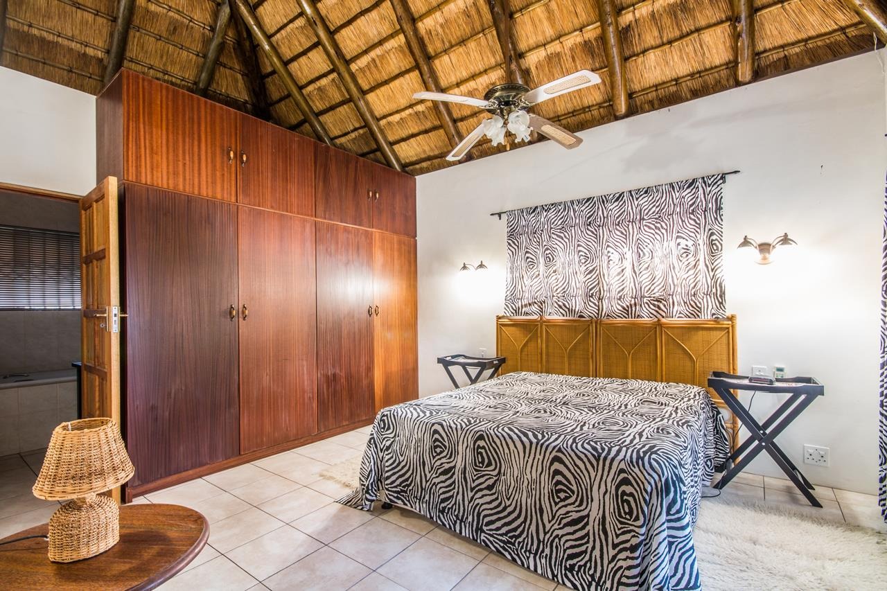 Experience the ultimate in comfort and style with this impressive 5-bedroom thatch-roof property, with the option to include furnishings in the sale available in the heart of Marloth Park. Situated on a peaceful road, this home offers a serene lifestyle surrounded by abundant wildlife. For added peace of mind, Trellis security barriers are installed on all windows and doors.